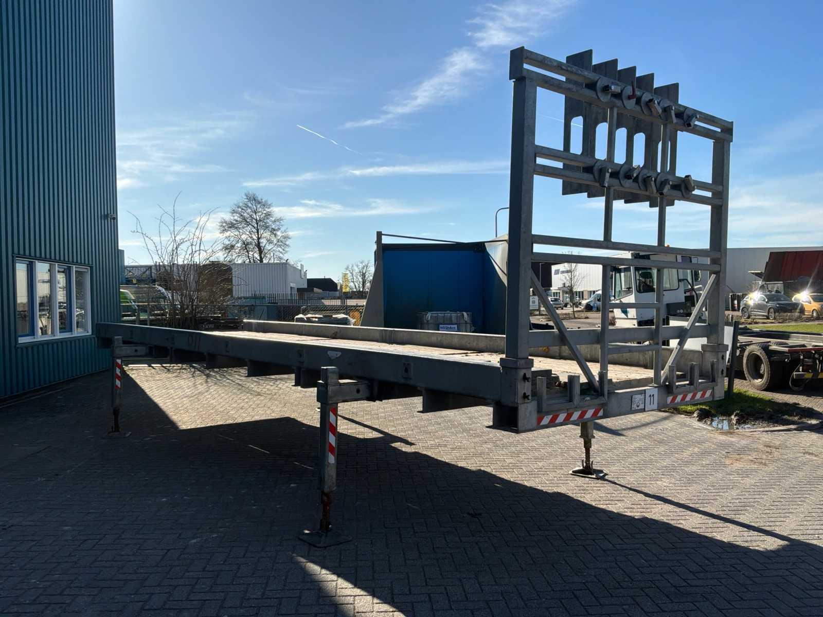 | Beschreibung | Maximales zulässiges Gewicht 26.000 kg * mit gültiger Prüfbescheinigung * mit verstellbaren Stützen * mit Hebeösen * geeignet für Tieflader * Stirnwand abnehmbar |