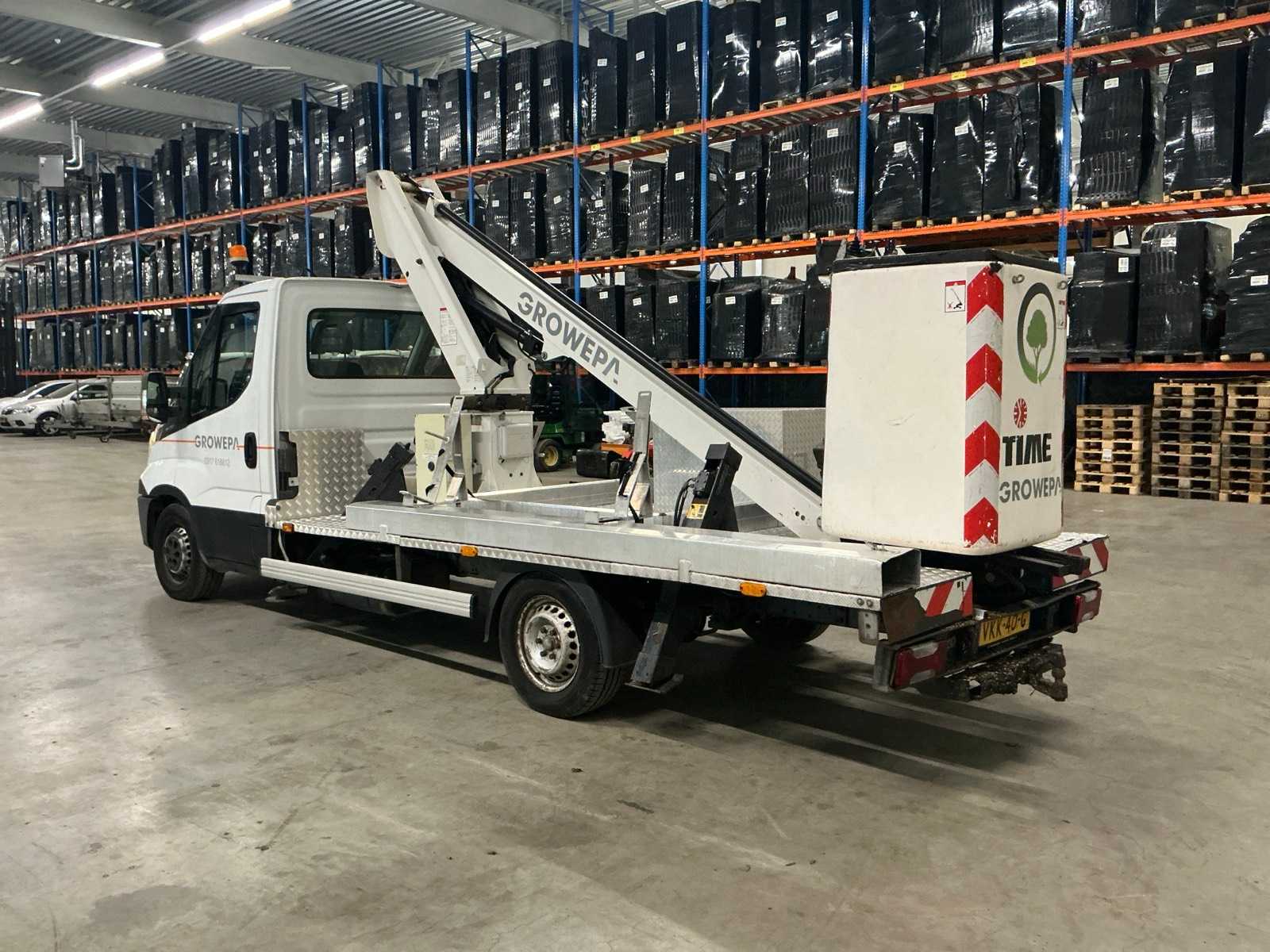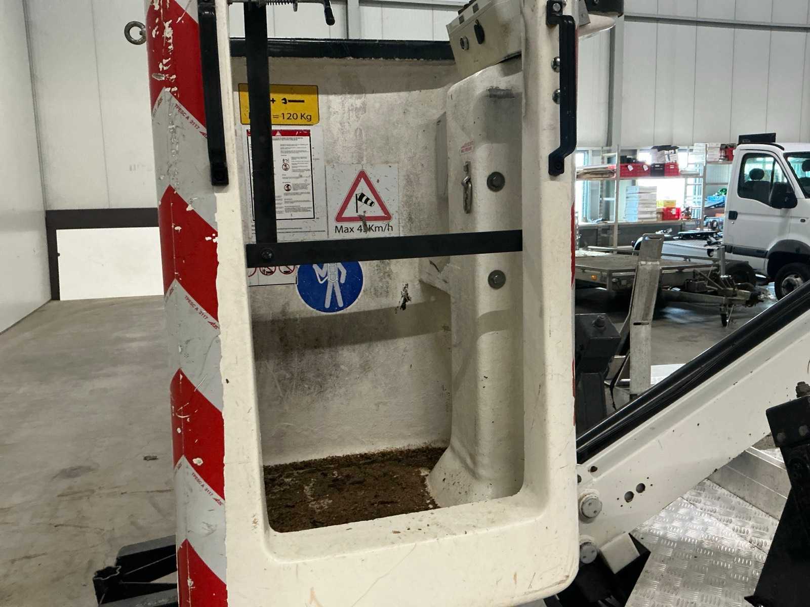 Equipped with, TIME aerial platform, height 13 meters, man box, 4 support legs, air conditioning, cruise control, Bluetooth radio, beacons and tow bar