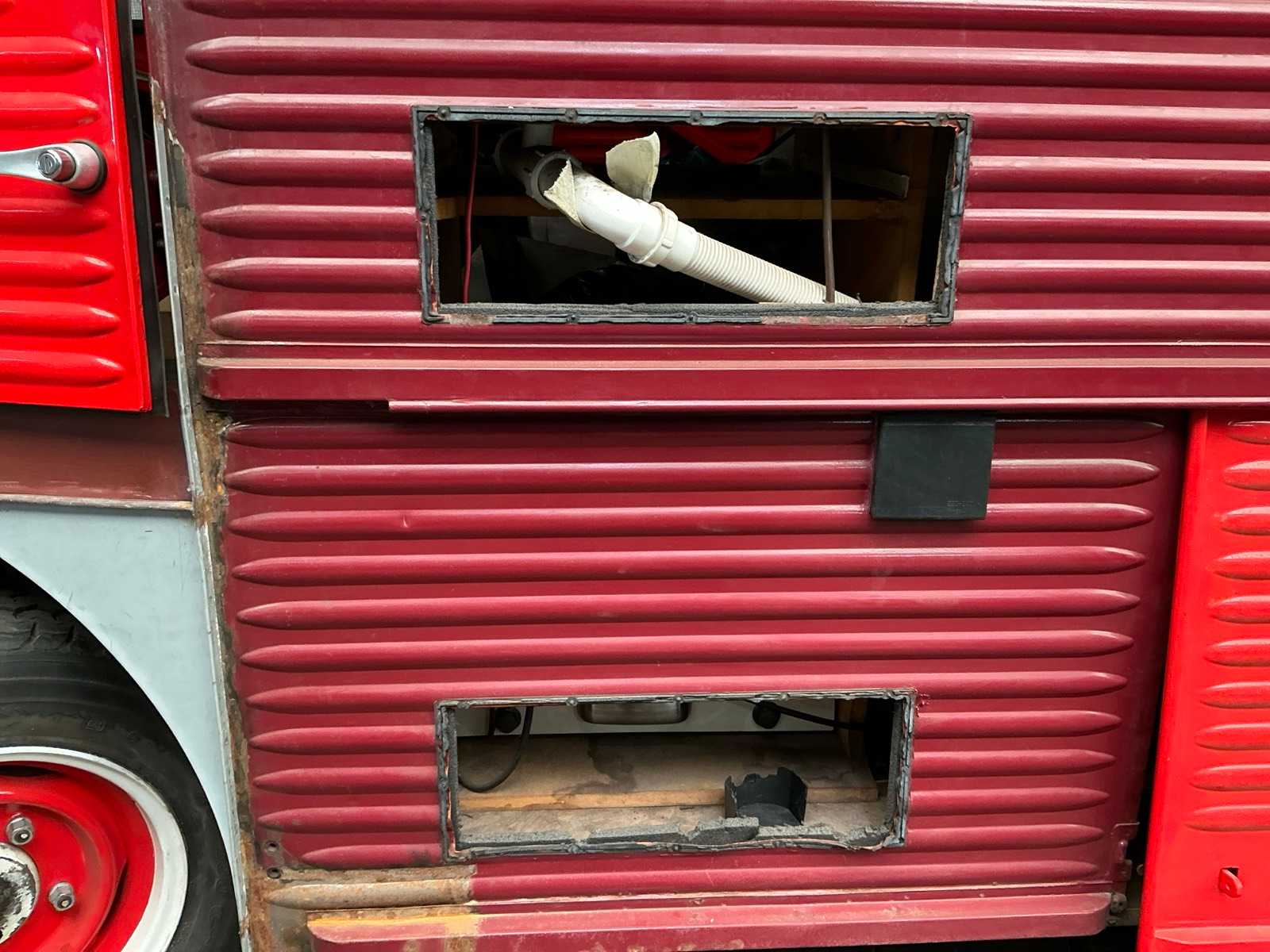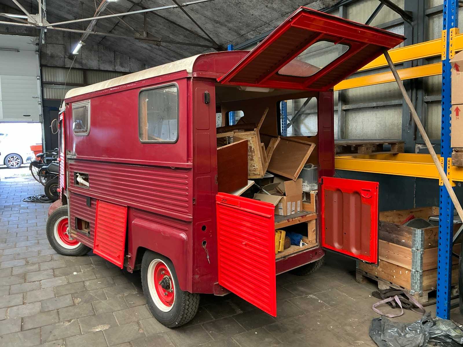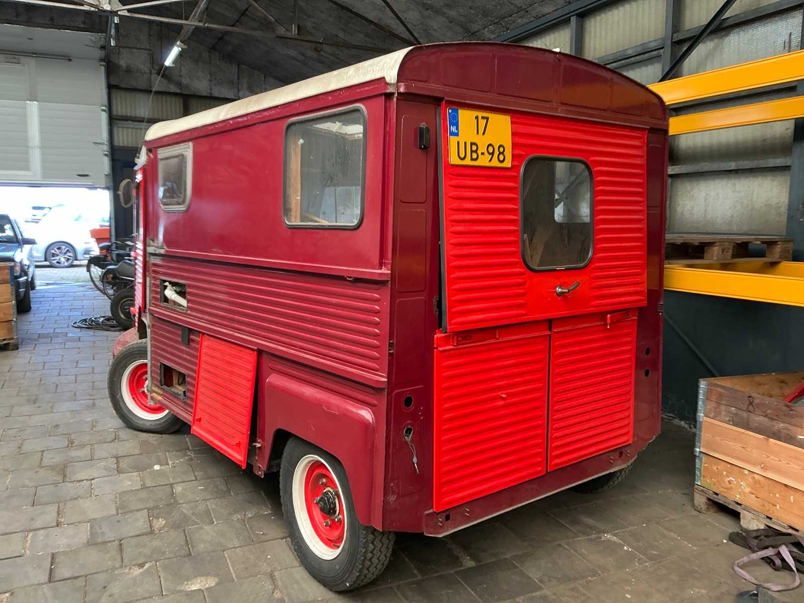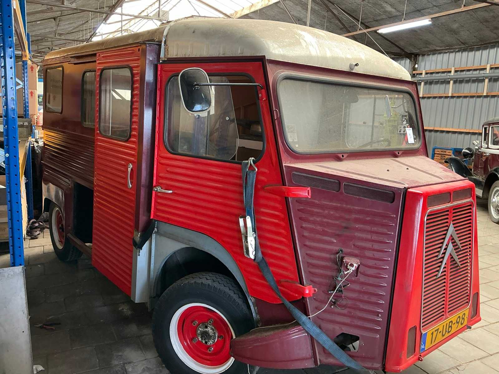 | Beschrijving | Projectauto met ingebouwde camper, gedeeltelijk gerestaureerd, moet nog worden afgebouwd; dakraam, keuken en diverse interieuronderdelen aanwezig |