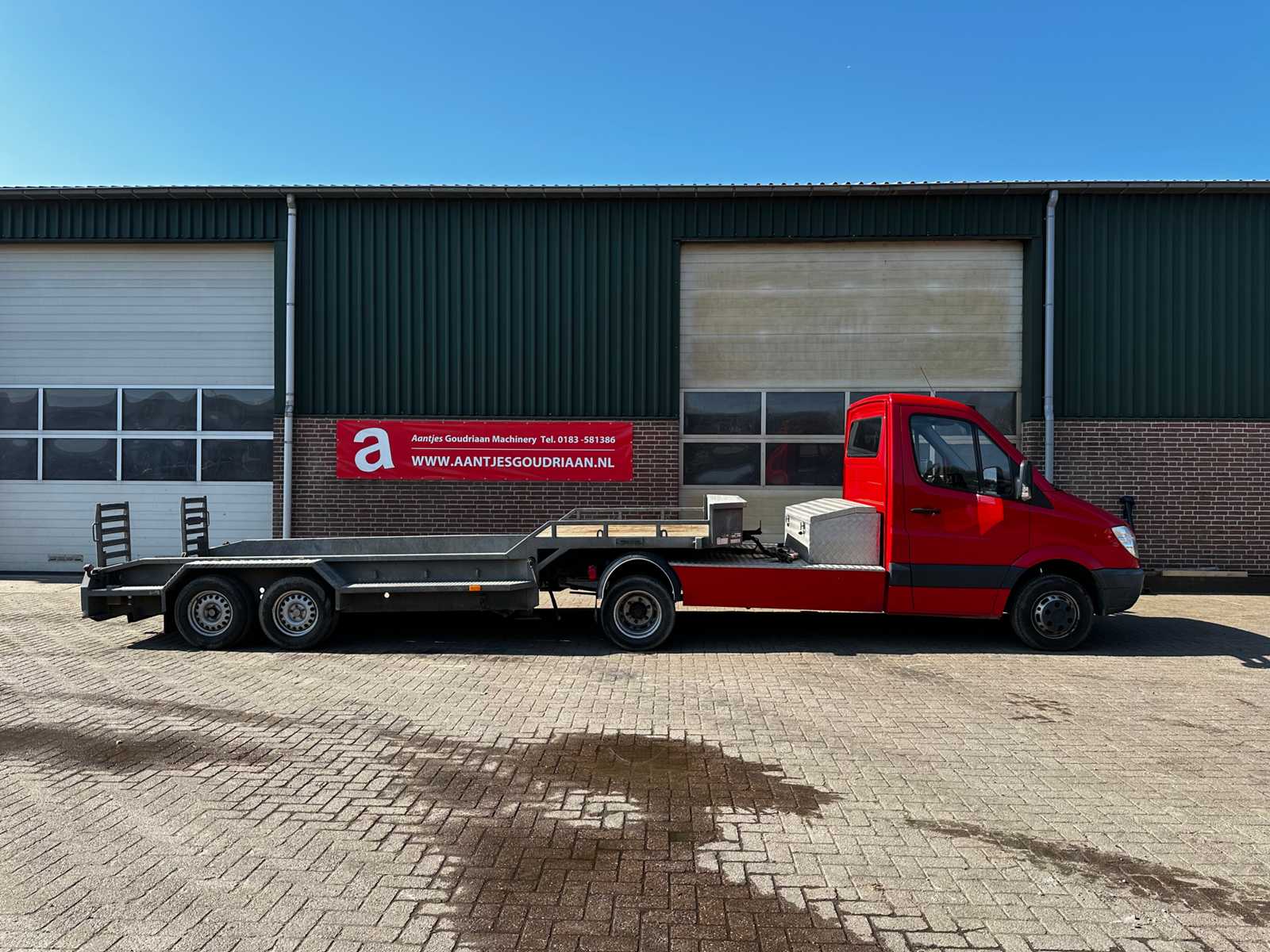 | Beschrijving | Mercedes-Benz Sprinter 515 2.2 CDI 366 DC trekwagen; bouwjaar 2008; kenteken 82-VTS-1; kilometerstand 299.769 km; vermogen 110 kW (150 pk); 4 cilinders; cilinderinhoud 2148 cc; brandstof diesel; automatische versnellingsbak; aantal zitplaatsen 3; aantal deuren 2; kleur rood; leeggewicht 1980 kg; carrosserie trekker; wielbasis 366 cm; breedte 202 cm; emissieklasse 4; APK-vervaldatum 25-03-2026; margenummer; Veldhuizen aanhangwagen dieplader; bouwjaar 2017; eigen gewicht 1330 kg; laadvermogen 5200 kg; combinatie BE; Let op; voertuig dient door koper te worden overgedragen; Alle kosten voor overdracht zijn voor rekening van de koper; voertuig wordt pas overgedragen na correcte registratie |