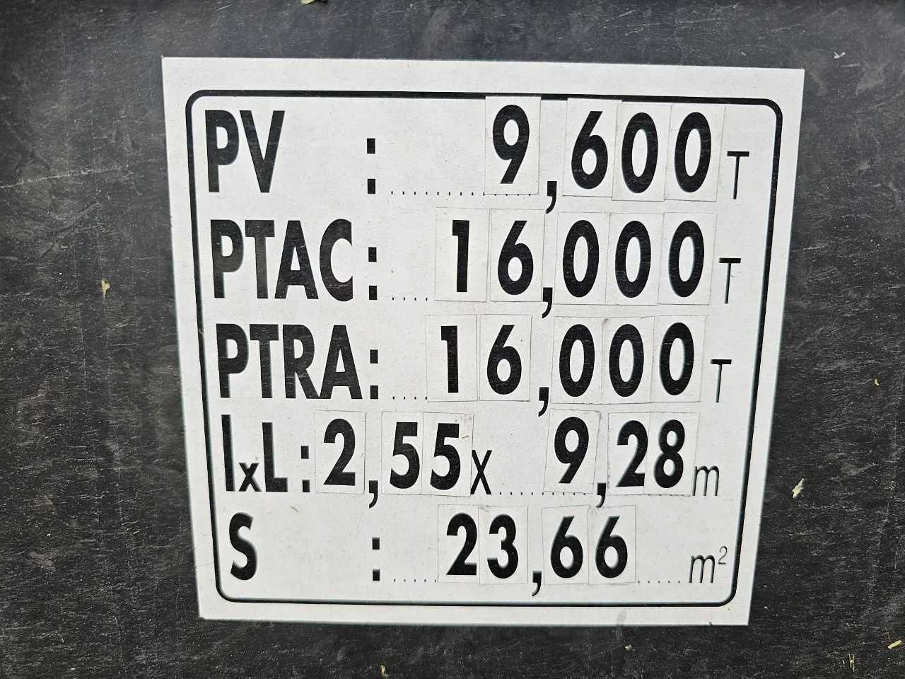 4 drzwi; 3 miejsca; ładowność 6400 kg; klapa tylna Dhollandia DHSMR 20; nośność 2000 kg; rozmiar opon 275/70 R22.5; oś przednia z hamulcami tarczowymi Volta; oś tylna z hamulcami bębnowymi Volta