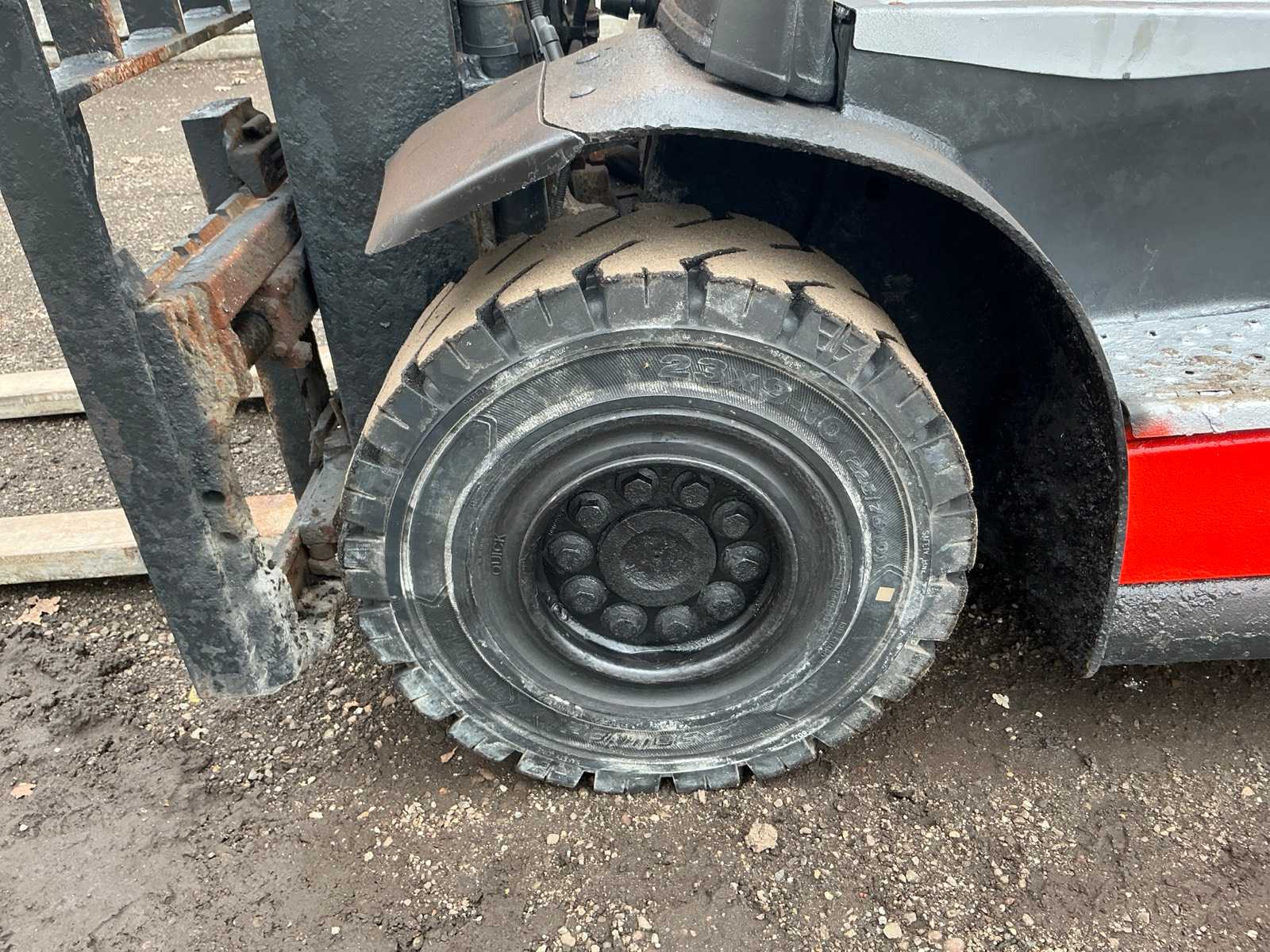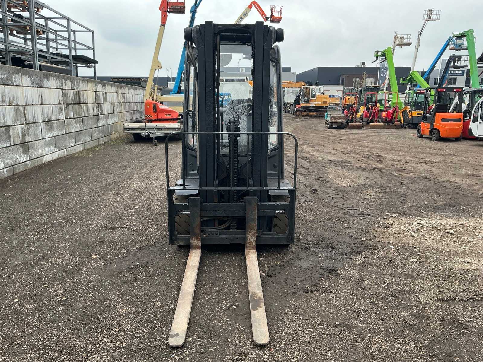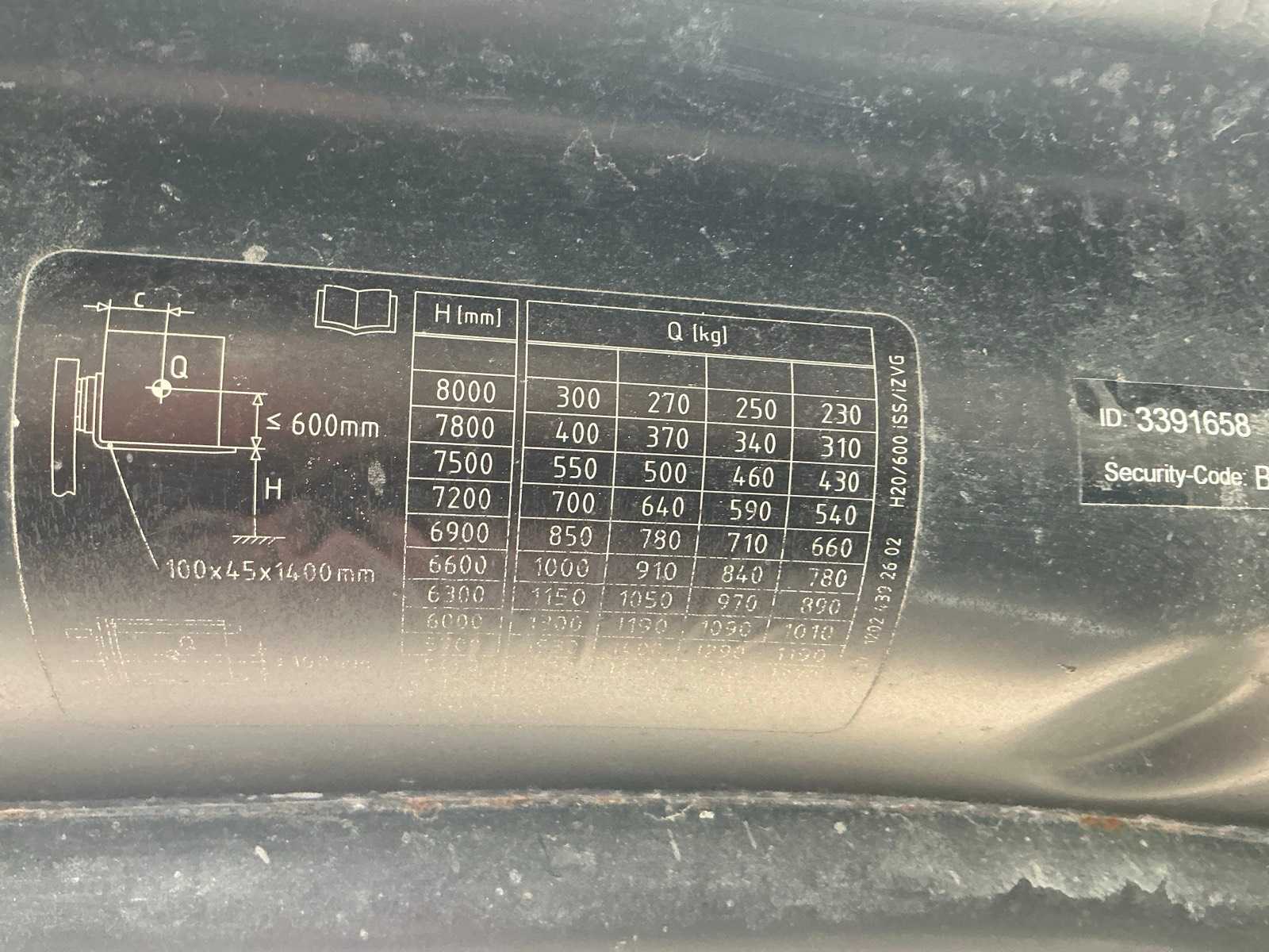 | Opis | Widelce 1400 mm, deska łyżkowa z uchwytem spawalniczym 1100 mm, maszt typu triplex, swobodny skok, przesuw boczny, ucho holownicze z sworzniem 25 mm, oświetlenie robocze, maksymalna wysokość podnoszenia 4500 mm, maksymalny udźwig 2000 kg |