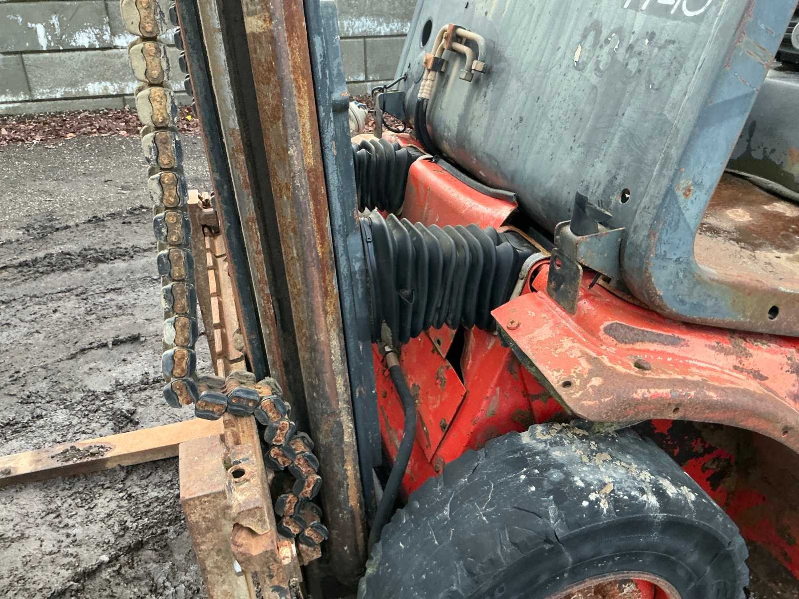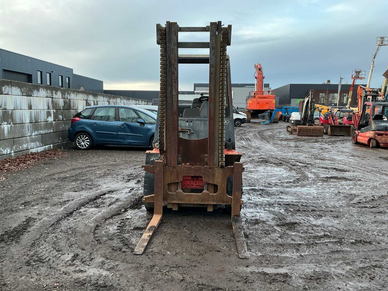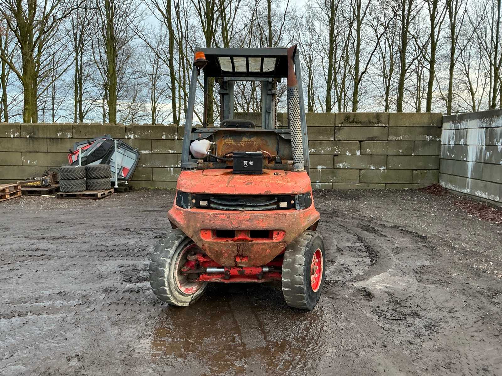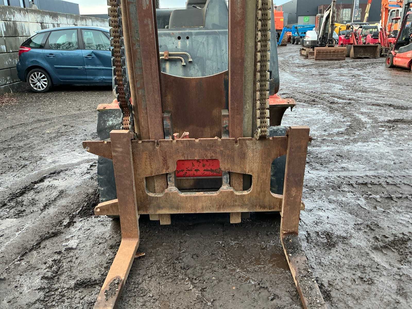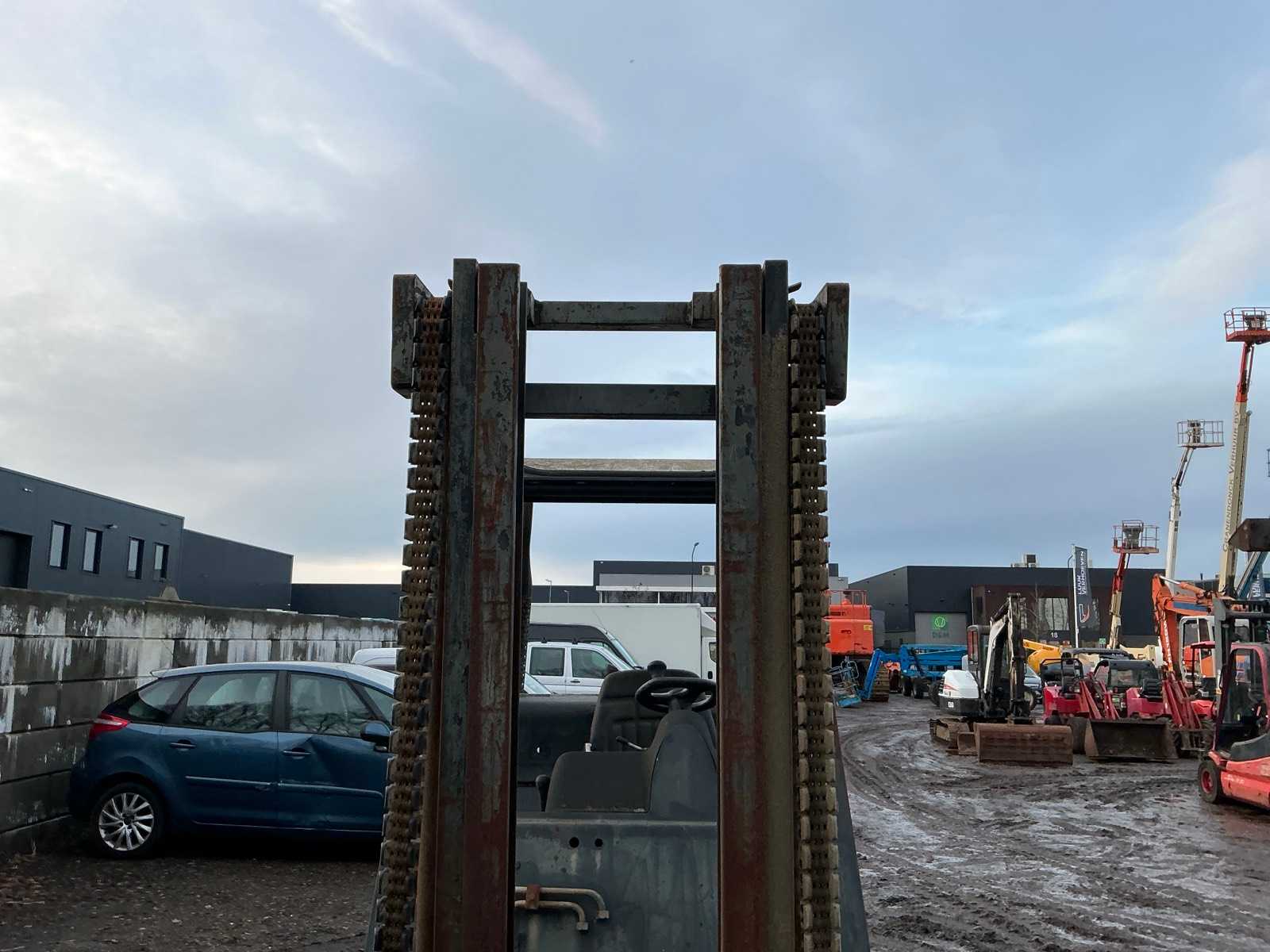 Please note; engine goes around but does not start, forks 1000mm, spoon board 1350mm, towing eye rear, max lifting height 4500mm, max lifting capacity 4000kg