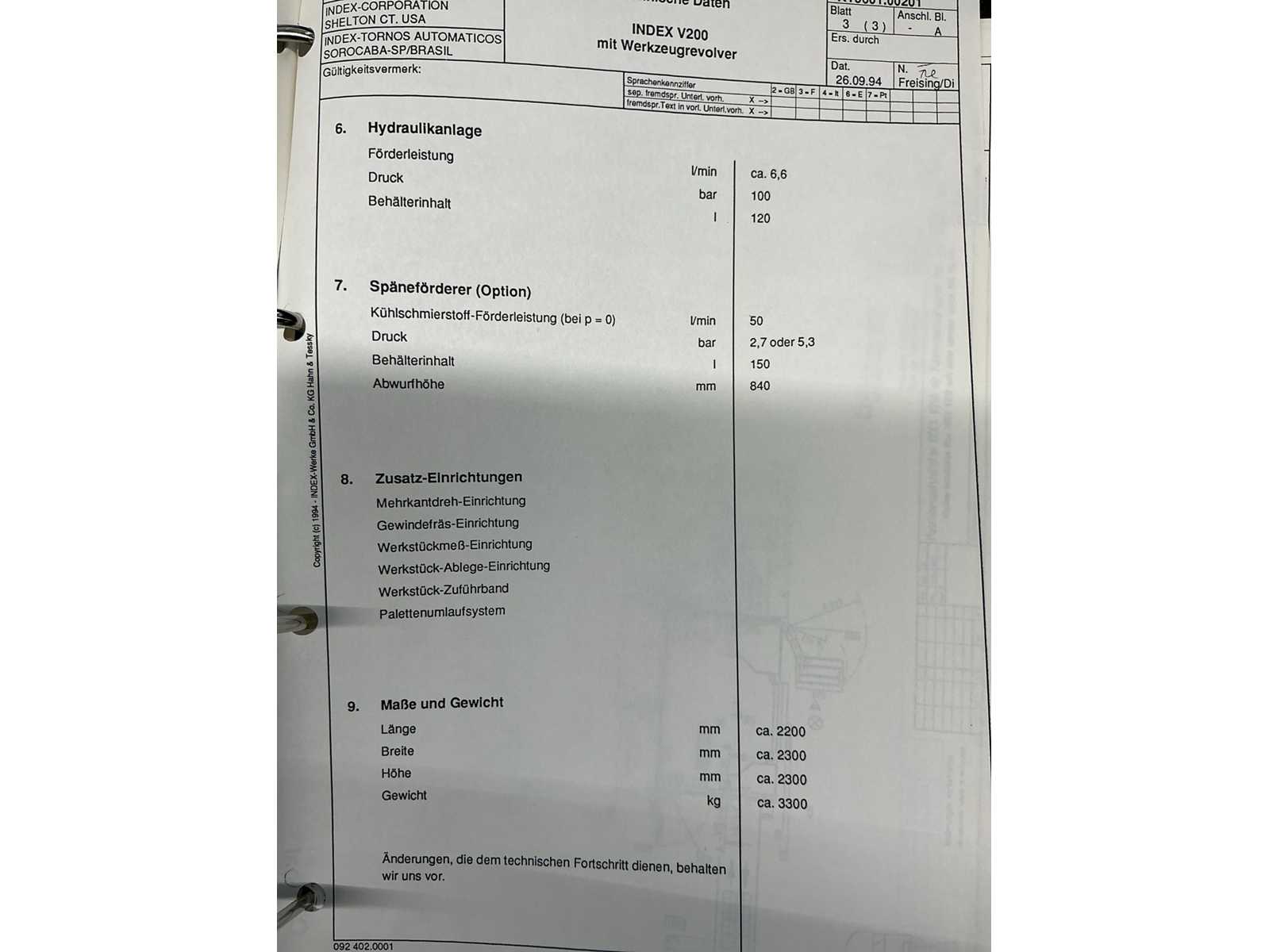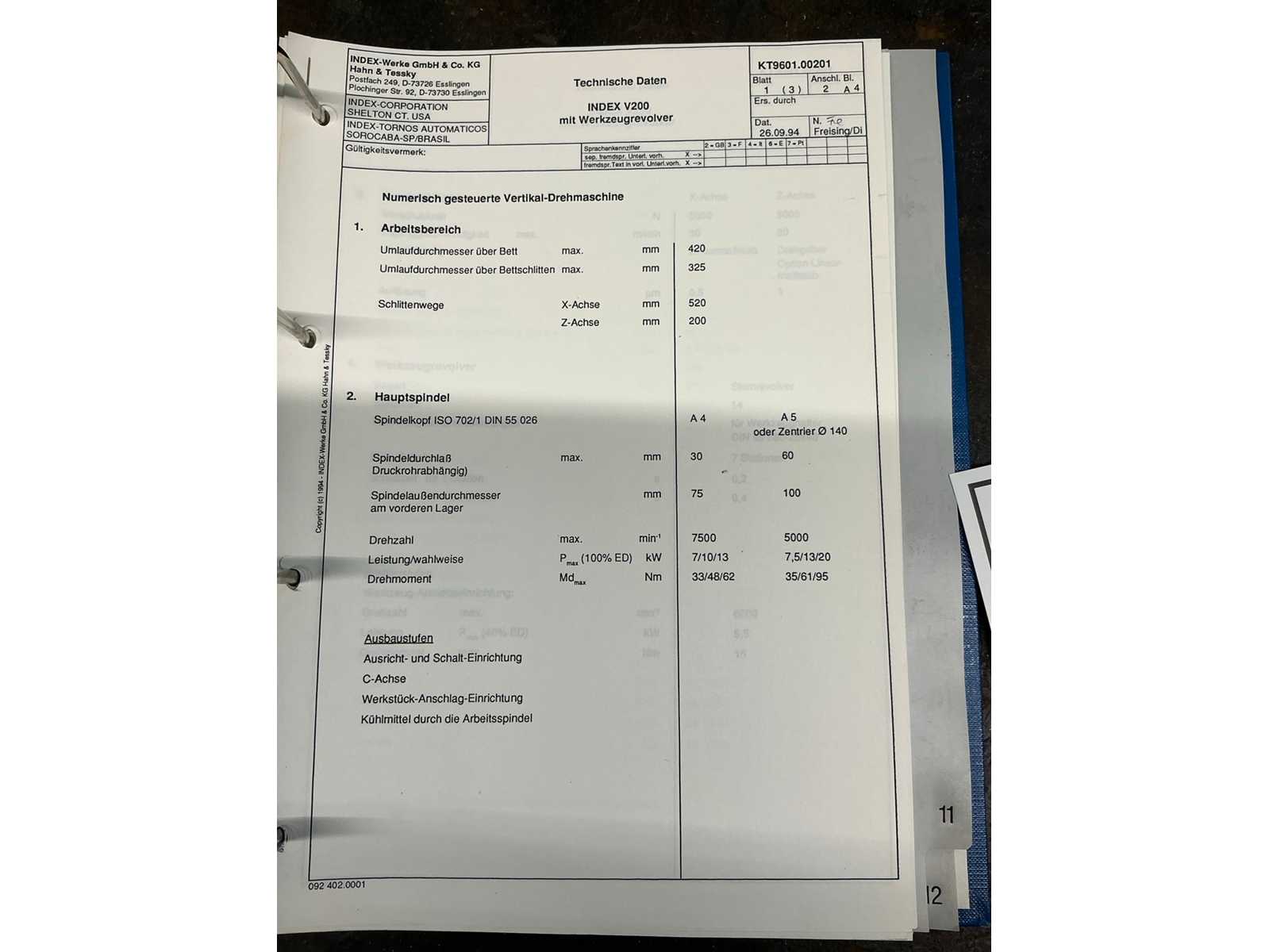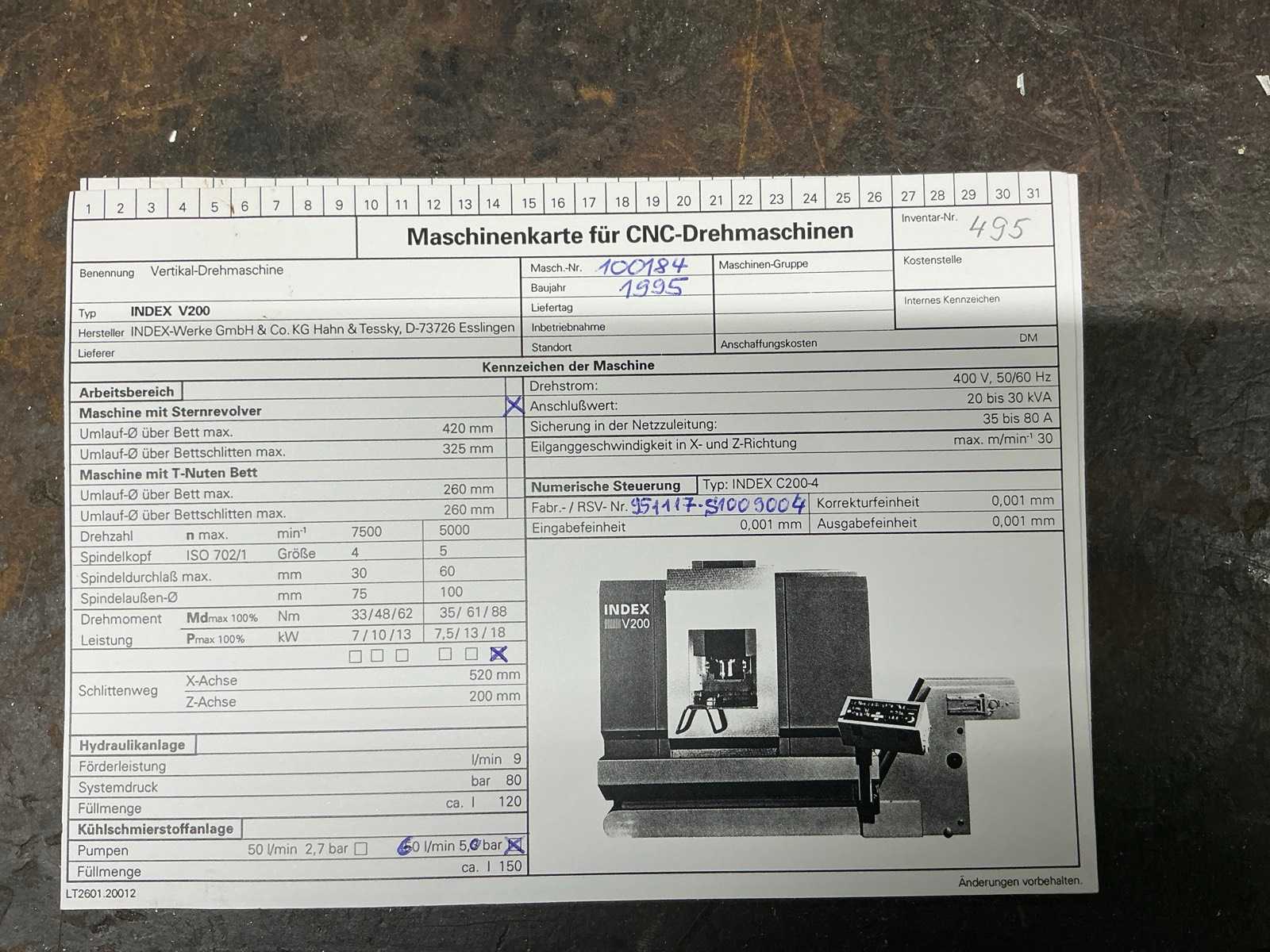 1995 INDEX V200 CNC Vertical Lathe