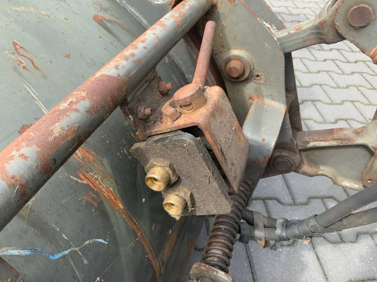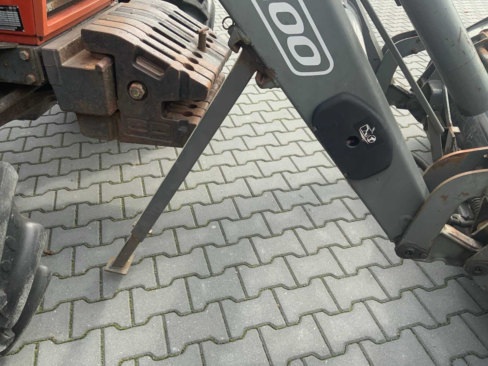 Without tractor Including front loader frame * equipped with operating stick * equipped with quick release * including excavator bucket approximately 180x60x70cm * including implement carrier * including forks (fork length 105cm) * 1x double-acting electrically operated valve * 1x hydraulically operated valve * equipped with barrier legs * maximum Working height 370cm * cylinders equipped with new seals * equipped with stabilization device