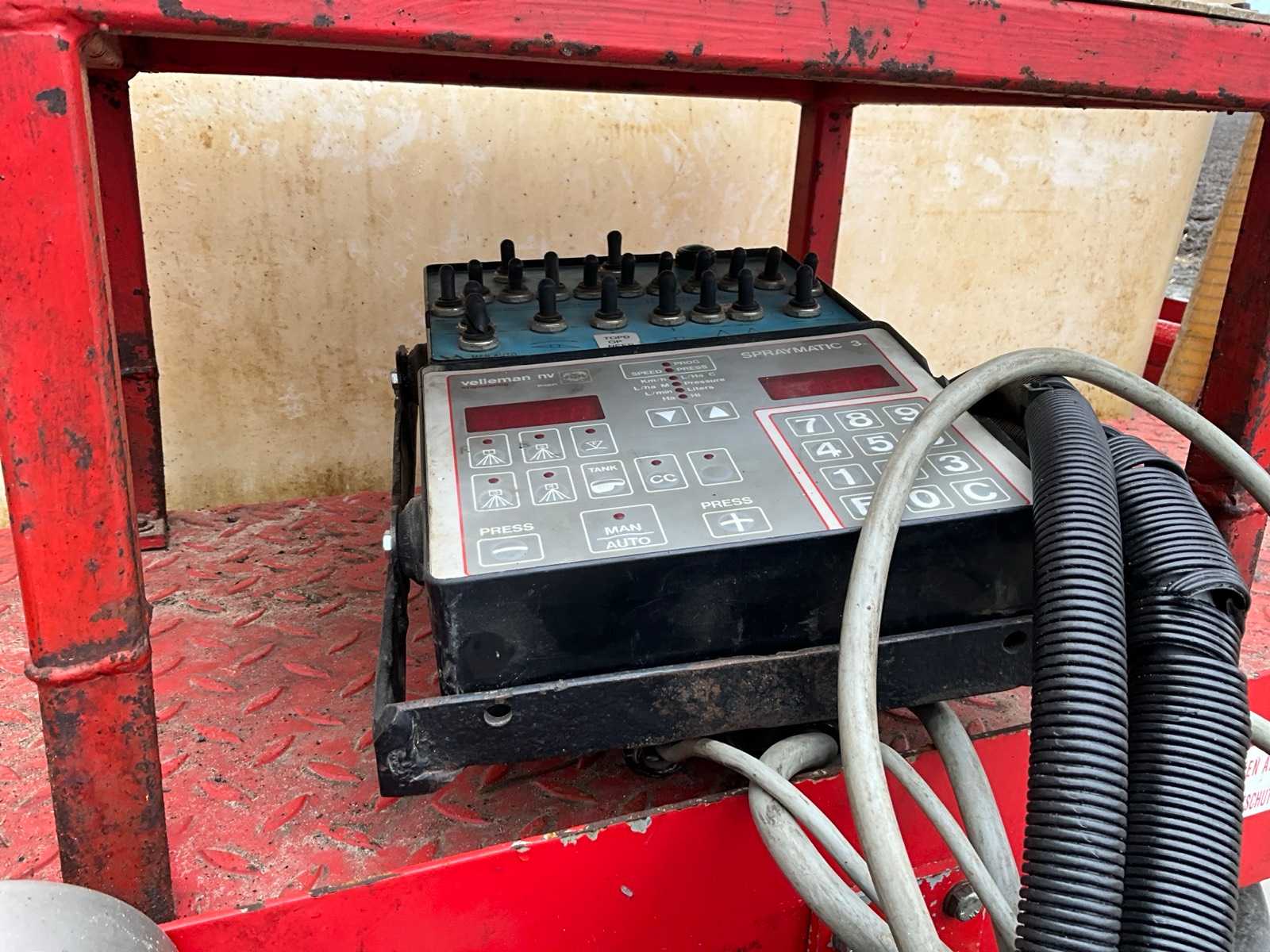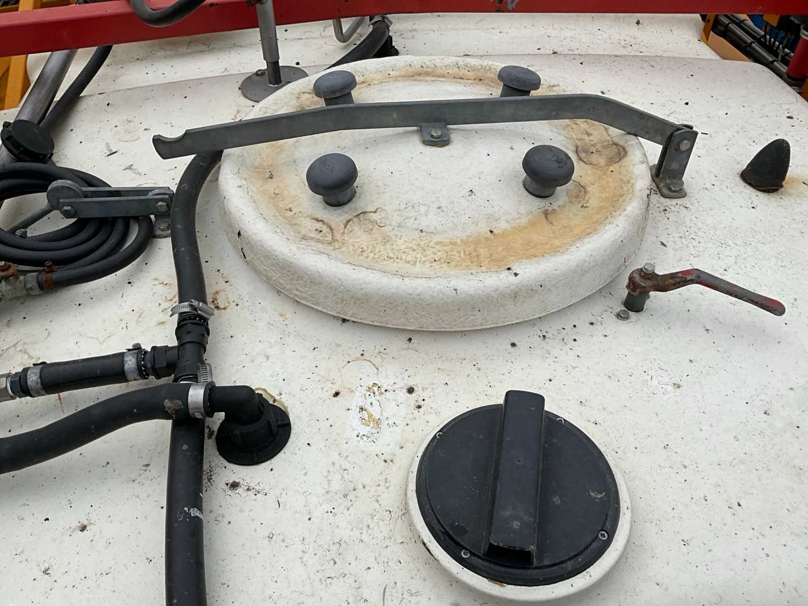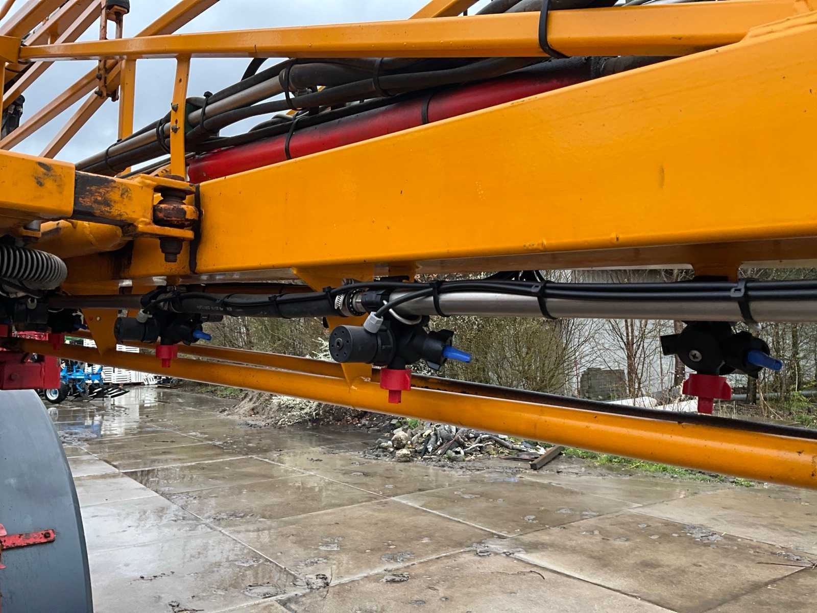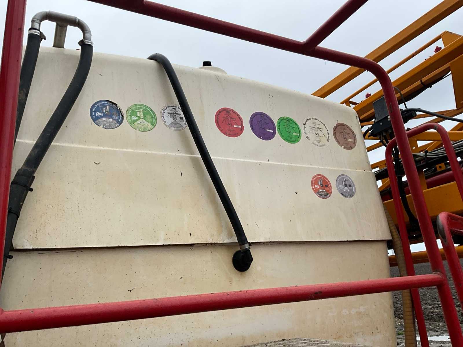 Keg cleaner; Hydr. balance control; Hydr. height adjustment; Hydr.in and fold-out; Braked axle; Spray computer; Steered wheels; Electr./ Hydr.control; – Induction loop; 4 ling cap holder, air lockable; 03 and 04 caps; 36/45 meter boom configuration; Steering knuckle; 50 cm cap spacing; 9 switchable sections; Electric edge cap; Double suction diaphragm pump, PTO driven; Inspection until March 2026
