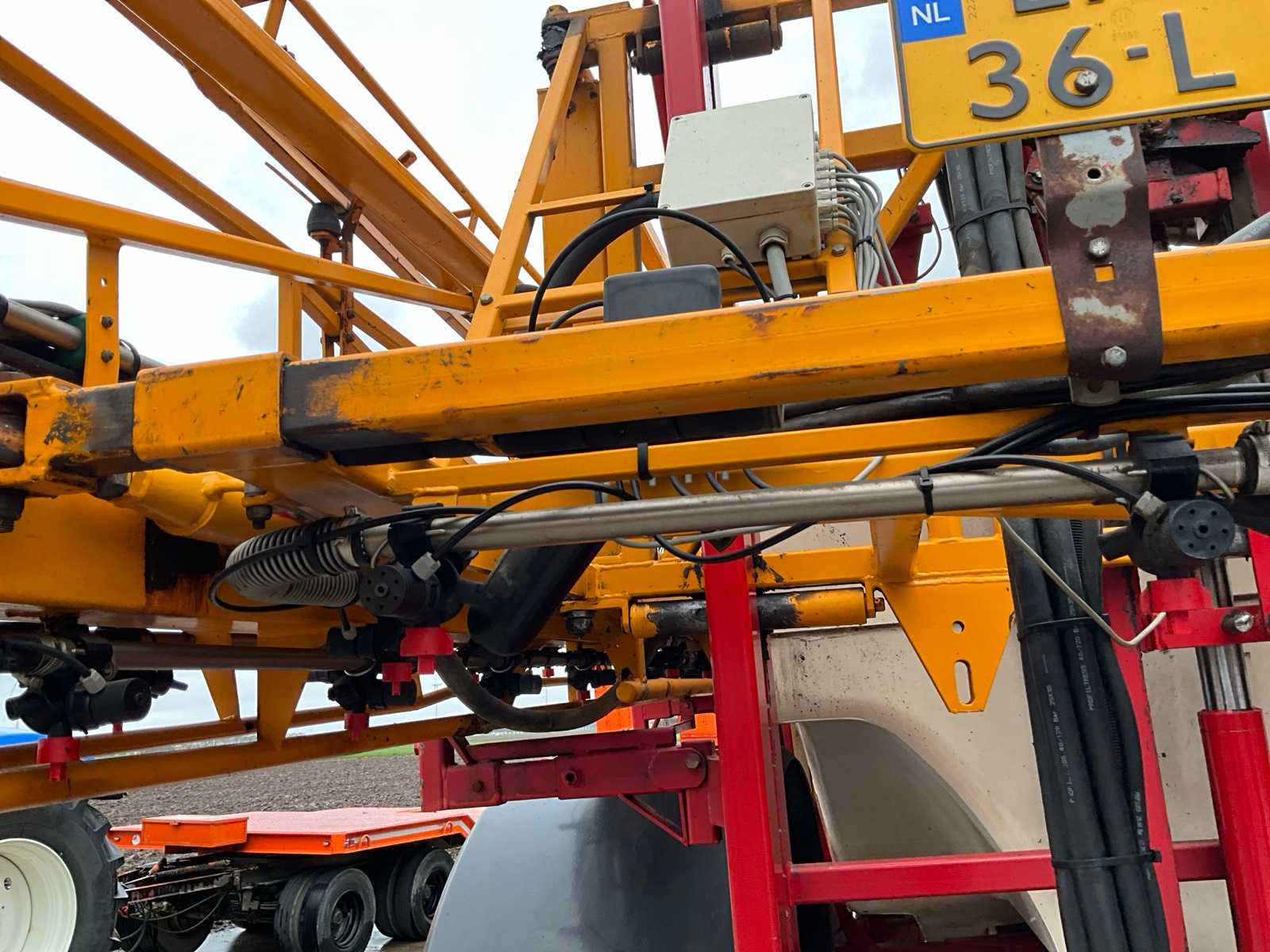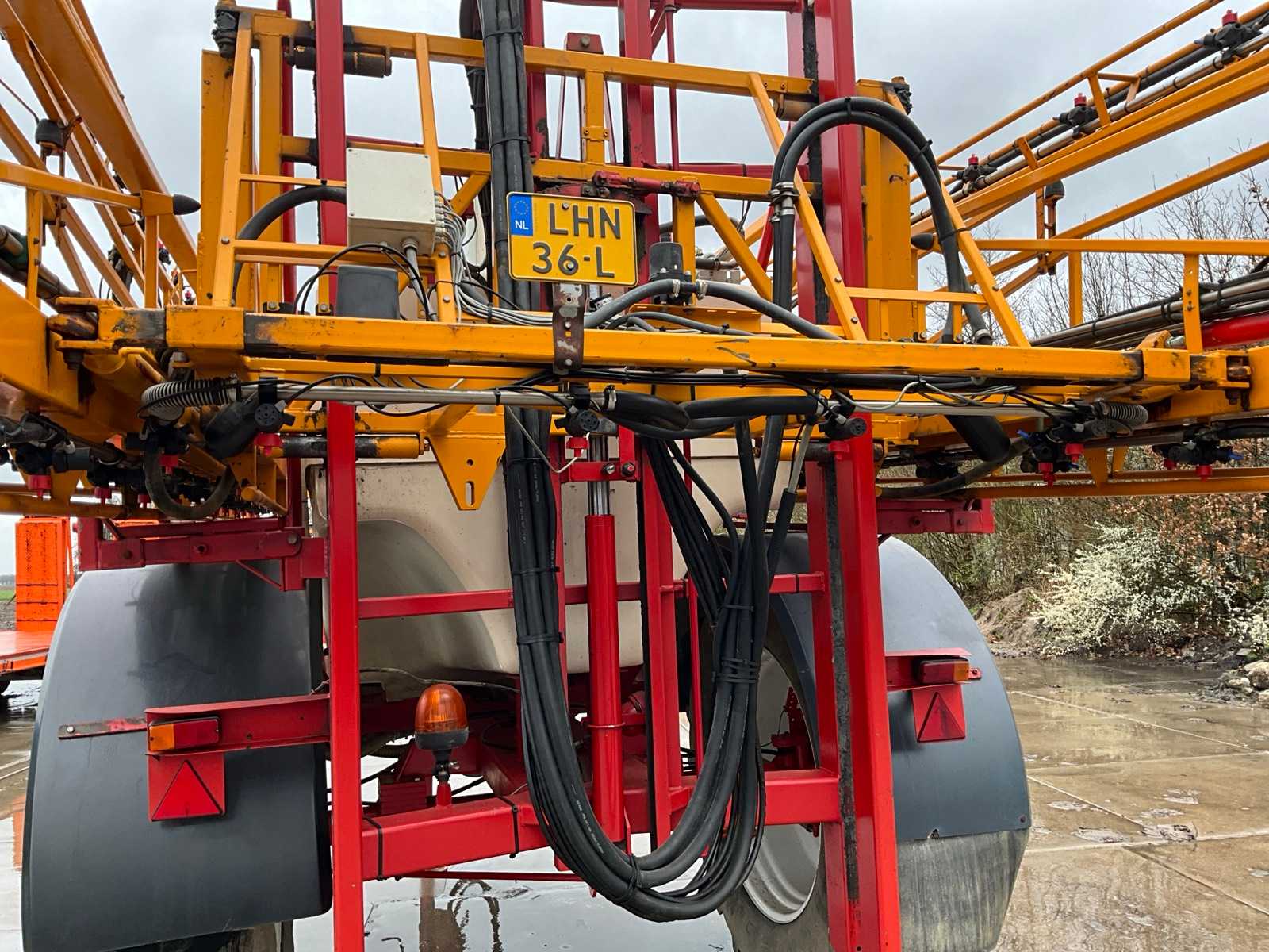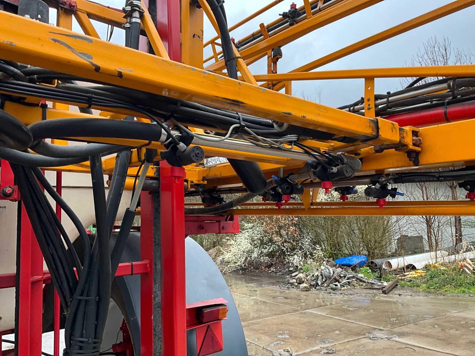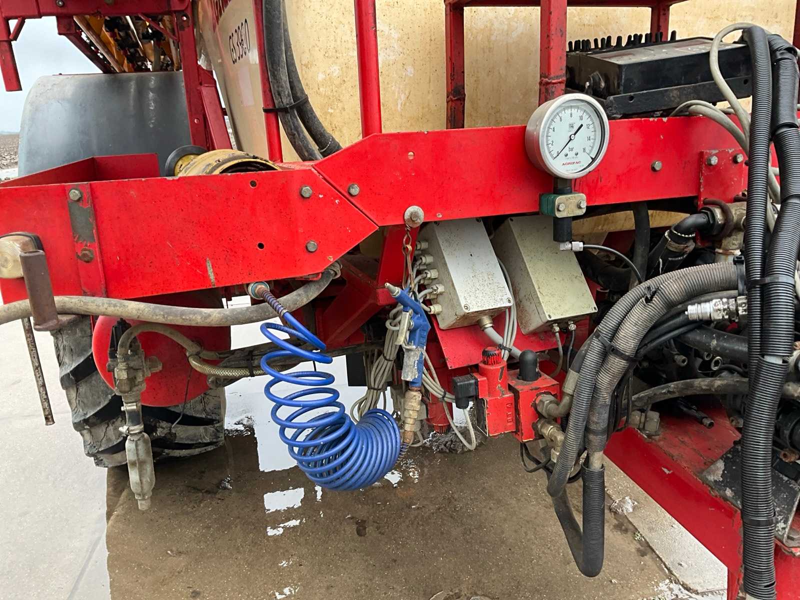 Keg cleaner; Hydr. balance control; Hydr. height adjustment; Hydr.in and fold-out; Braked axle; Spray computer; Steered wheels; Electr./ Hydr.control; – Induction loop; 4 ling cap holder, air lockable; 03 and 04 caps; 36/45 meter boom configuration; Steering knuckle; 50 cm cap spacing; 9 switchable sections; Electric edge cap; Double suction diaphragm pump, PTO driven; Inspection until March 2026