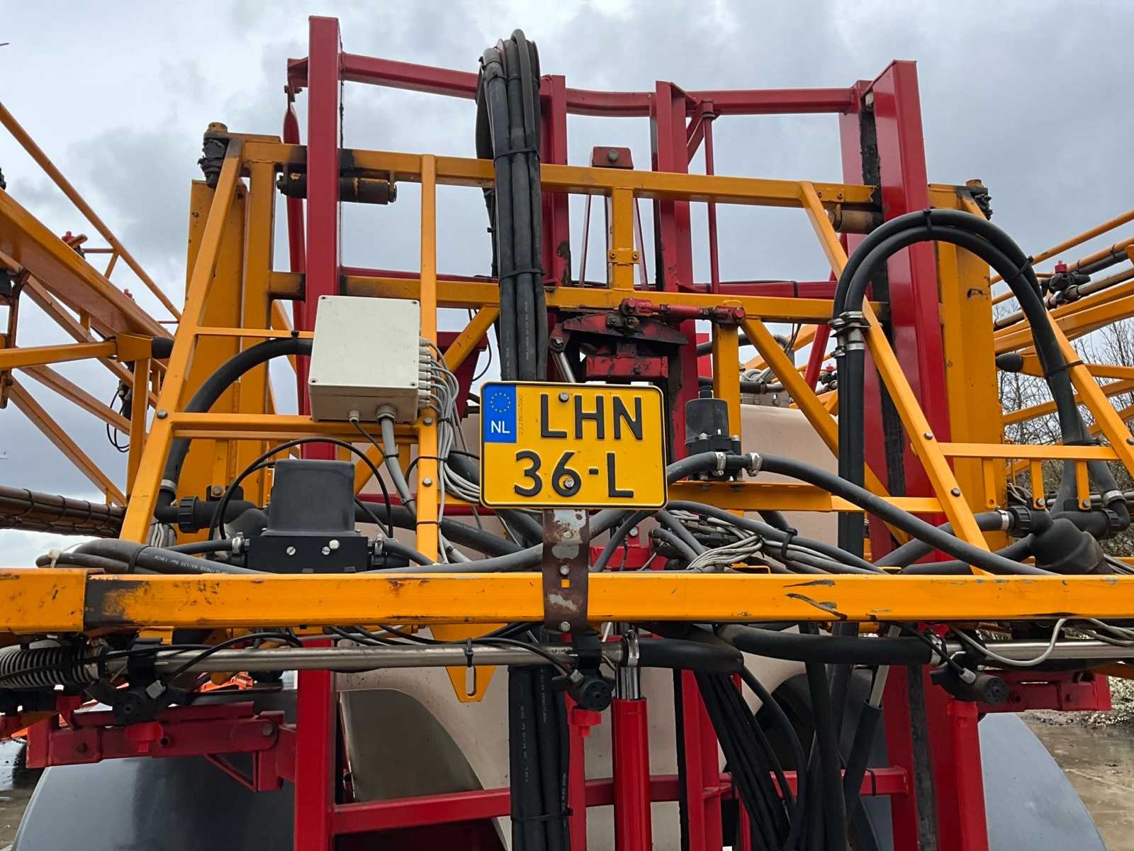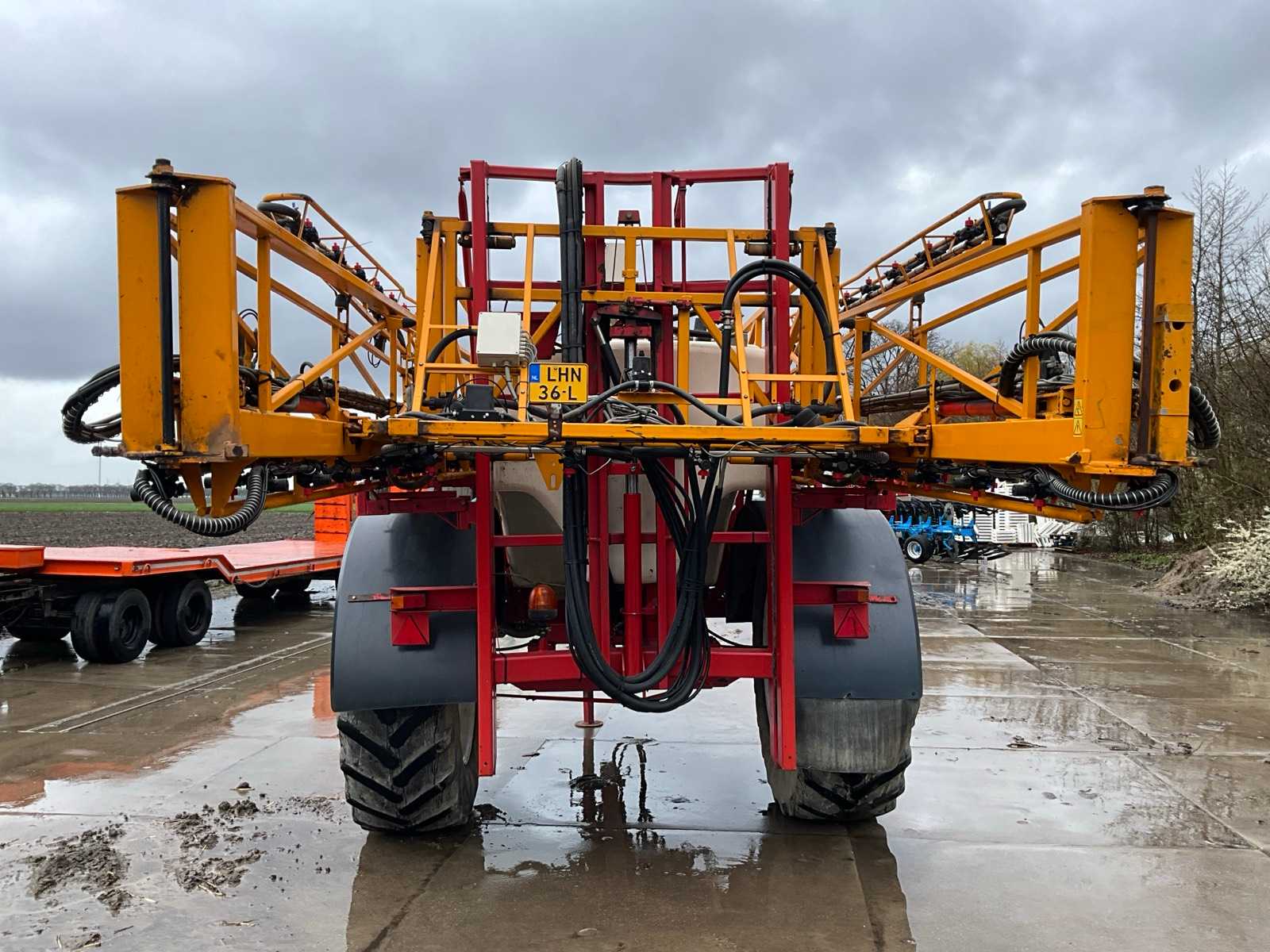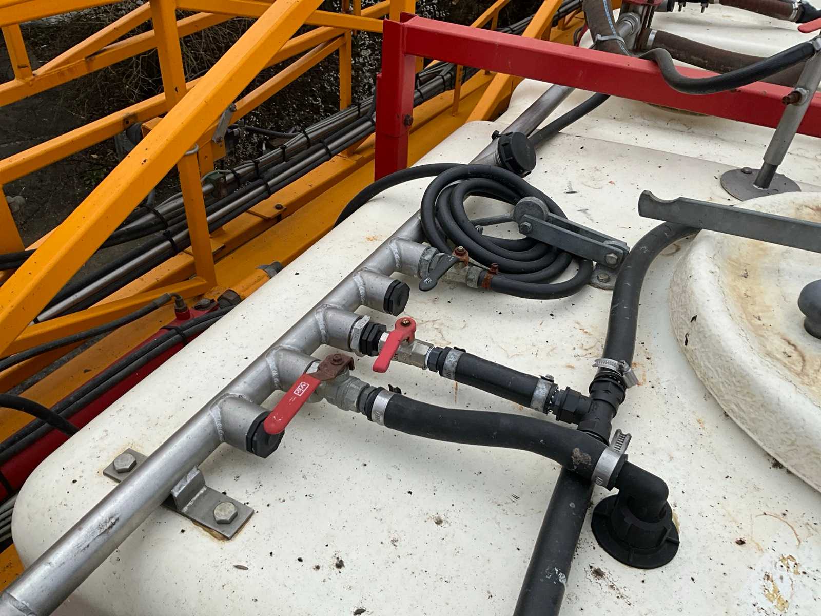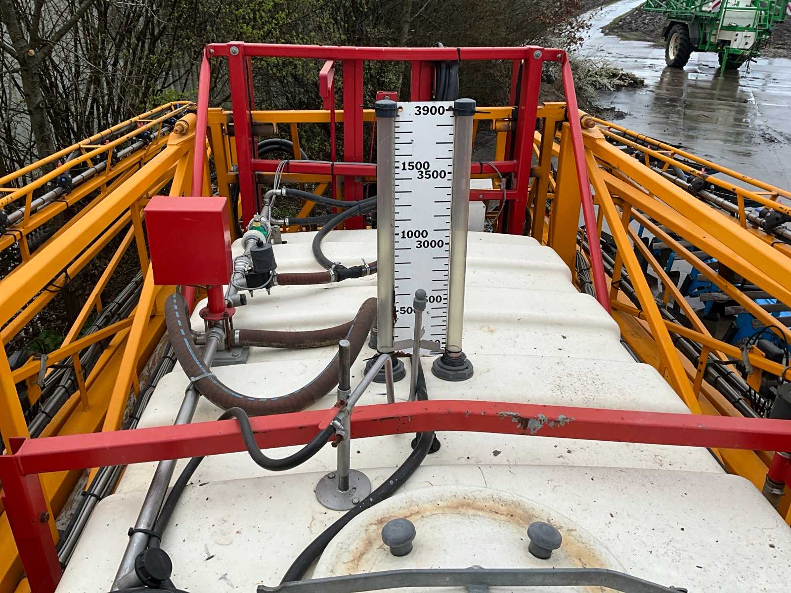 Keg cleaner; Hydr. balance control; Hydr. height adjustment; Hydr.in and fold-out; Braked axle; Spray computer; Steered wheels; Electr./ Hydr.control; – Induction loop; 4 ling cap holder, air lockable; 03 and 04 caps; 36/45 meter boom configuration; Steering knuckle; 50 cm cap spacing; 9 switchable sections; Electric edge cap; Double suction diaphragm pump, PTO driven; Inspection until March 2026