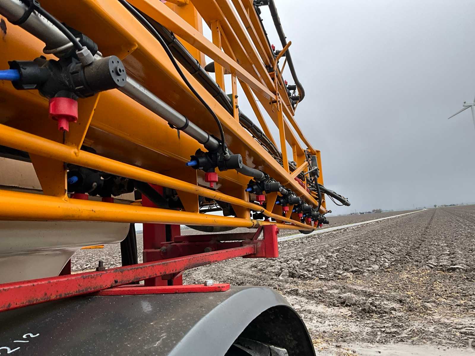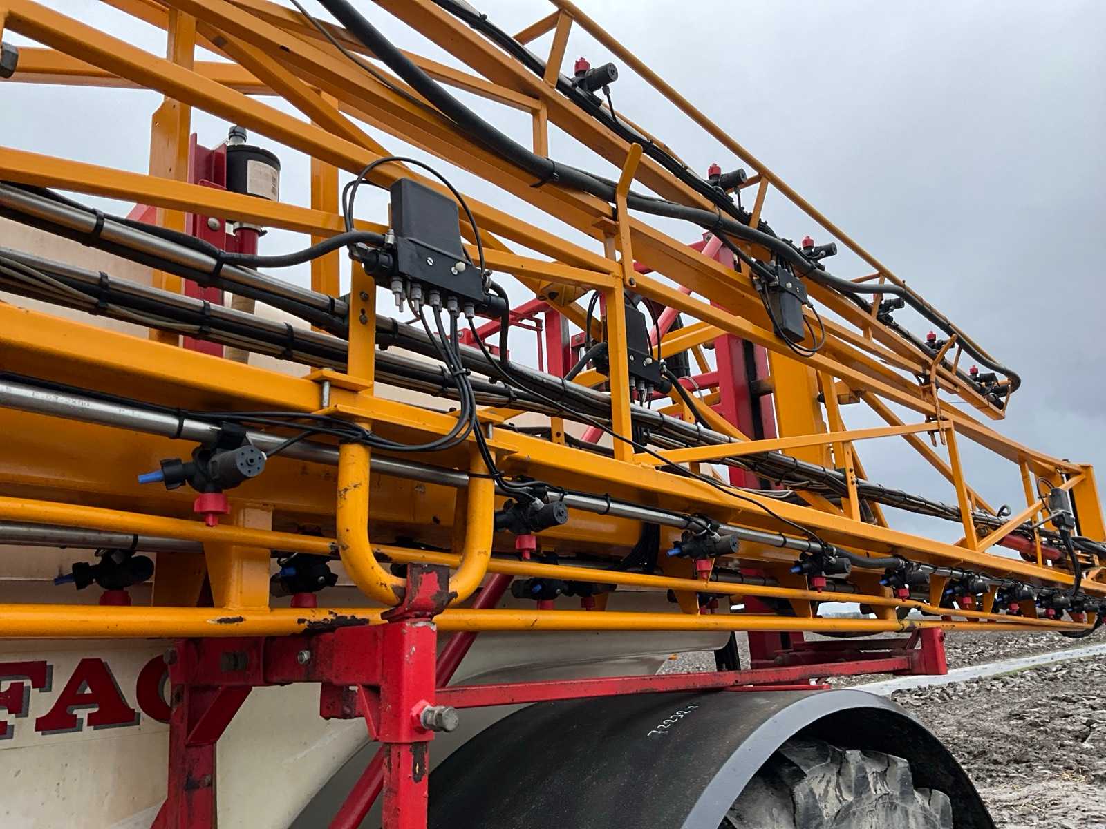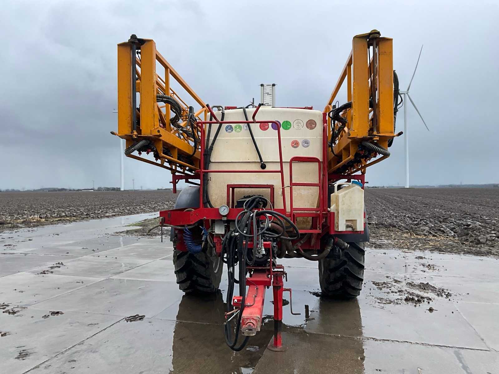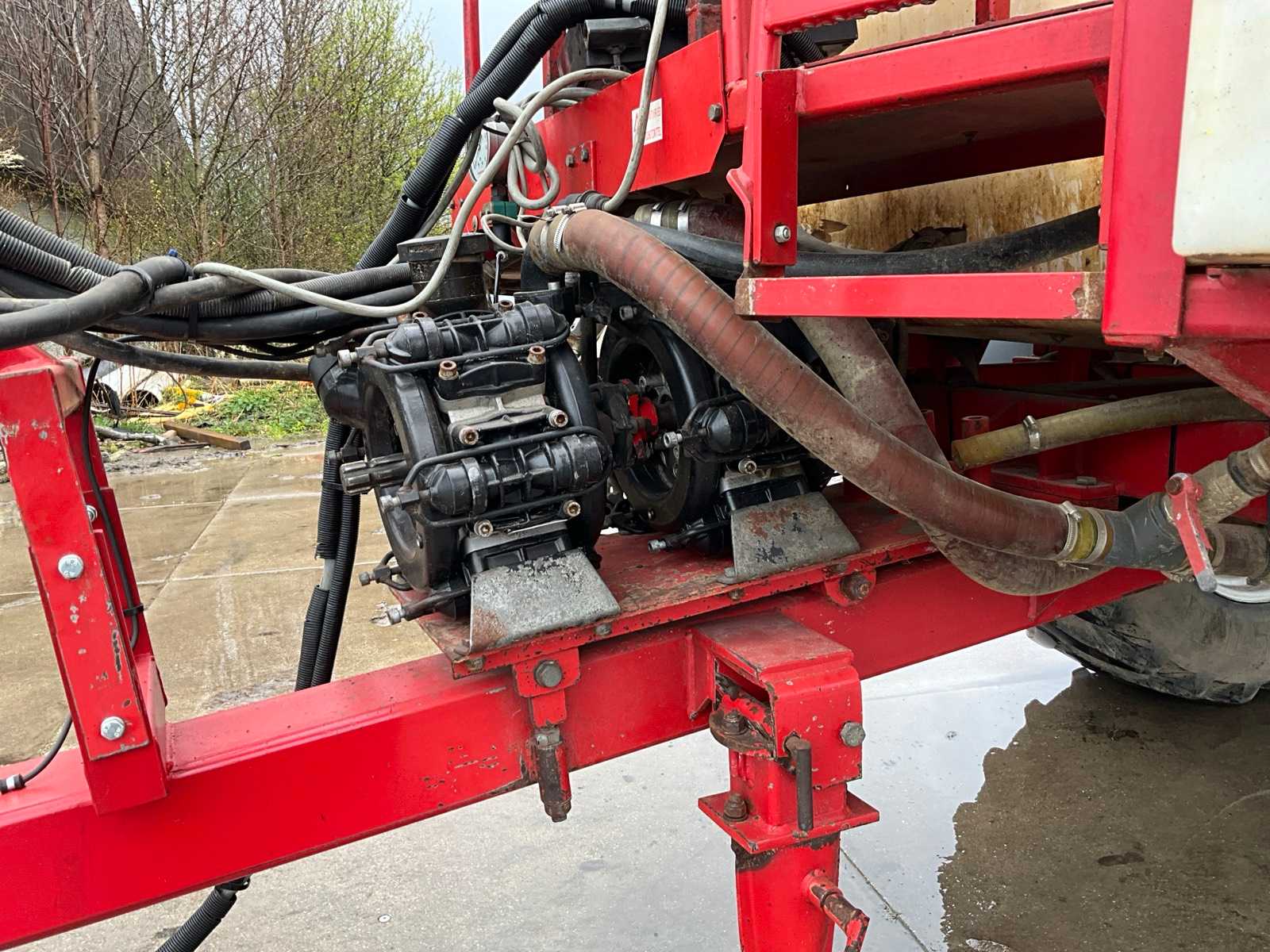 Keg cleaner; Hydr. balance control; Hydr. height adjustment; Hydr.in and fold-out; Braked axle; Spray computer; Steered wheels; Electr./ Hydr.control; – Induction loop; 4 ling cap holder, air lockable; 03 and 04 caps; 36/45 meter boom configuration; Steering knuckle; 50 cm cap spacing; 9 switchable sections; Electric edge cap; Double suction diaphragm pump, PTO driven; Inspection until March 2026