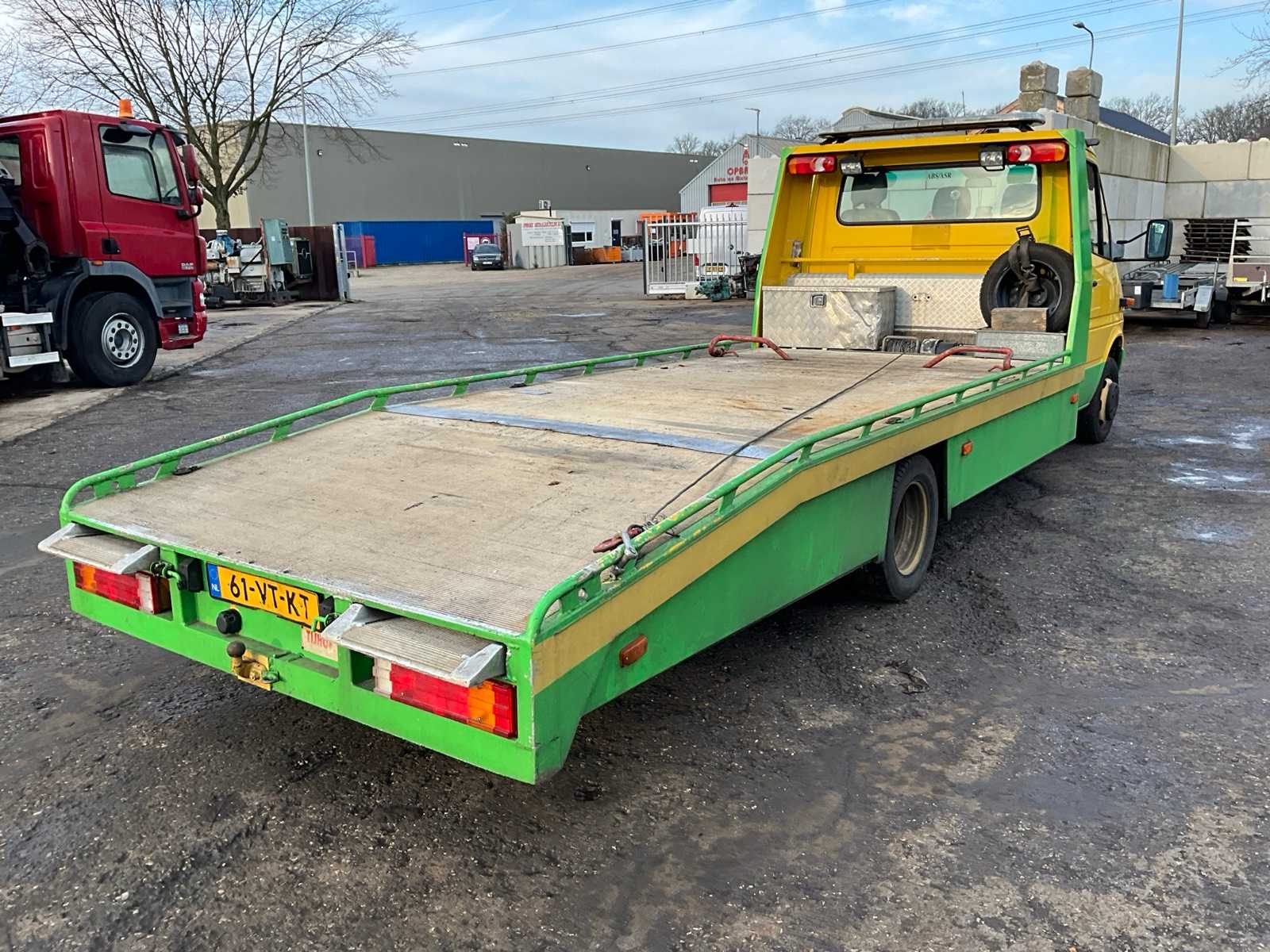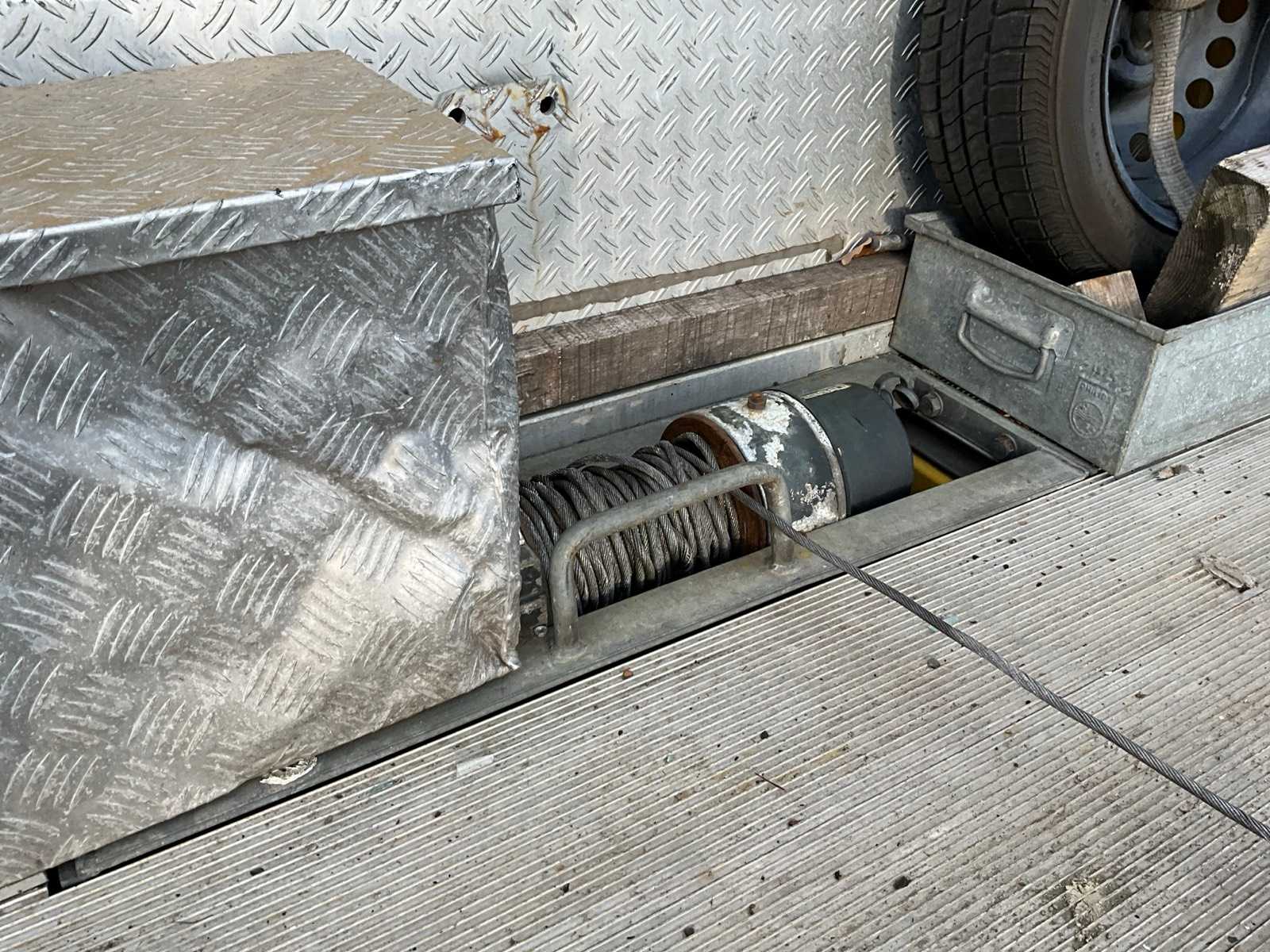 | Description | Electric windows and mirrors, radio, air conditioning, central locking, ASR, digital tachograph, winch, loading floor 420x200cm, 2x ramp, tow bar with 13-pin plug |