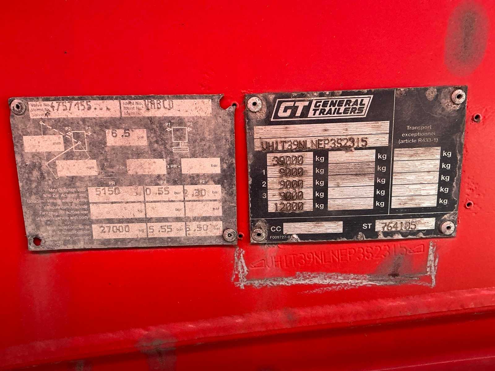 Attention Dutch vehicle documents, MOT EXPIRATION DATE: 23/09/2025, mass of unladen vehicle: 6900kg, Max.Mass of vehicle: 39000kg, load capacity,: 32100kg