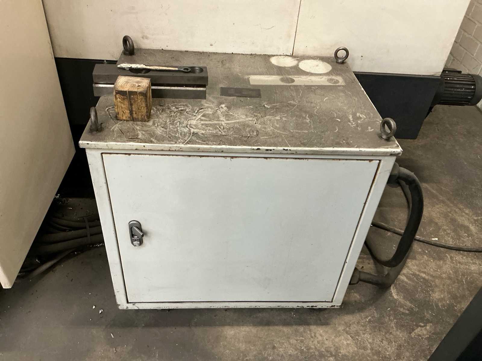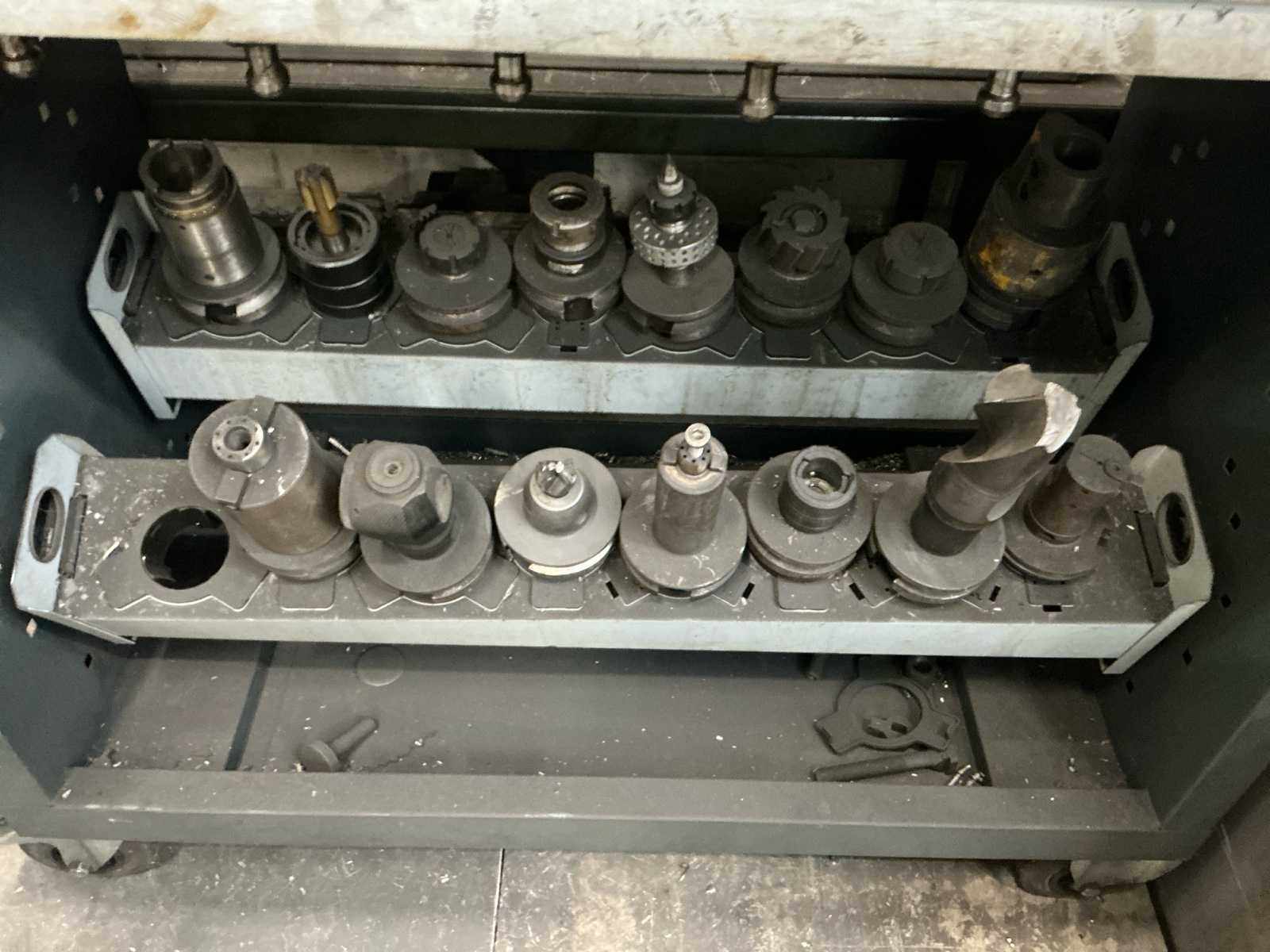 | Description | Equipped with: various tools, chip conveyor, cooling via spindle, end mills, high-speed steel drilling, CNC control, milling holder in machine, closed cage construction, precision remote control for determining zero point |