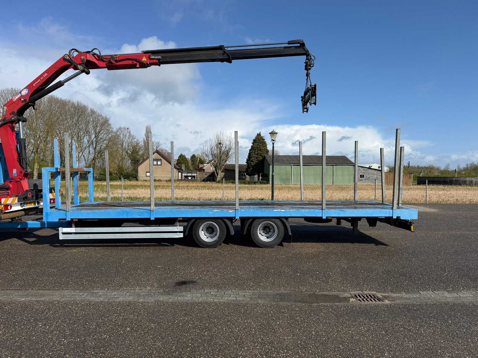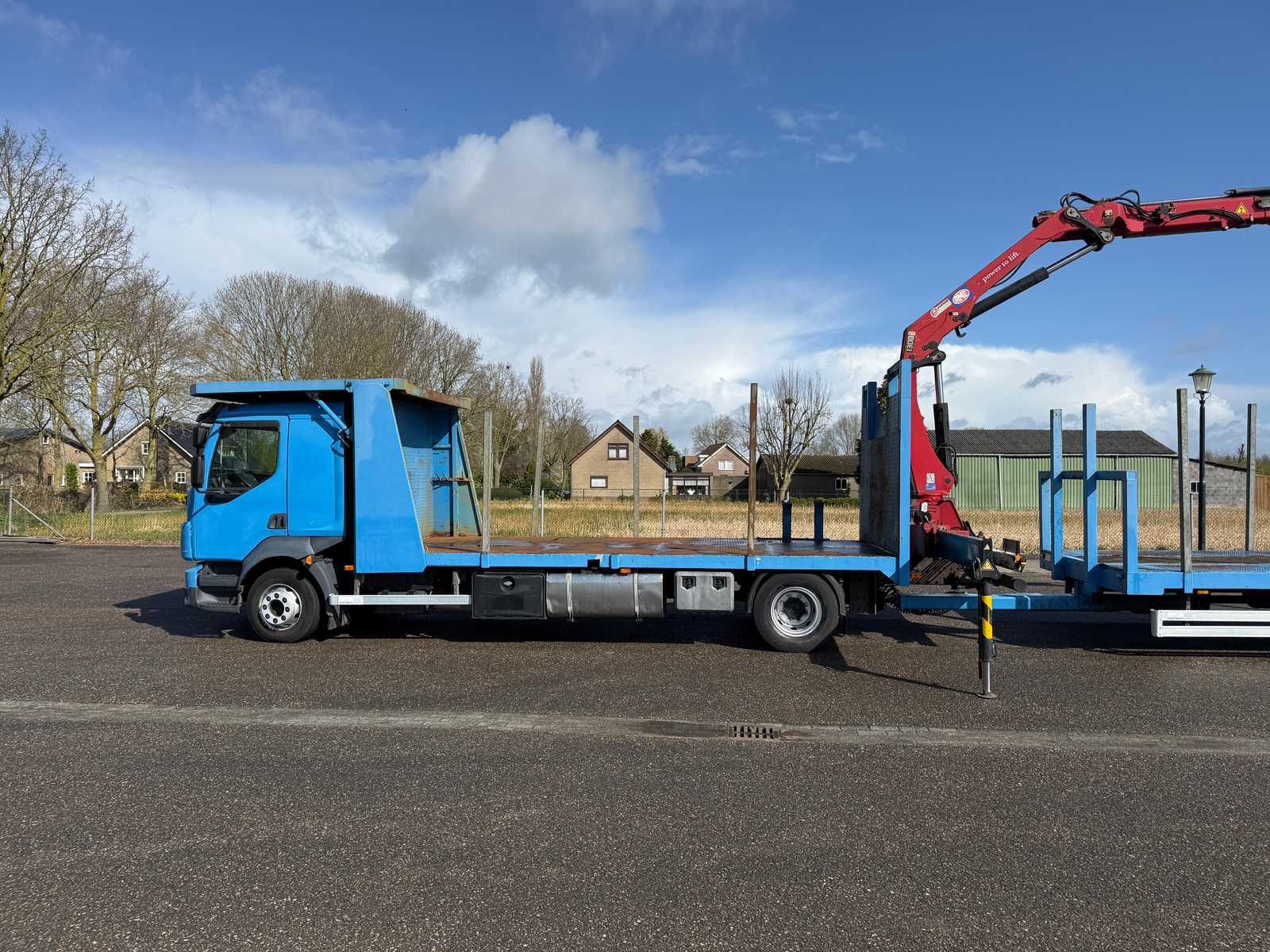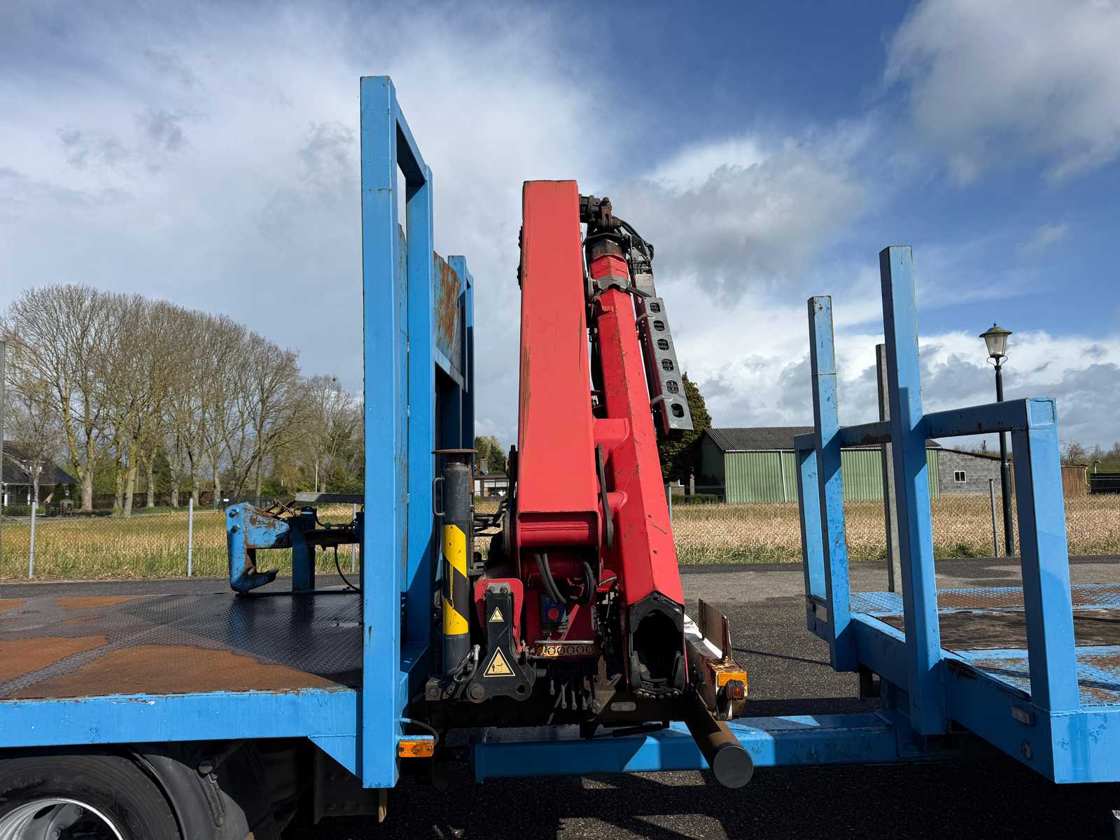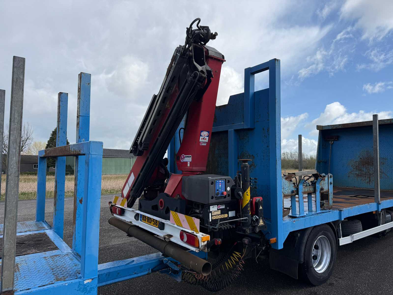 | Description | Equipped with: HMF 1300 Truck-mounted crane with 2x hydraulic support legs, (HMF 1300 K2, Year of Construction 2010, 2x extendable with rotator), 6 holes with four stanchions on box truck, 12x stanchions with holes on trailer, grab clamp for the crane (suitable for cars to clamp), double tank, storage boxes side, BPW Axles on trailer, engine brake |
