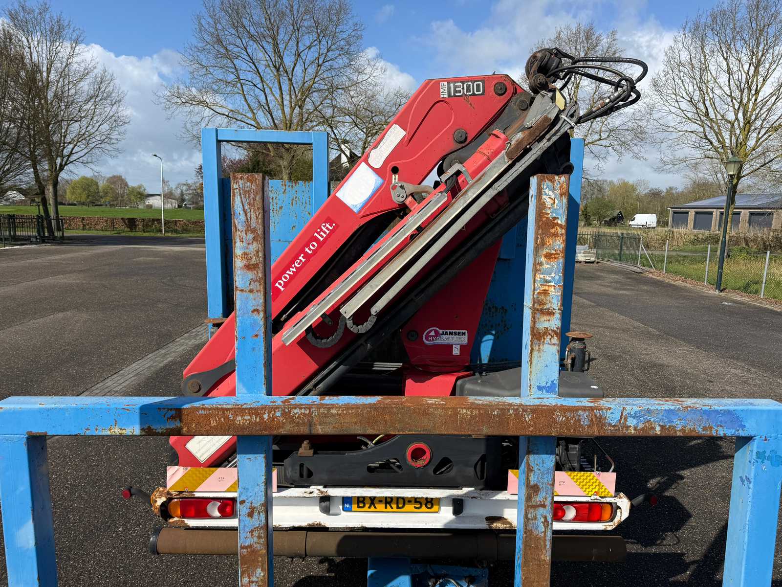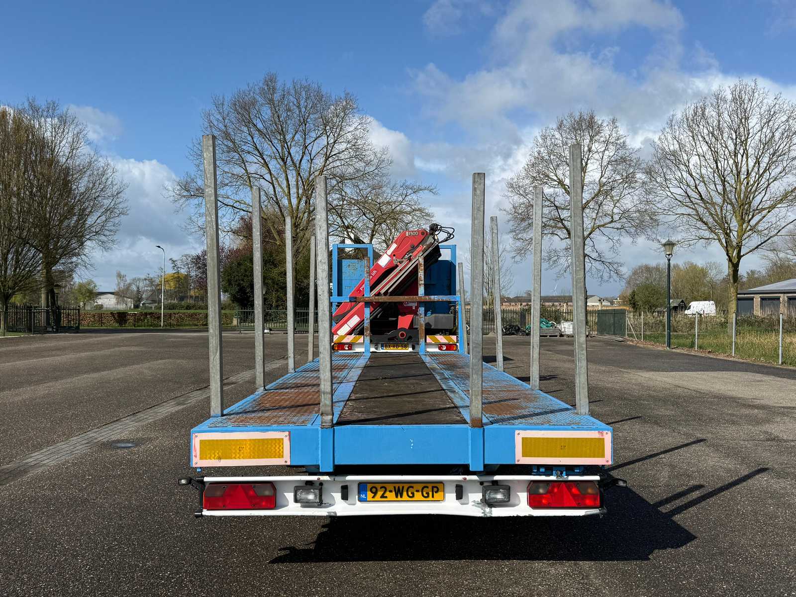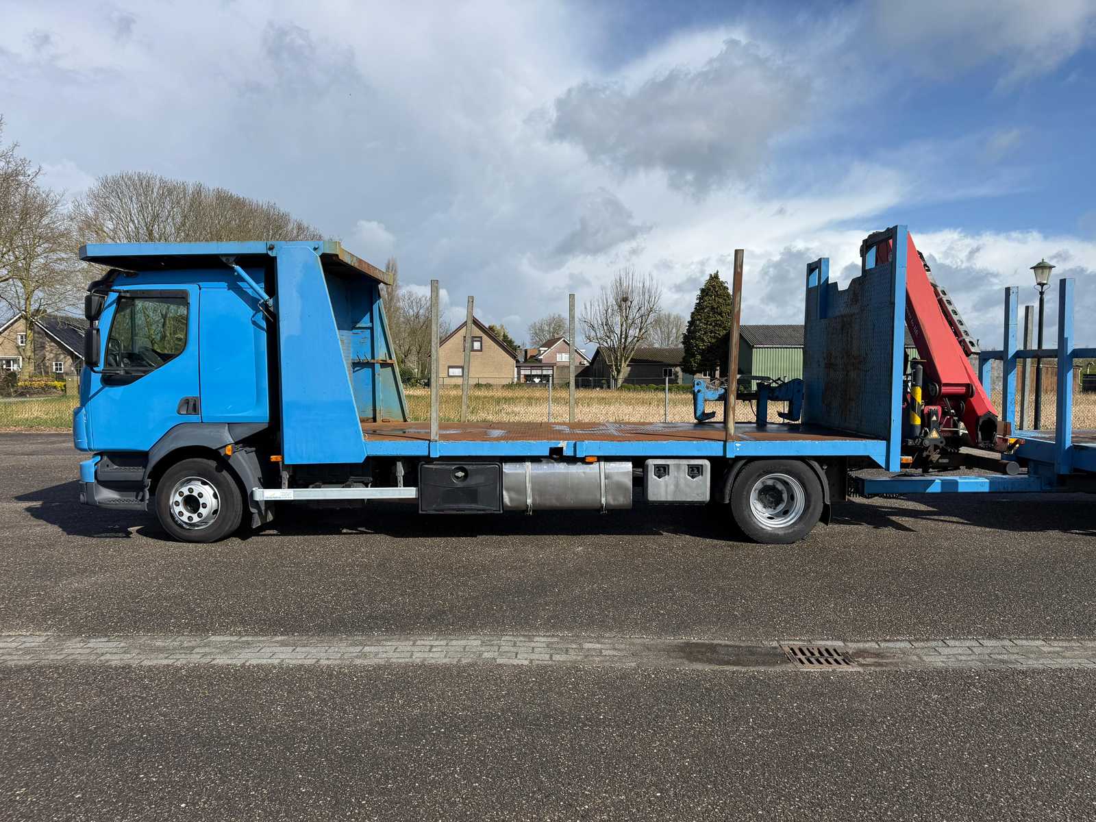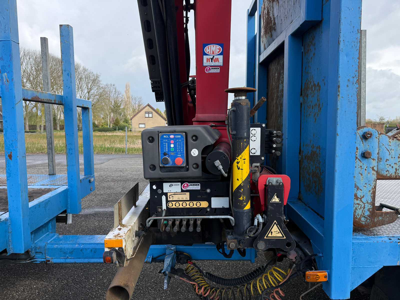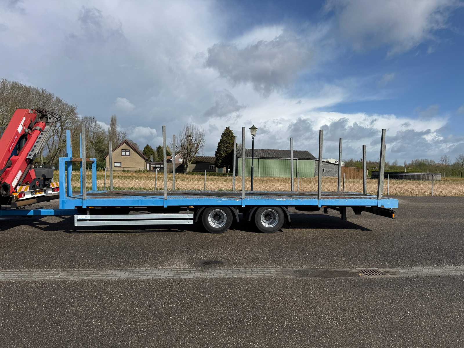 | Description | Equipped with: HMF 1300 Truck-mounted crane with 2x hydraulic support legs, (HMF 1300 K2, Year of Construction 2010, 2x extendable with rotator), 6 holes with four stanchions on box truck, 12x stanchions with holes on trailer, grab clamp for the crane (suitable for cars to clamp), double tank, storage boxes side, BPW Axles on trailer, engine brake |
