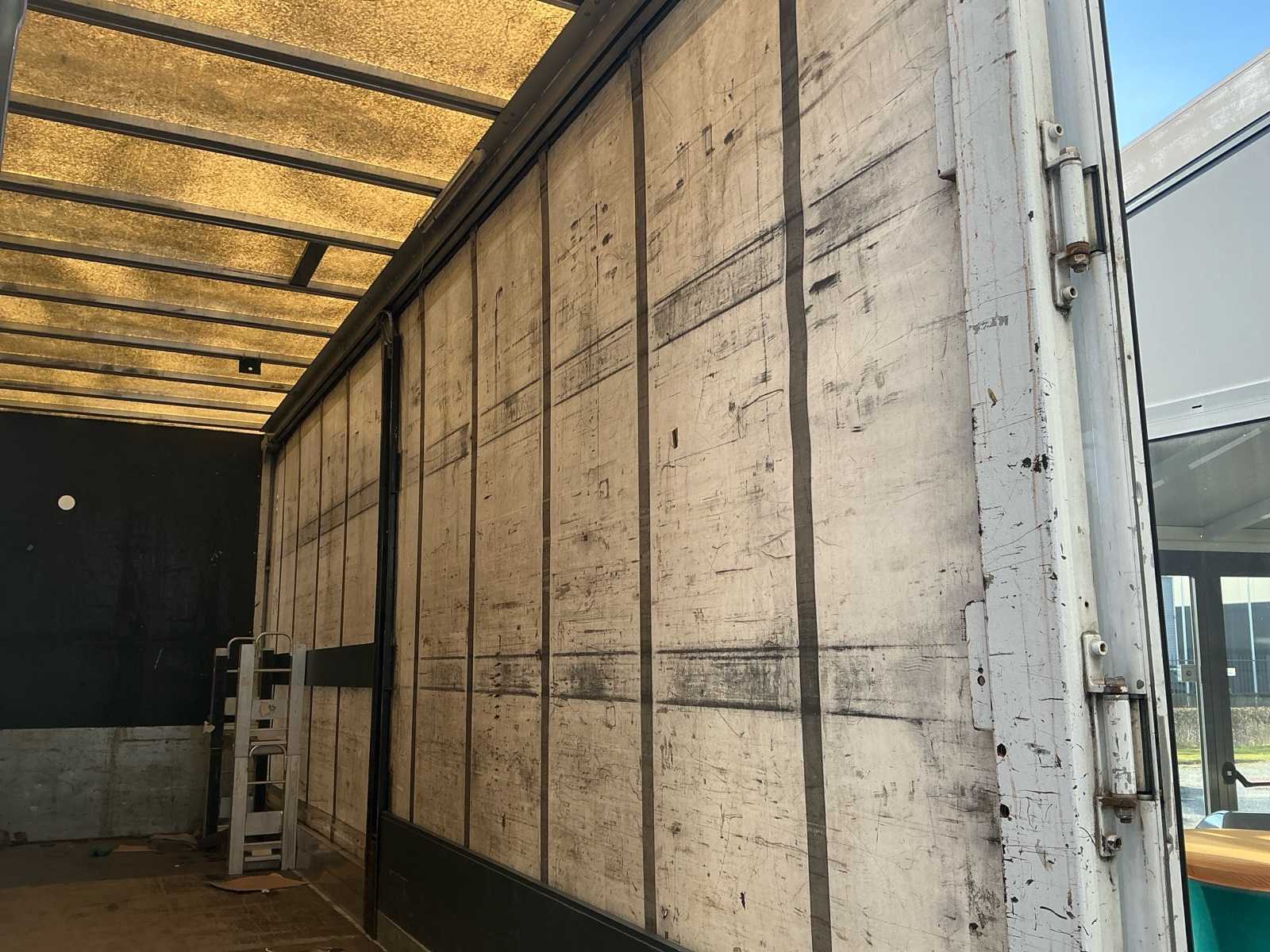 Equipped with: double air rear axle, tow bar, tarpaulins left and right, double rear door, 13 pin plug, width marking, radio, Isri driver’s seat, electric windows, electric mirrors, roof spoiler, IVECO