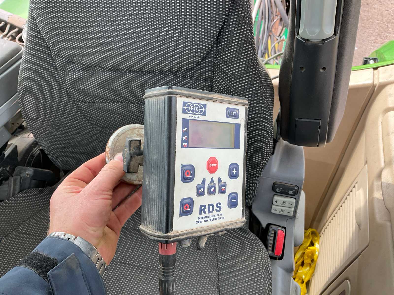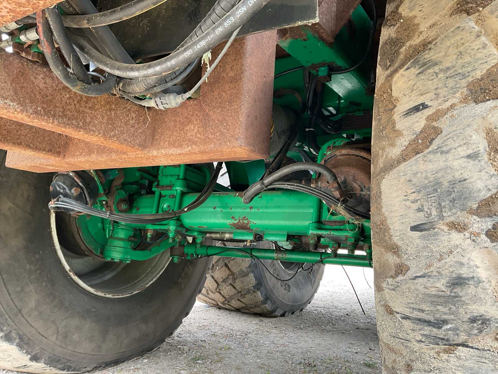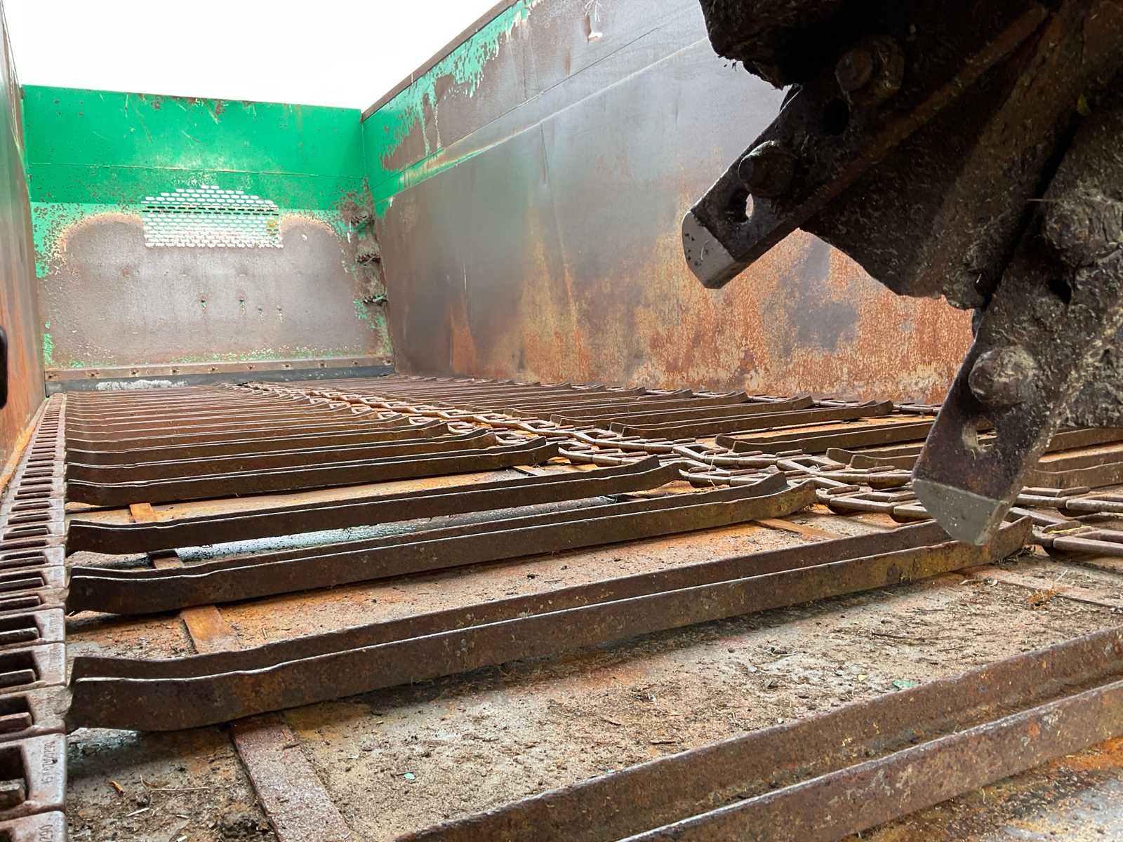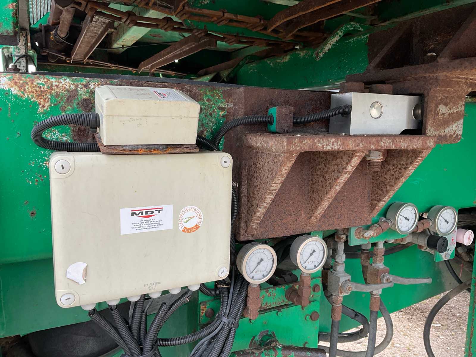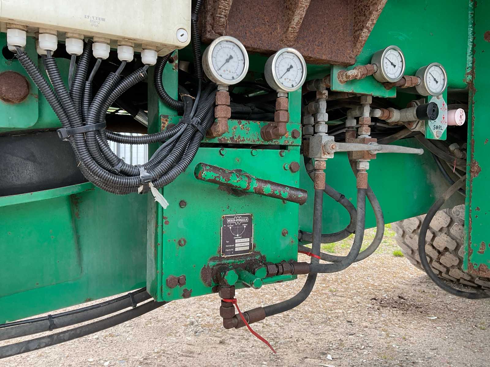 | Description | equipped with: electro-hydraulic control (load-sensing), MDT tuned weighing system, air pressure change system, speed monitoring, hydraulically forced steered rear axle, K80 hitch, automatic lubrication system, mechanical support leg, air brakes, suspension drawbar, hydraulic suspension, front lift axle, PTO driven spreading discs, hydraulic tailgate, hydraulic dosing slide, plastic bumpers, rear tow bar, scraper floor (HV100 heavy type replaced) (steering cylinder left rear defective, now fixed) |