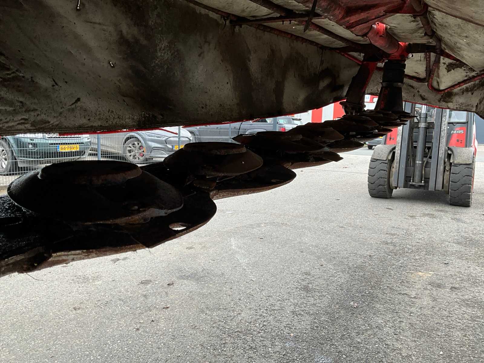 Equipped with 3-point connection; worn; 10 discs each 2 knives;