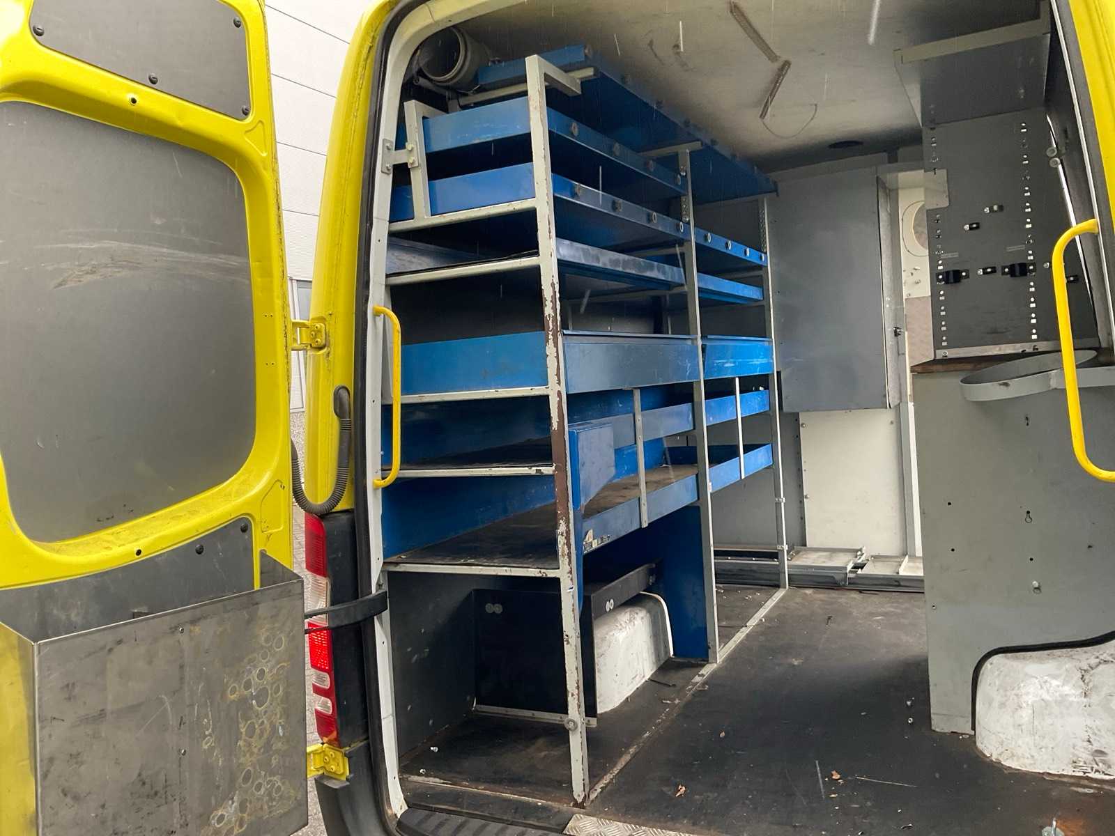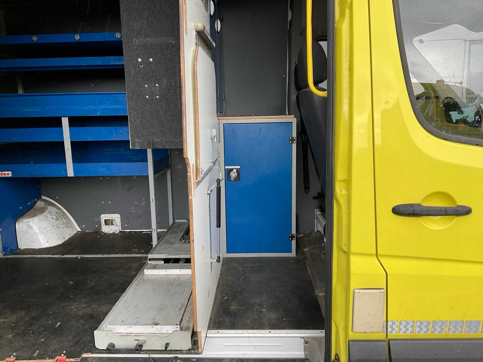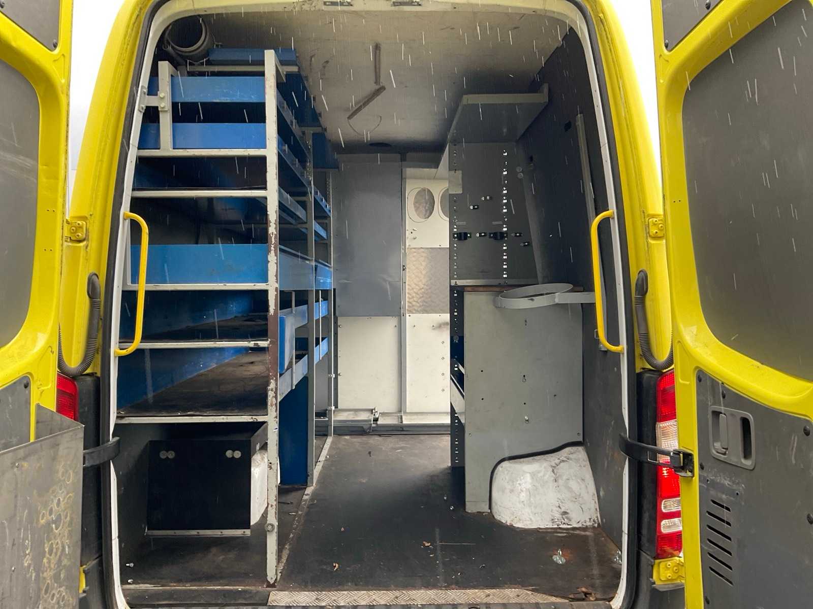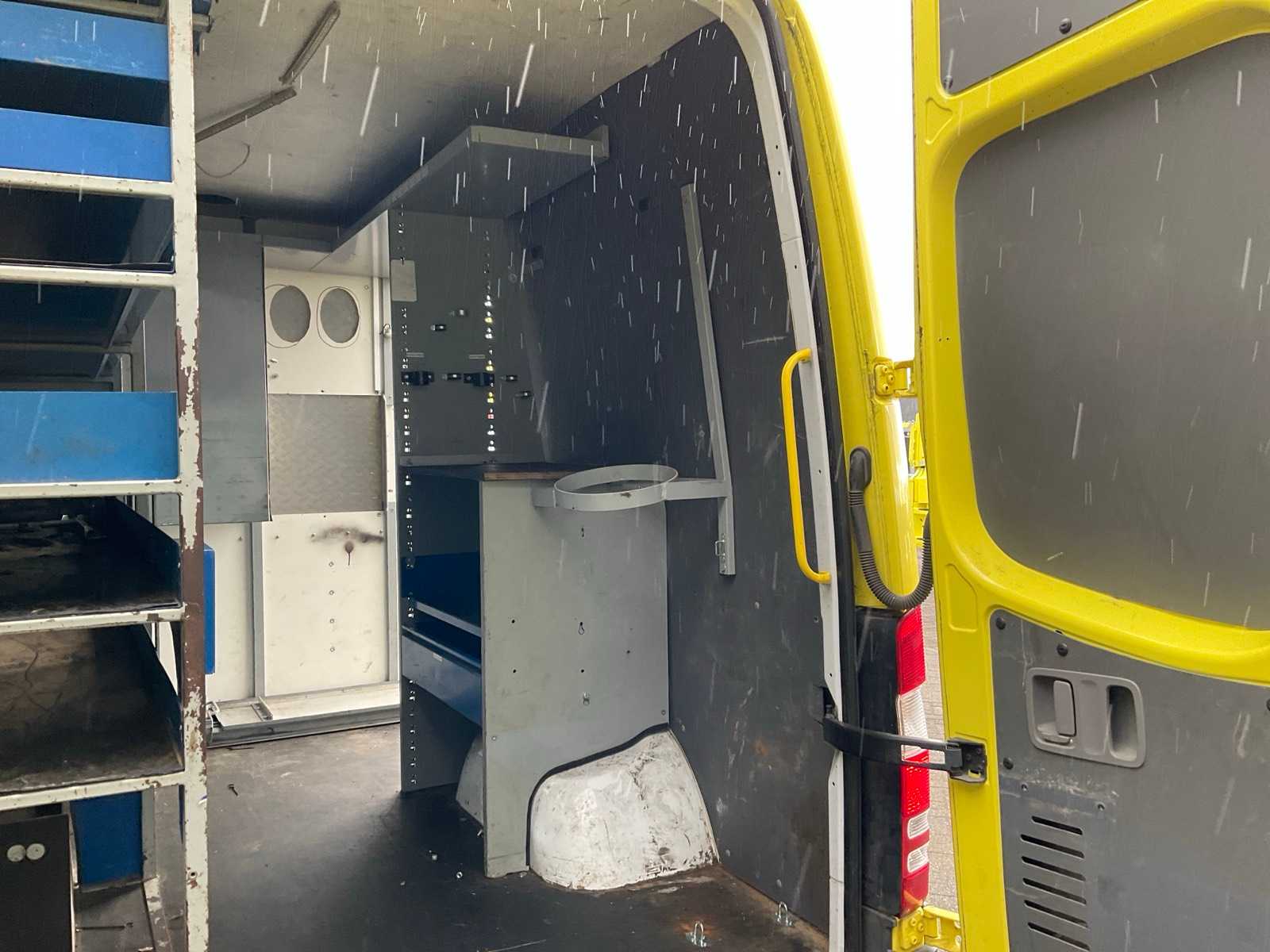 Equipped with: electric windows and mirrors, air conditioning, reversing camera, armrest, flashing lights, roof rack, work lights, ladder on the back, cargo box 275x180x185 cm.