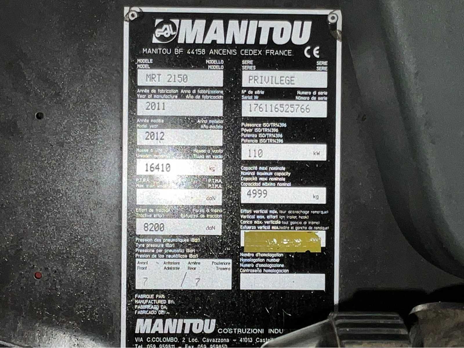 2011 Manitou MRT 2150 Privilege turbo Rotary telehandler
