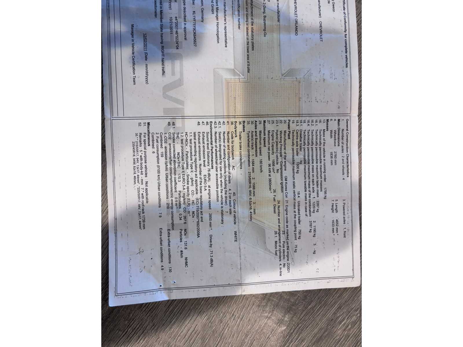 2012 Chevrolet Orlando Passenger Car