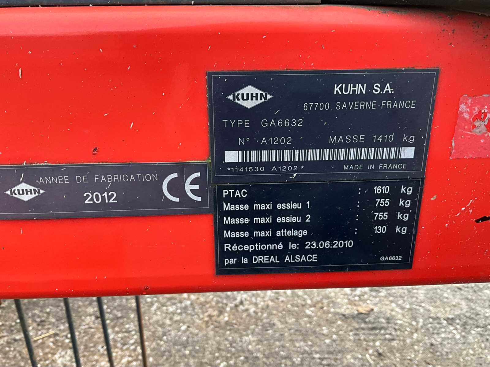2012 Kuhn GA 6632 Rake
