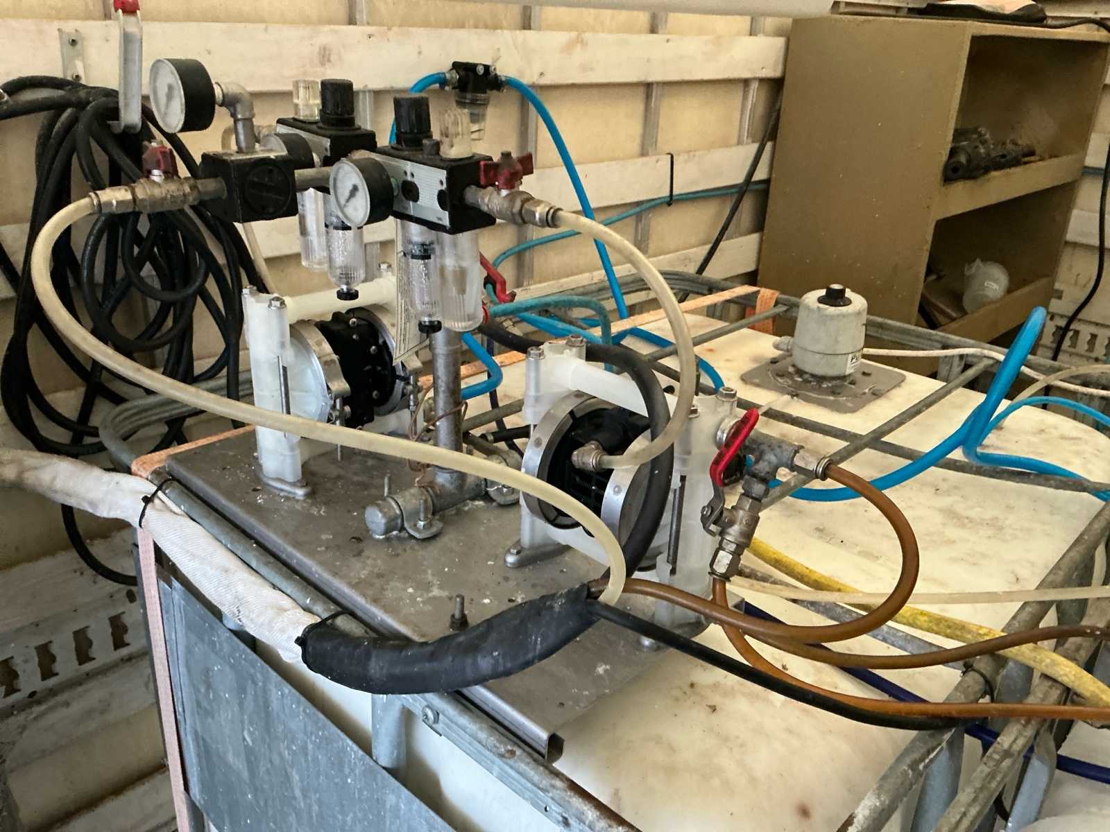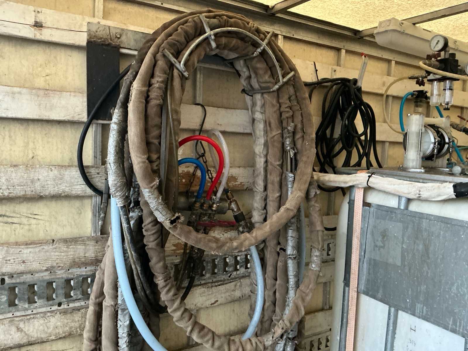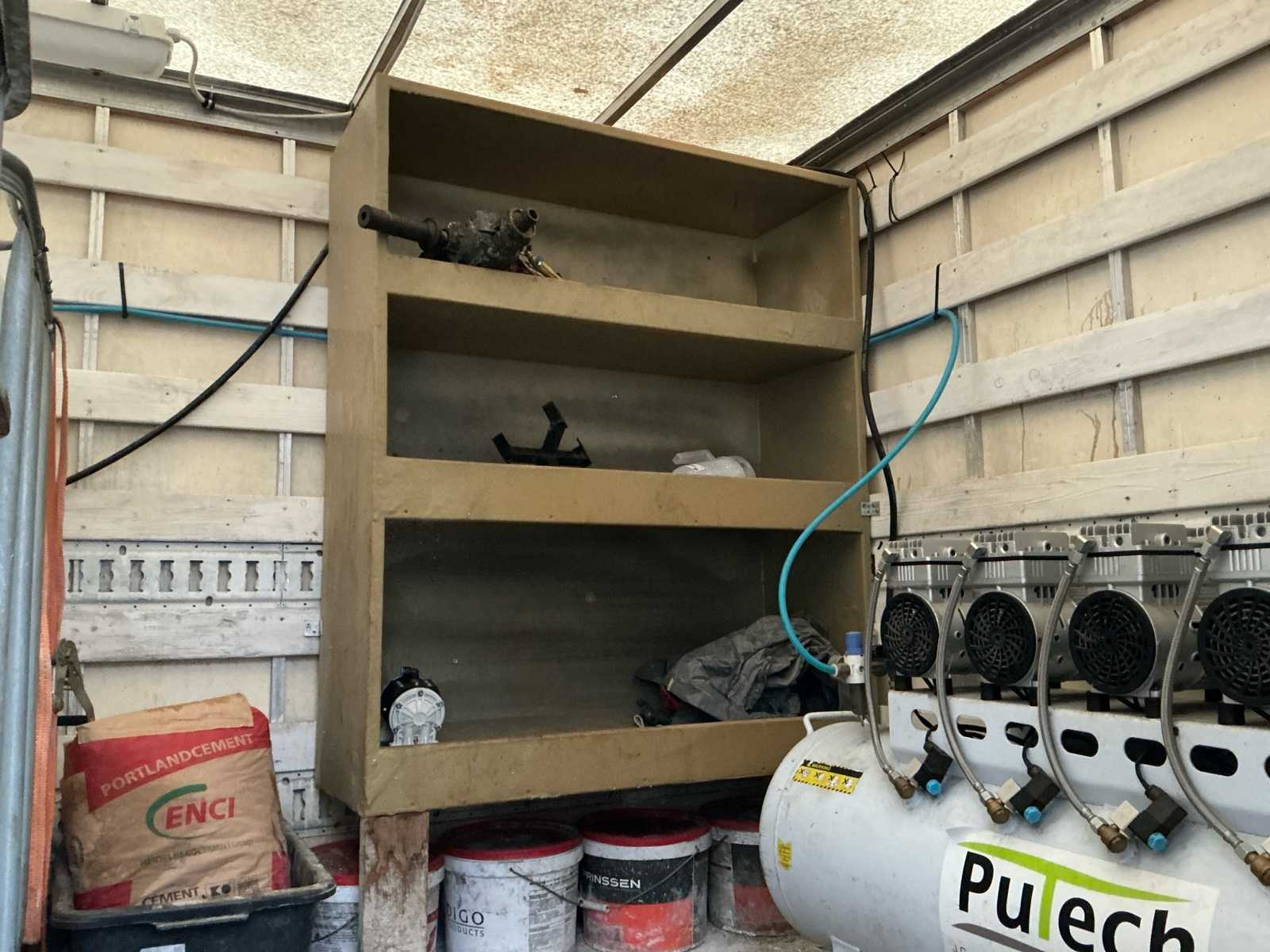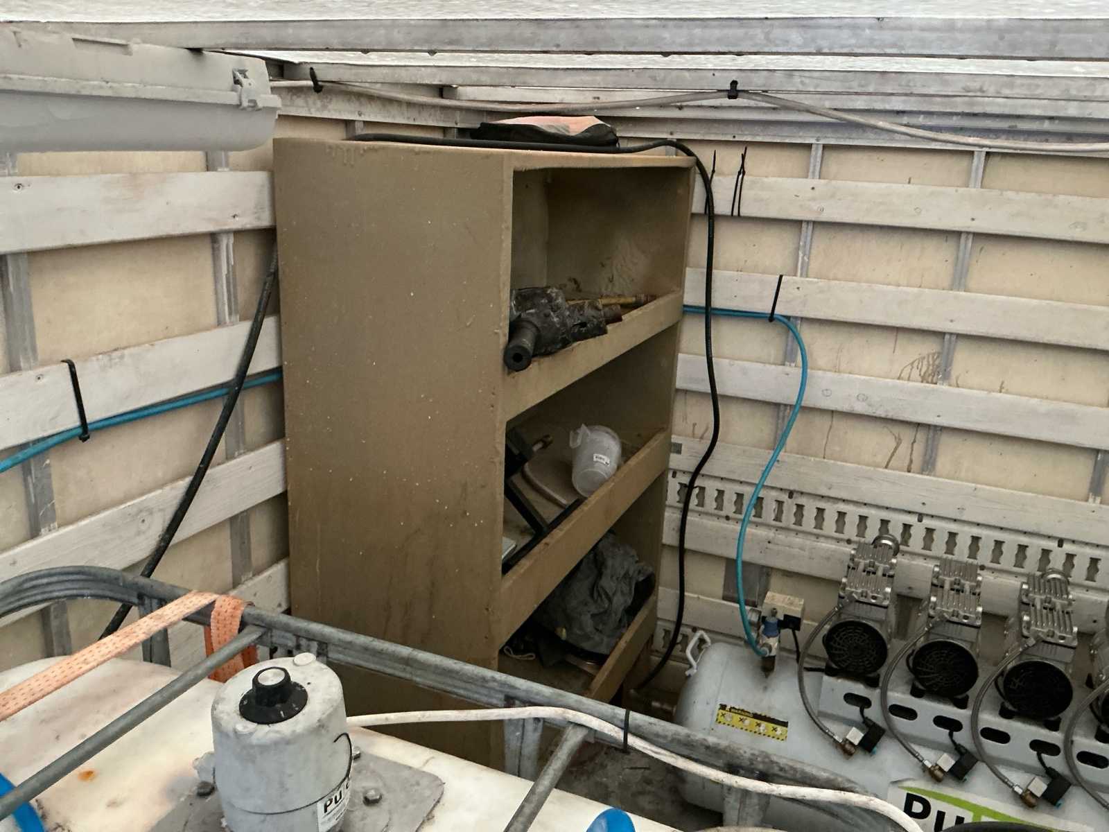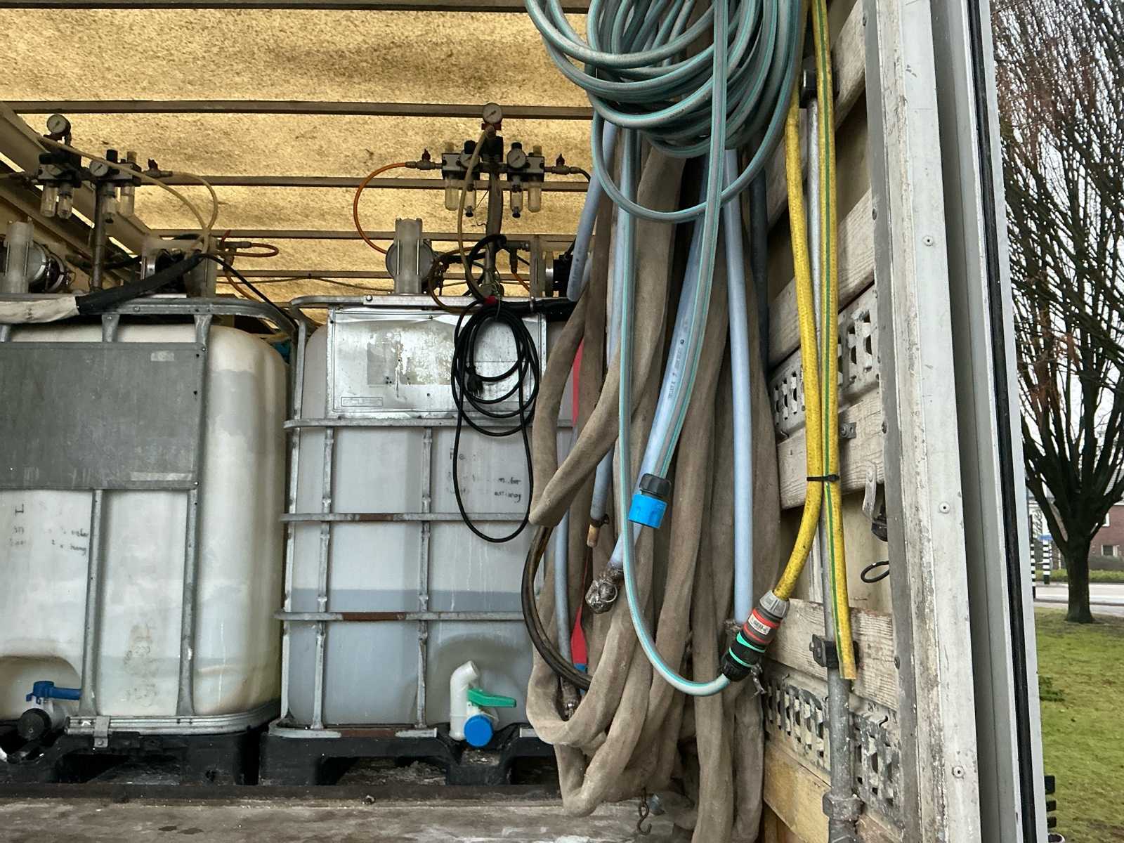 Equipped with: insulation machine (foam machine, compressor 2x inc 1000L with heating elements, flow regulator, 2 stroke package with spray gun spare wheel, 4 pumps, air gun), tow bar, roof spoiler, storage compartments in cargo area, lighting in cargo area, filter system, including ladders (3 parts, 2 parts, small ladder)