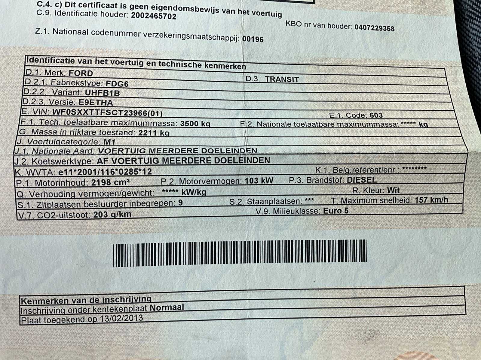 2013 Ford Transit Passenger transport up to 8+1