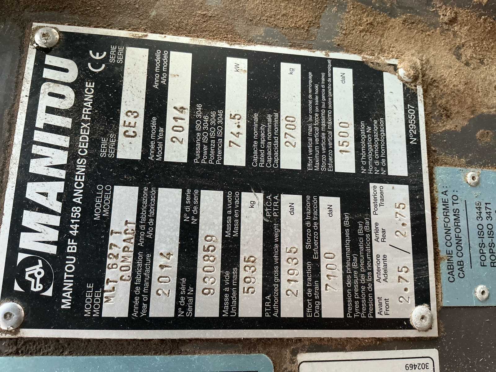 2014 Manitou MLT627T Compact Telehandler