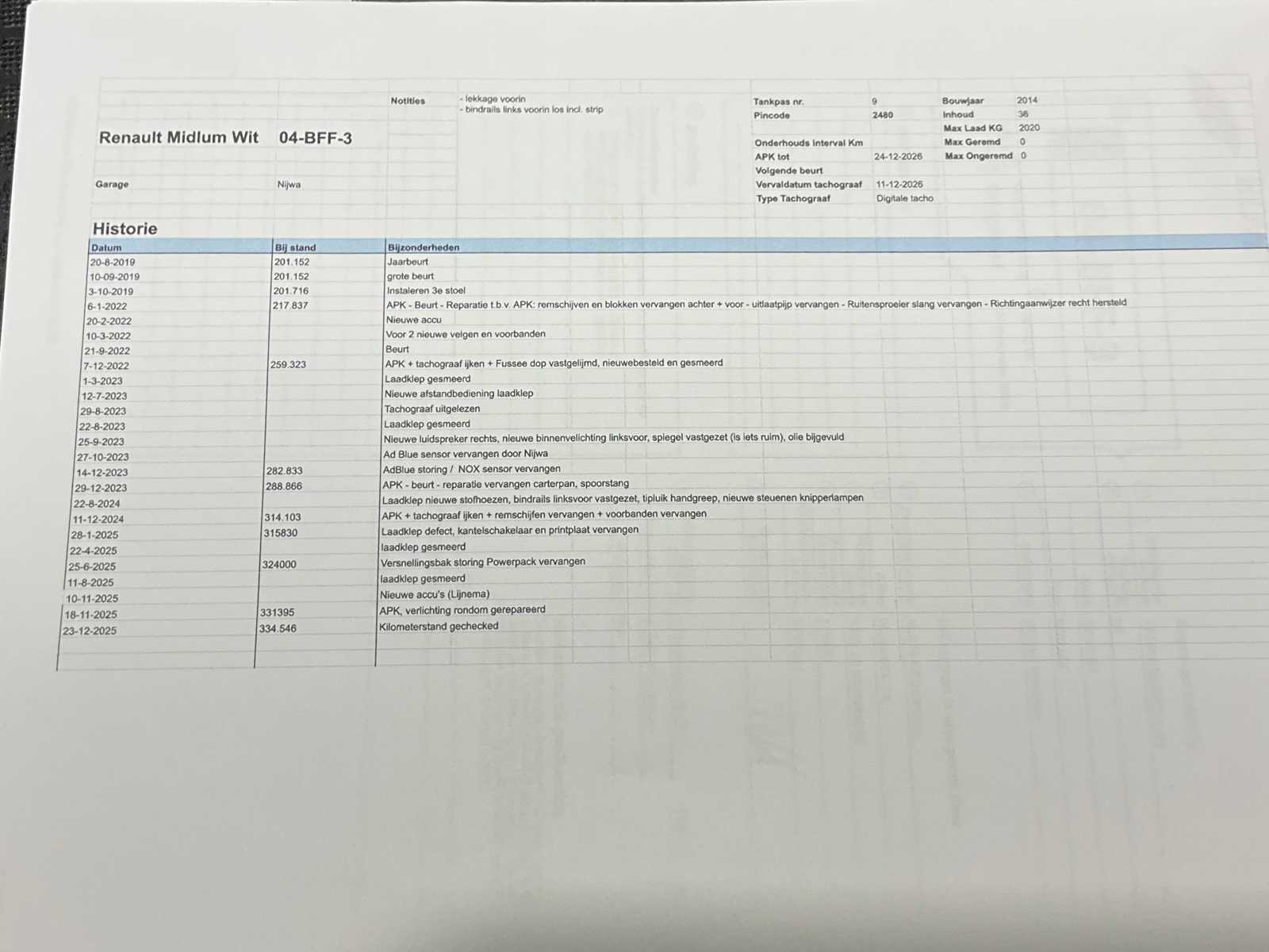 | Description | Equipped with: digital tachograph. |