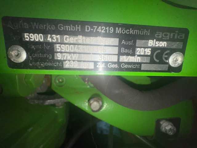 Agria Bison 5900 * hydrostatic drive * stepless gears * Briggs and Stratton 1-cylinder petrol engine * 2100 series * 420 cc * 13 hp * 9.7 kW * Wheels 23×8.50-12 * year of construction 2015 * Weight 239 kg.