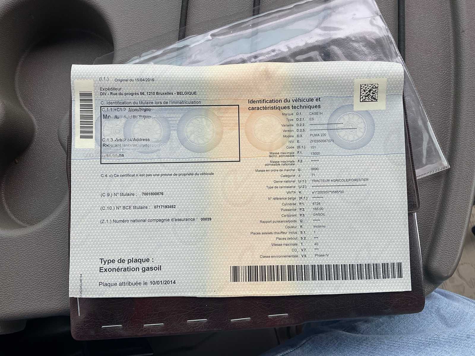 2016 Case IH Puma 220 CVX 4WD Agricultural Tractor