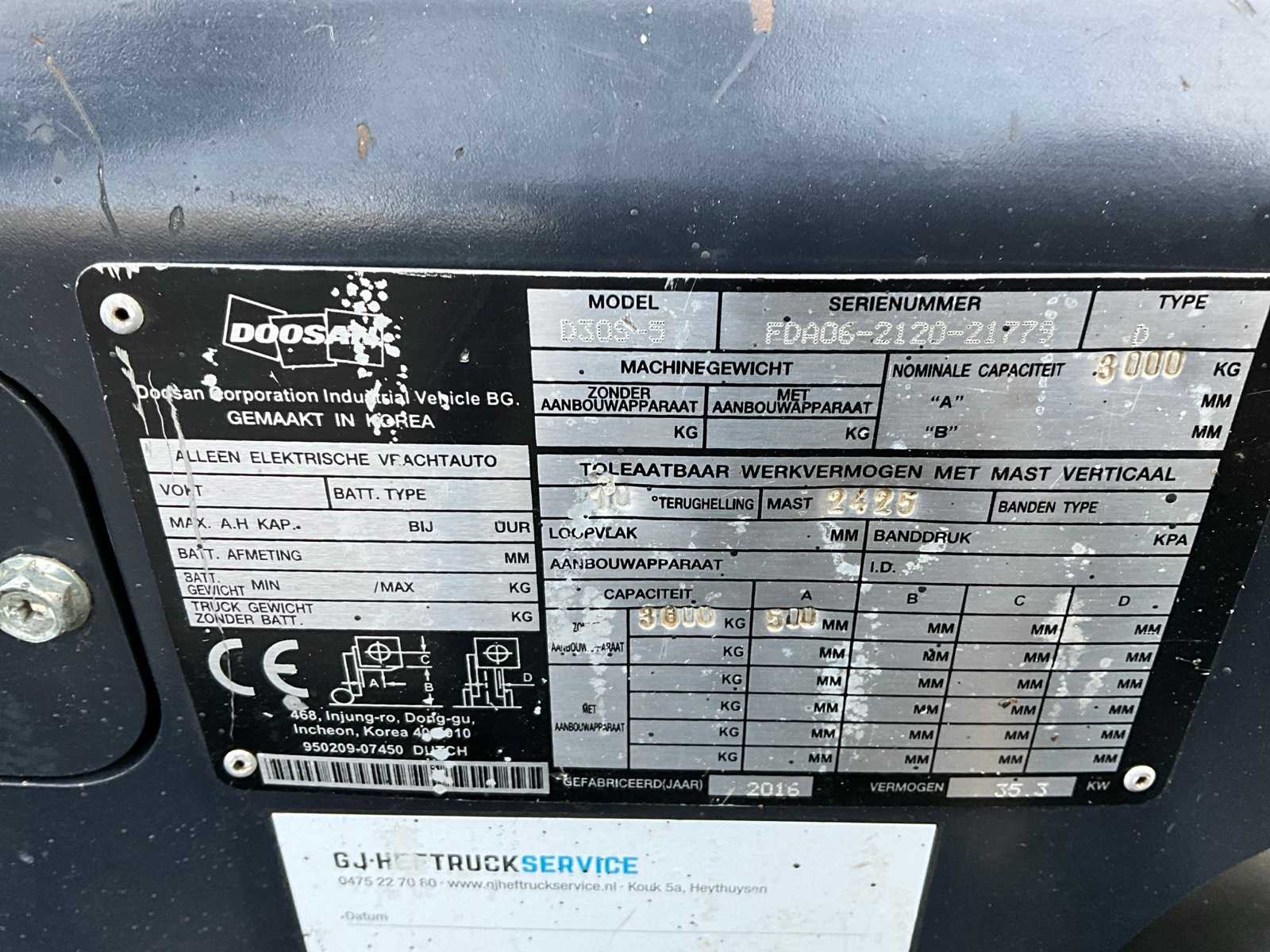 2016 Doosan D30S-5 Forklift