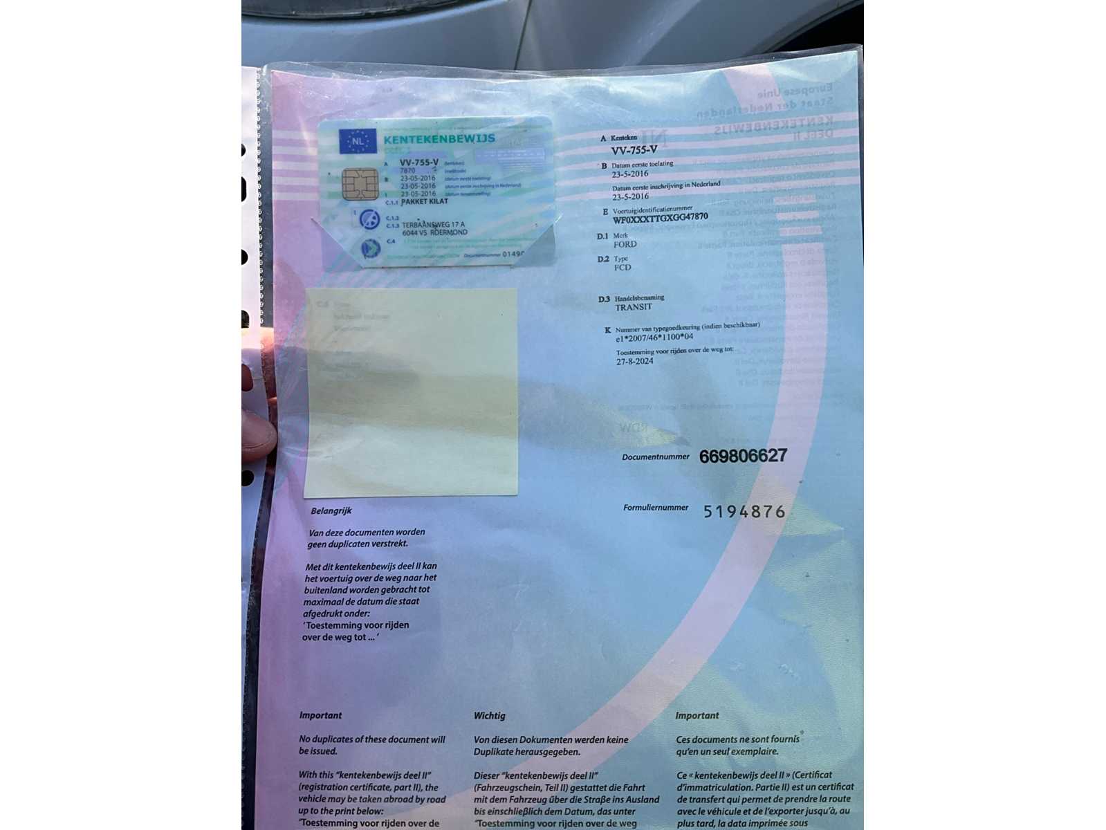 | Description | On-board documents present: registration certificate part I and II |