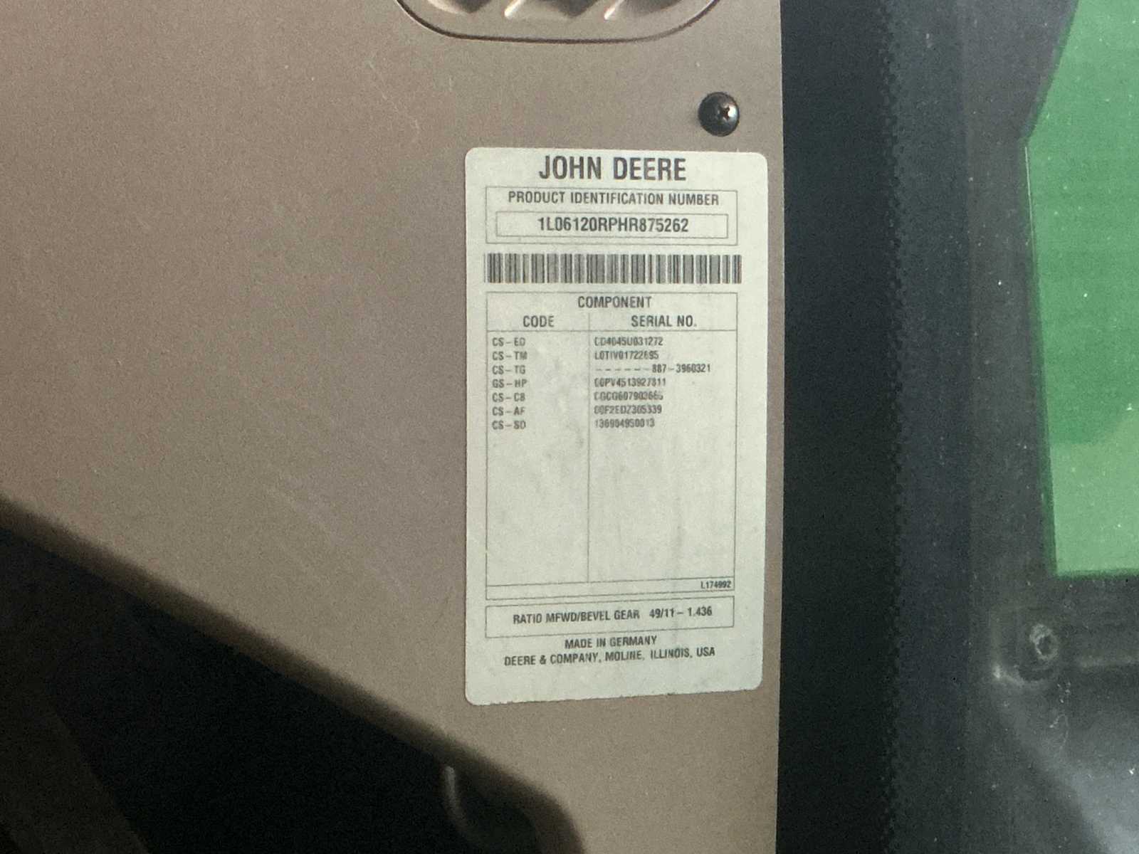 2017 John deere 6120R Four wheel drive farm tractor