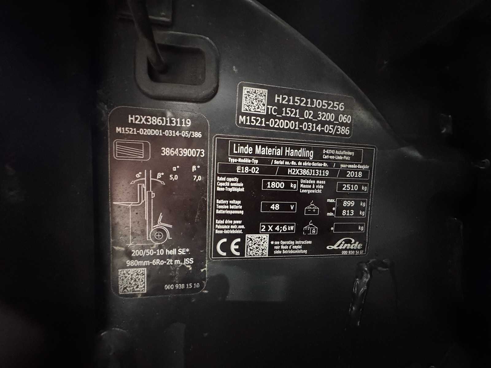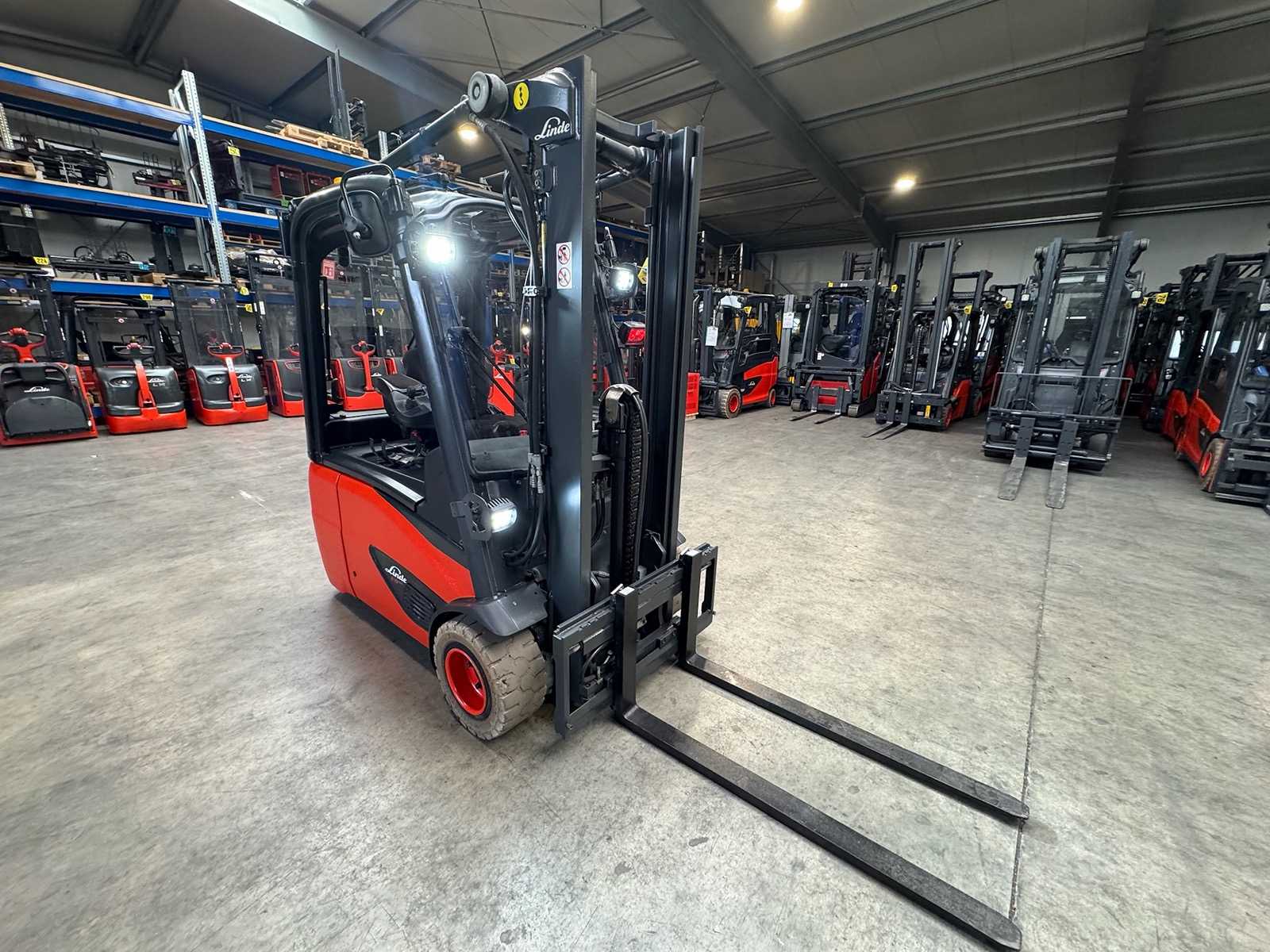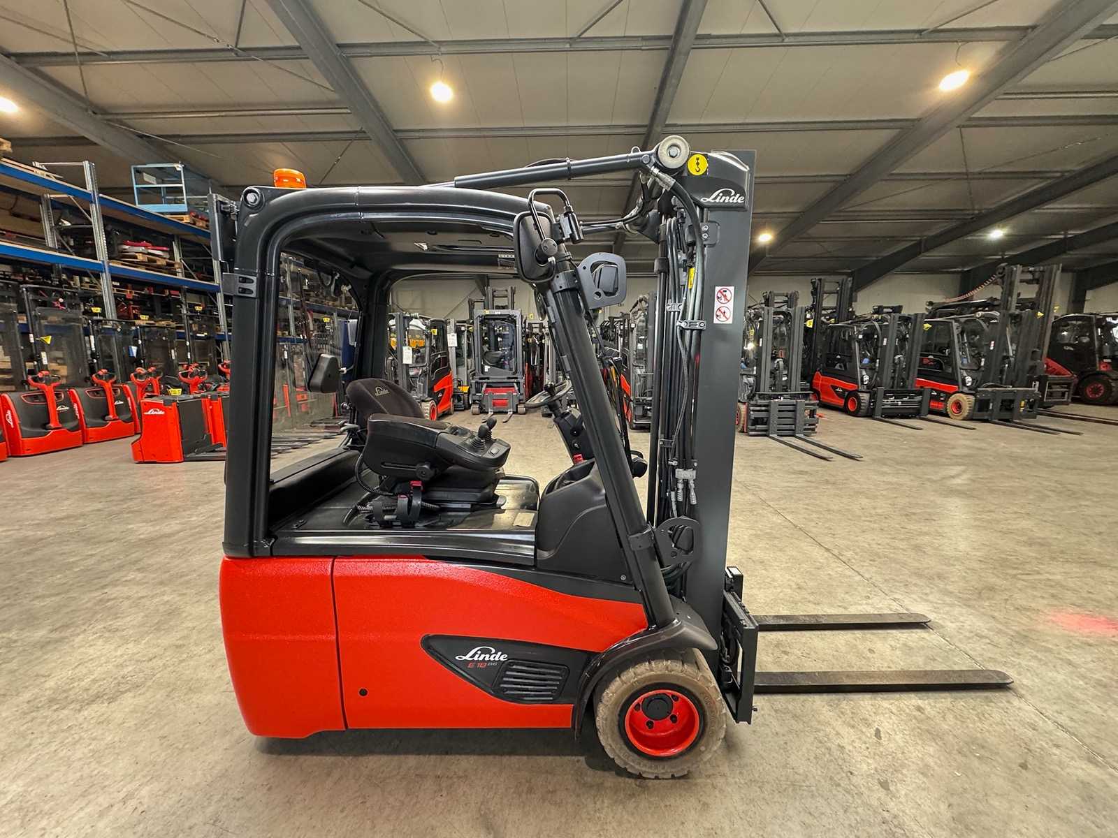 2018 Service+UVV 10/2026 Linde E18 EVO 1,800kg Duplex Free Lift Electric Forklift 4,950 Hours E20