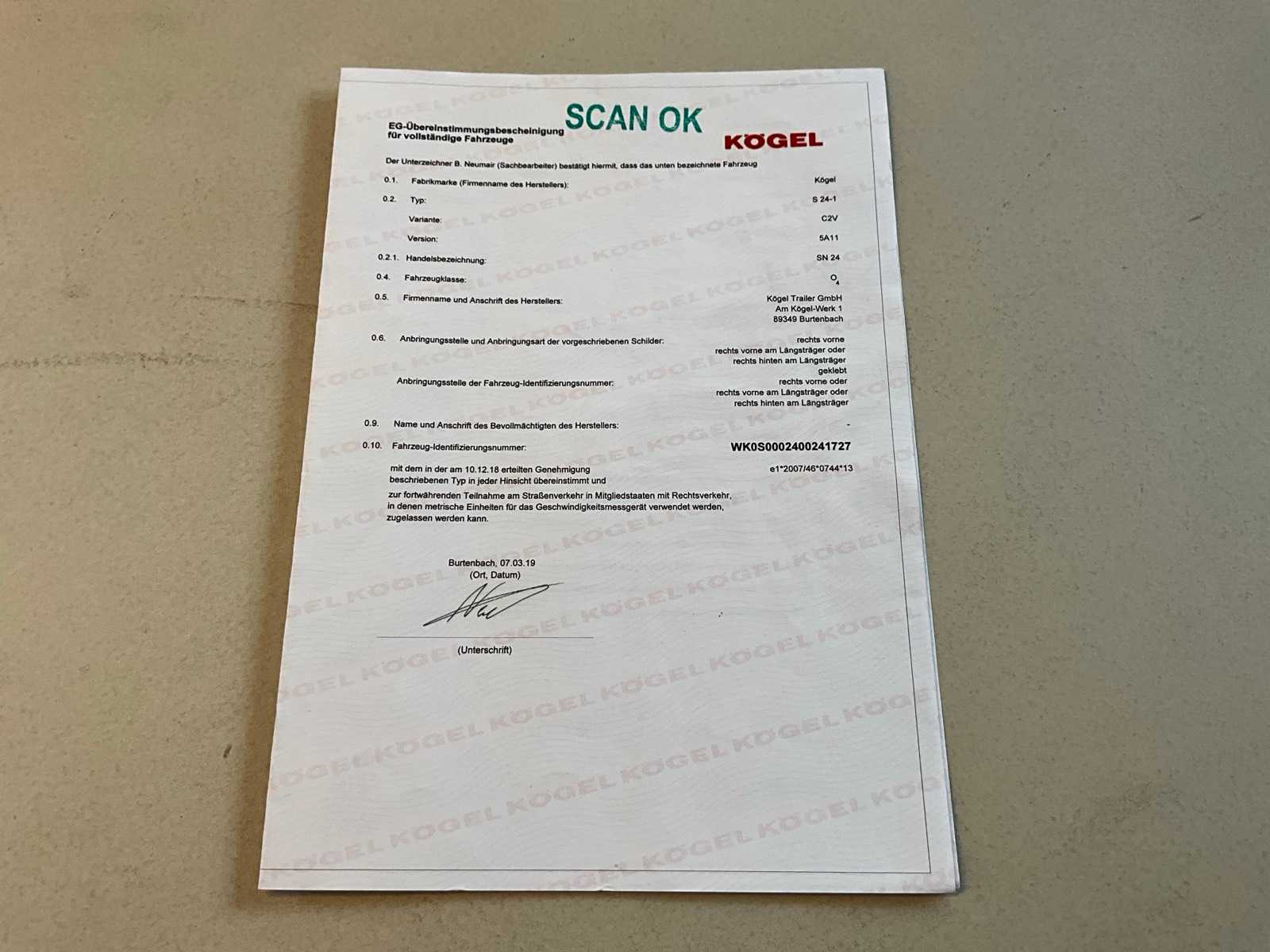 2019 KÖGEL SN 24 Curtainsider semi-trailer