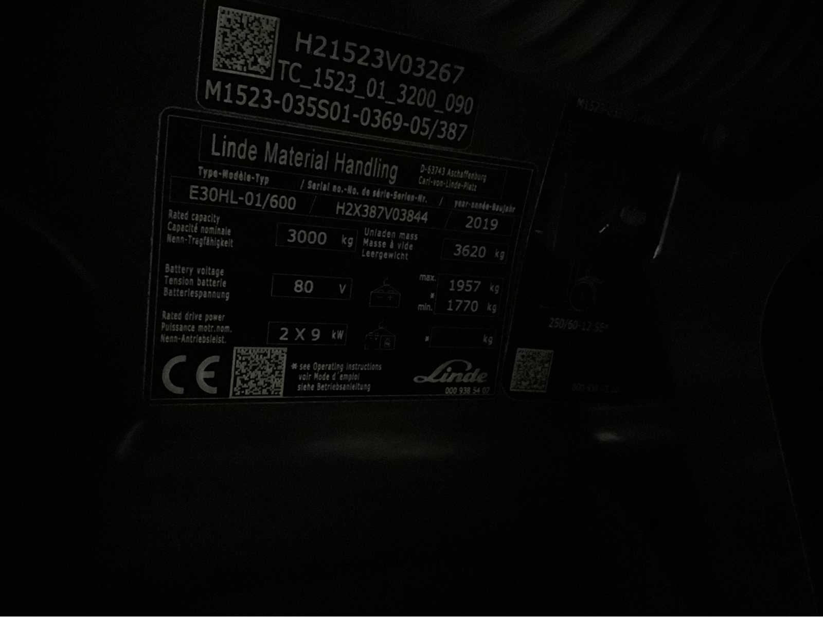 2019 Linde E30HL-01/600 3000KG Spoon Adjuster Battery 2023 Forklift