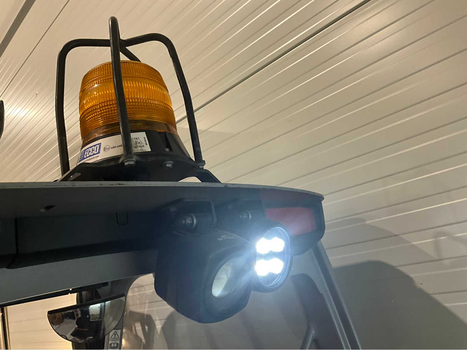 Extra options : All around lighting, blue spot front and rear, Non-marking tires, joy stick, beacon, fire extinguisher