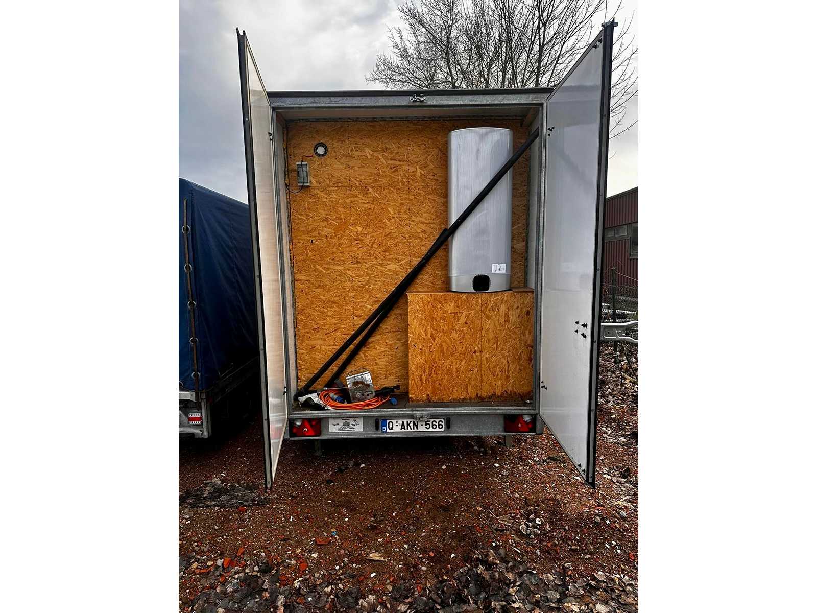 Closed trailer. Currently furnished as a mobile bathroom. Very neat! Only used a few times. Immediately usable to use on a construction site!