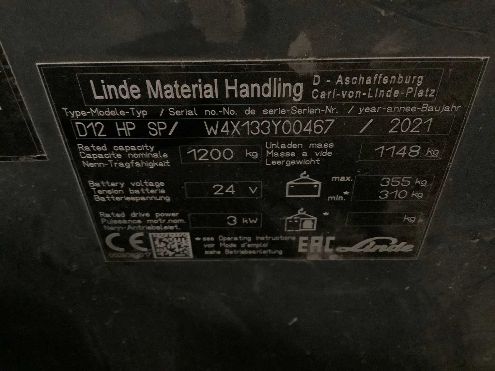 2021 Linde D12 HP SP Cart Stacker