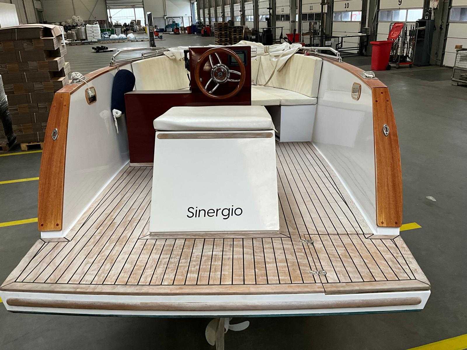 | Description | Name: Sinergio Engine number: 657 903 – DP6E1L 90008 Maximum power (ISO 8665): 6.0 kW Battery model: Epropulsion E175 Battery capacity: 48V / 175Ah Maximum number of passengers (PB): 6 Load and equipment (kg): 40.00 kg Maximum weight passengers + luggage (kg): 570.00 kg Maximum weight of basic equipment (kg): 40.00 kg Replacement/insurance value in 2022: EUR 40,000. Eco-boats developed for and on the Spanish Balearic Islands, but also very suitable for Dutch inland waterways, rivers, lakes and ponds. |