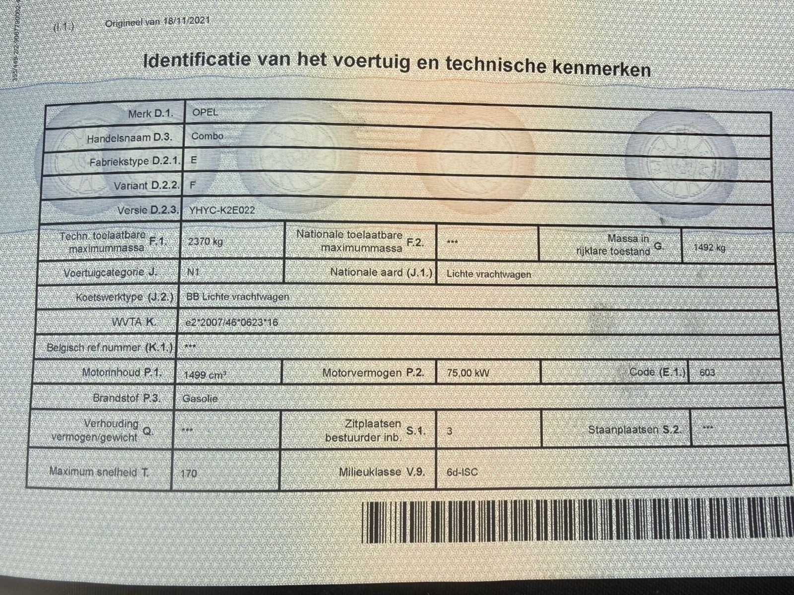| Description | Light cargo Opel Combo Cargo in L2 version (extra long model), first registration 18/11/2021. Equipped with the reliable 1.5 diesel engine (Euro 6d) and manual gearbox. Interior: Clean, neat, few signs of wear |