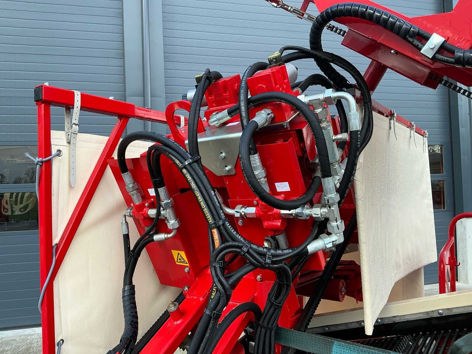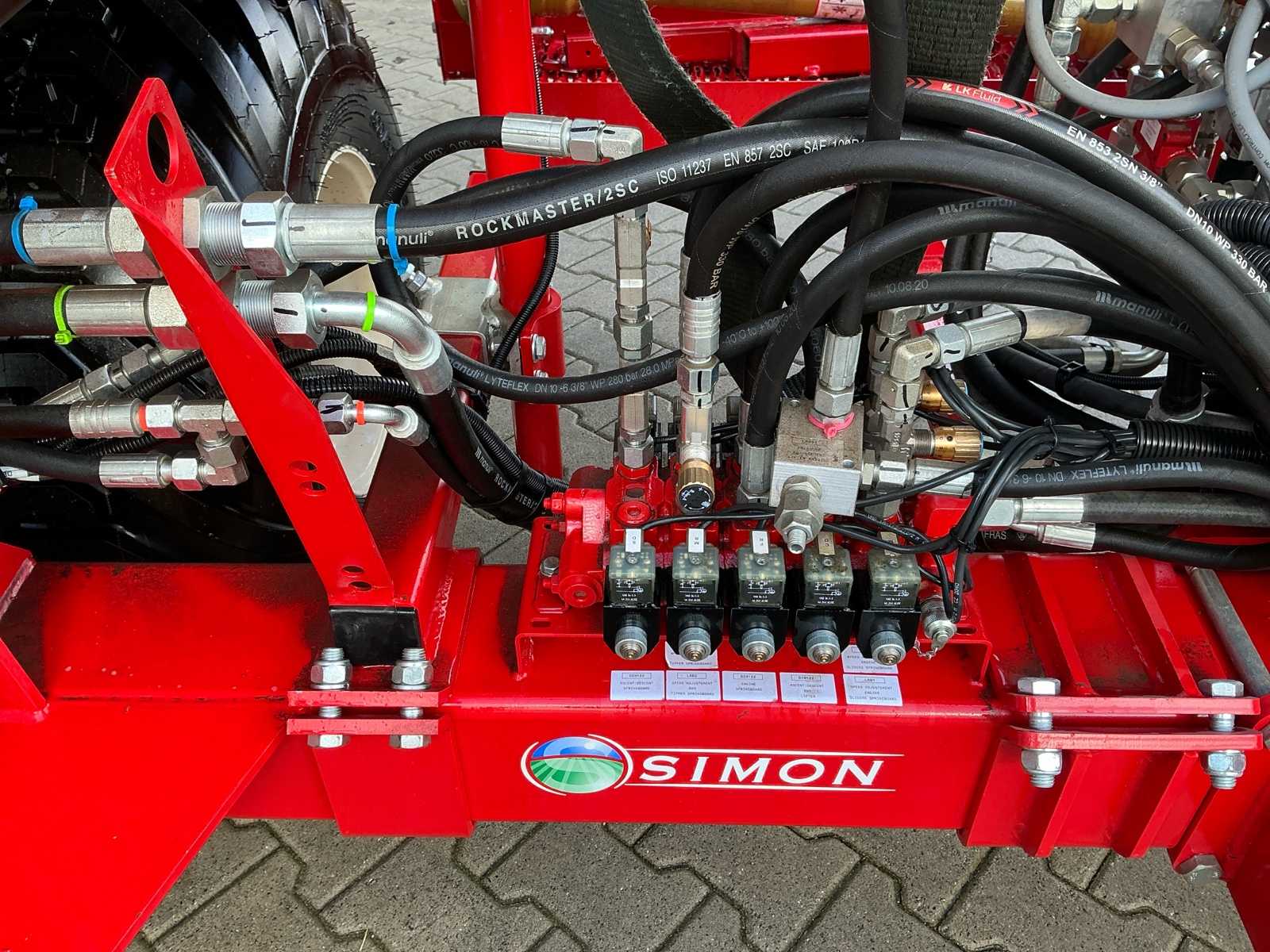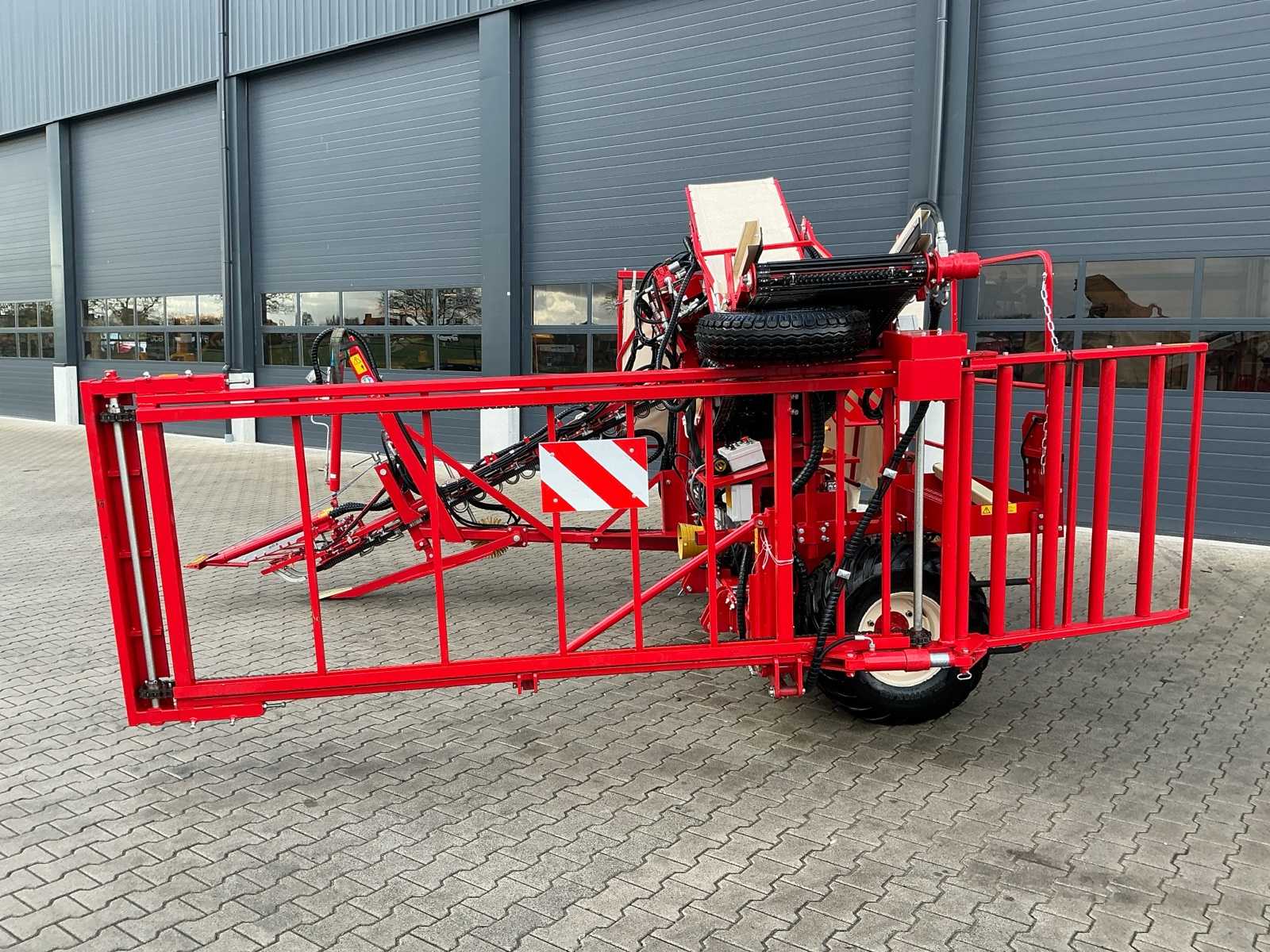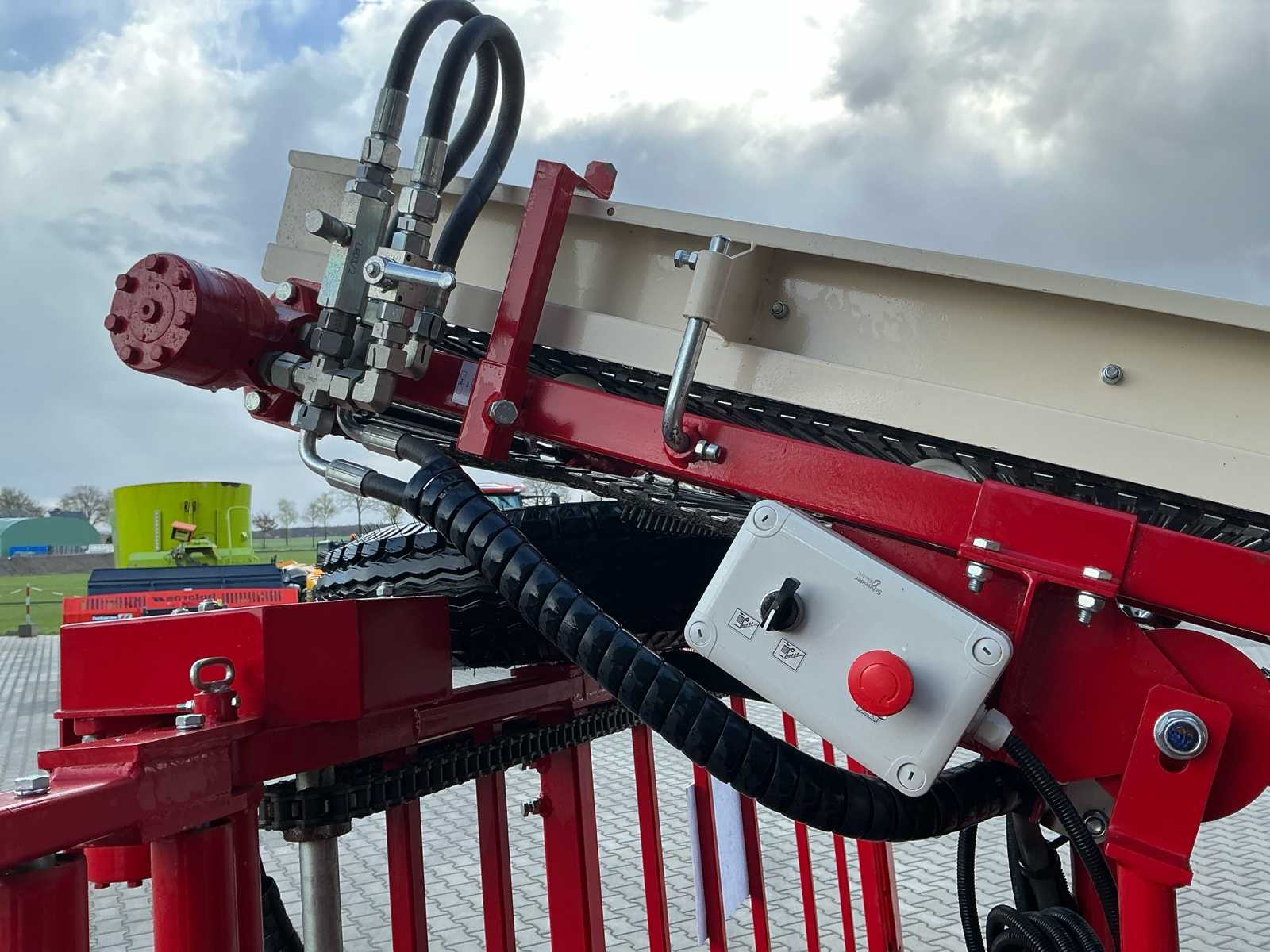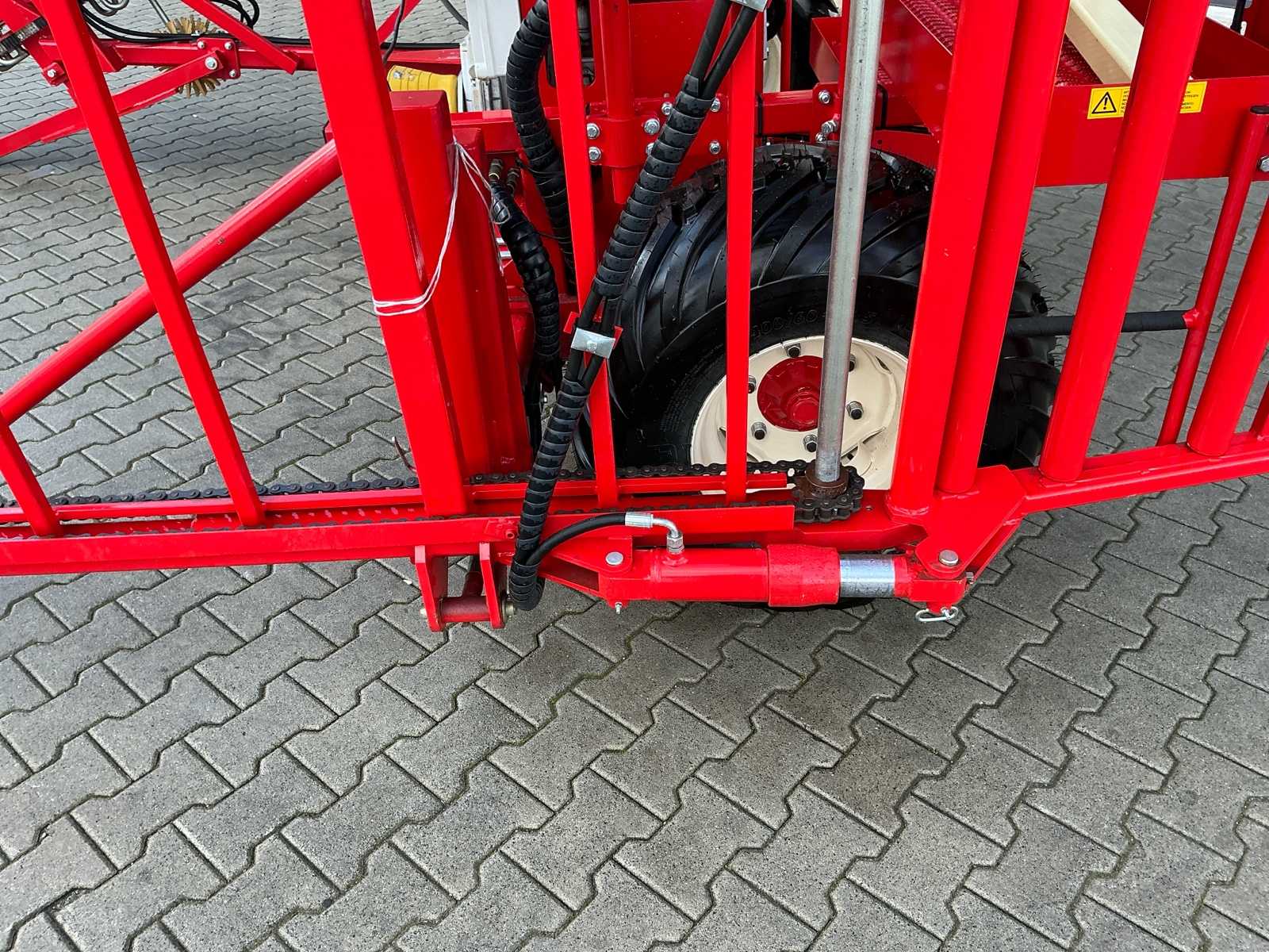 | Description | Equipped with: Simon S3P carrot harvester, unused, 1-row harvester is equipped with SIMON topper system and fully adjustable conveyor belts (forward/reverse and speed adjustable from cabin), lifting range up to 3,750 mm, low pressure belts and a maximum track width of 2,300 mm, haulm lifters, cleaning systems, tilting platform, cross belt (650 mm), PVC coated mats, cleaning options such as rubber stars and cleaning rollers, platform suitable for 2 boxes and hydraulically tiltable, additional options include automatic depth control, hydraulic drive system with double pump, electric emergency stop and full safety equipment with lighting, low pressure tires (RC 400/60 – 15.5, 10 PR, profile 478, 6-hole), diameter: 875 mm, width: 406 mm, electric emergency stop, 1 row, length 3.750 mm (axle to axle), SIMON topper system, conveyor belts: on/off + reversible and speed adjustable from cabin, Front cylinder and fixed attachment points, forced haulm removal, independent speed control of tyres |