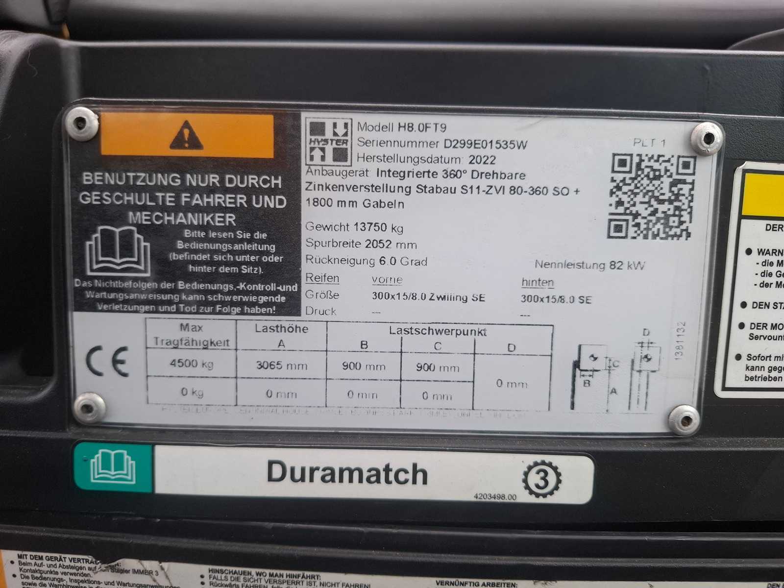 2022 Hyster H8.0FT9 Forklift