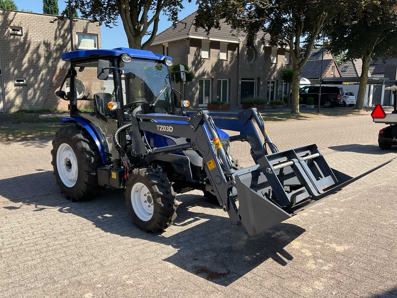 demo (41 hours), equipped with: TZ03D front loader, bucket (1500mm), spoon board, adjustable rear tow bar, rear pull bar, 2x double-acting hydraulic valve, 1x unpressurized rear return, hydraulic connection to front loader, manual quick coupler, wheel weights, Austrian license plate registration,