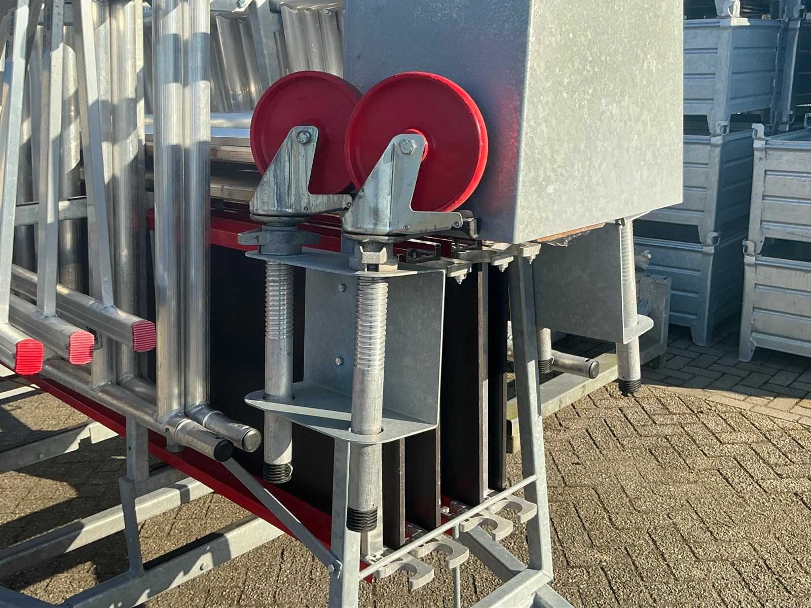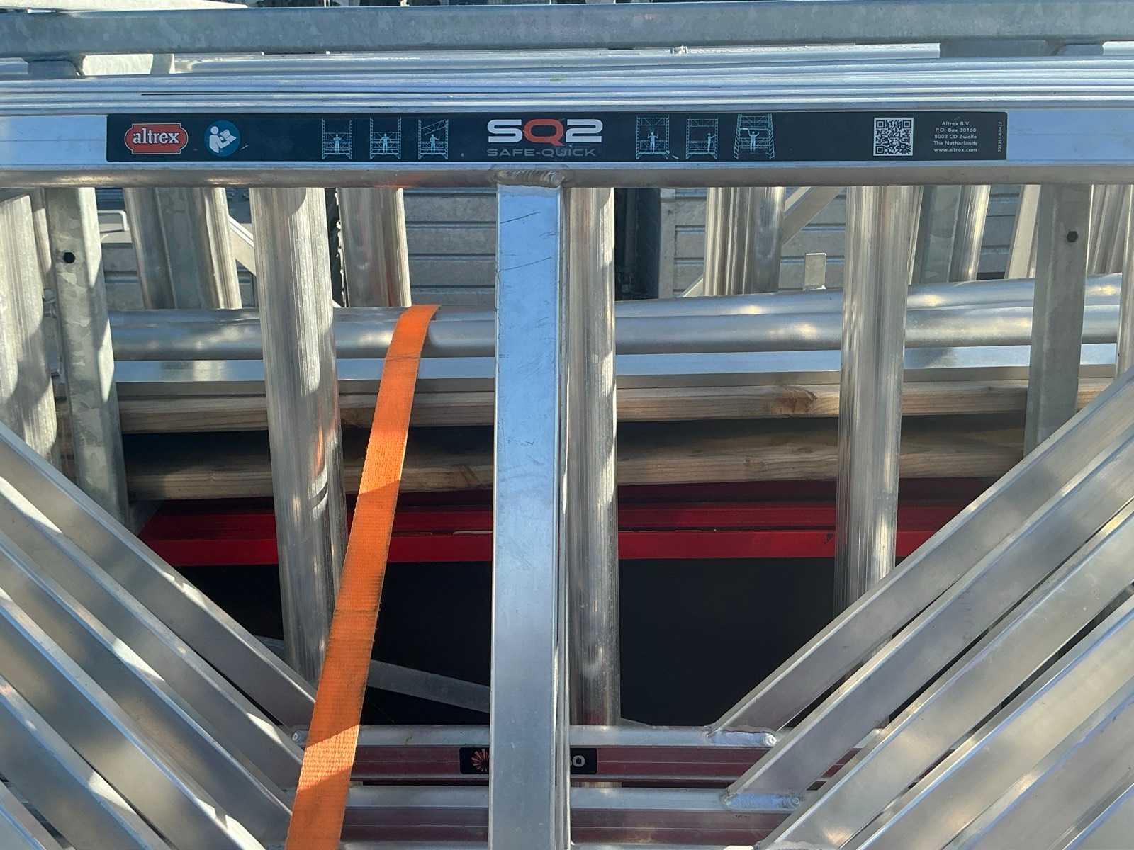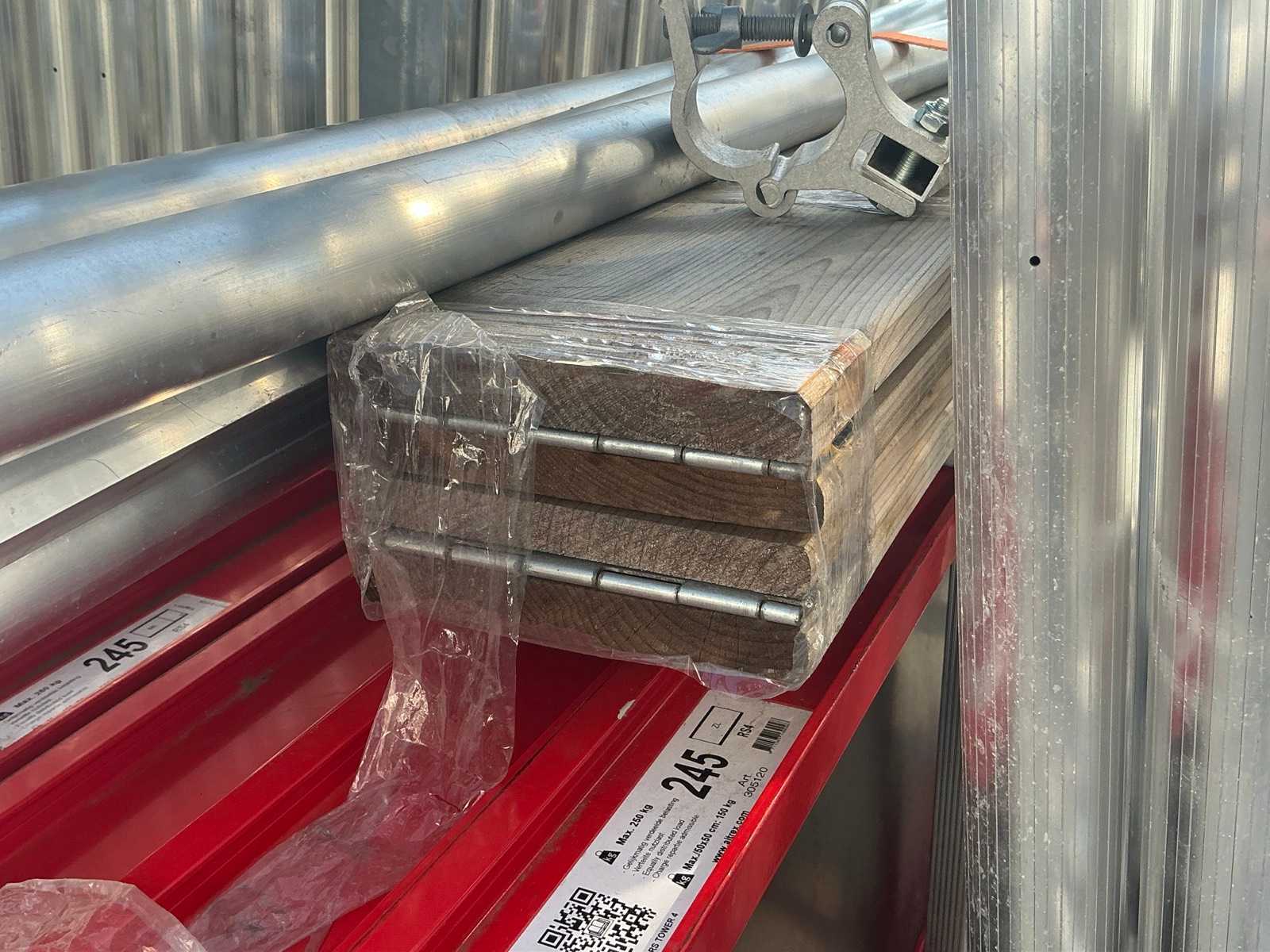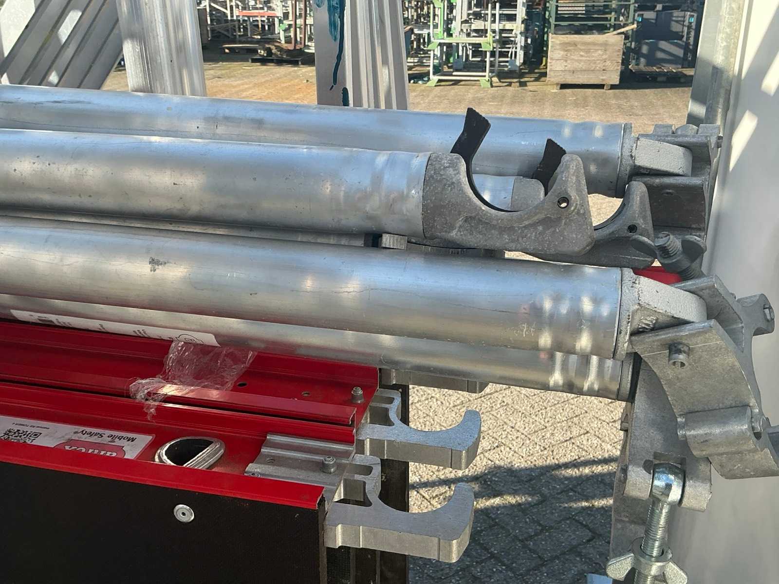 Altrex RS tower 4, 4 platforms, 4 wheels, 9 RS tower mounting frames, 4x stabilizer bar, 8x Safe Quick 2 RS tower 5. 10 meters working height total.