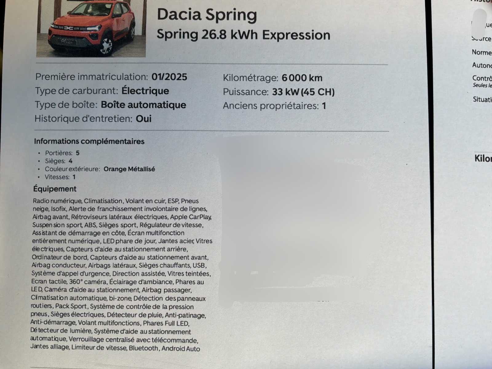 | Description | The equipment includes air conditioning, a multimedia system with touchscreen, Apple CarPlay and Android Auto, Bluetooth, an on-board computer, electric windows and mirrors, power steering, cruise control and speed limiter, as well as driving aids such as ABS, ESP, hill start assist, lane departure warning and parking sensors. The vehicle is also equipped with several safety features (front and side airbags, tyre pressure control, emergency call system), LED lighting and central locking with remote control. |