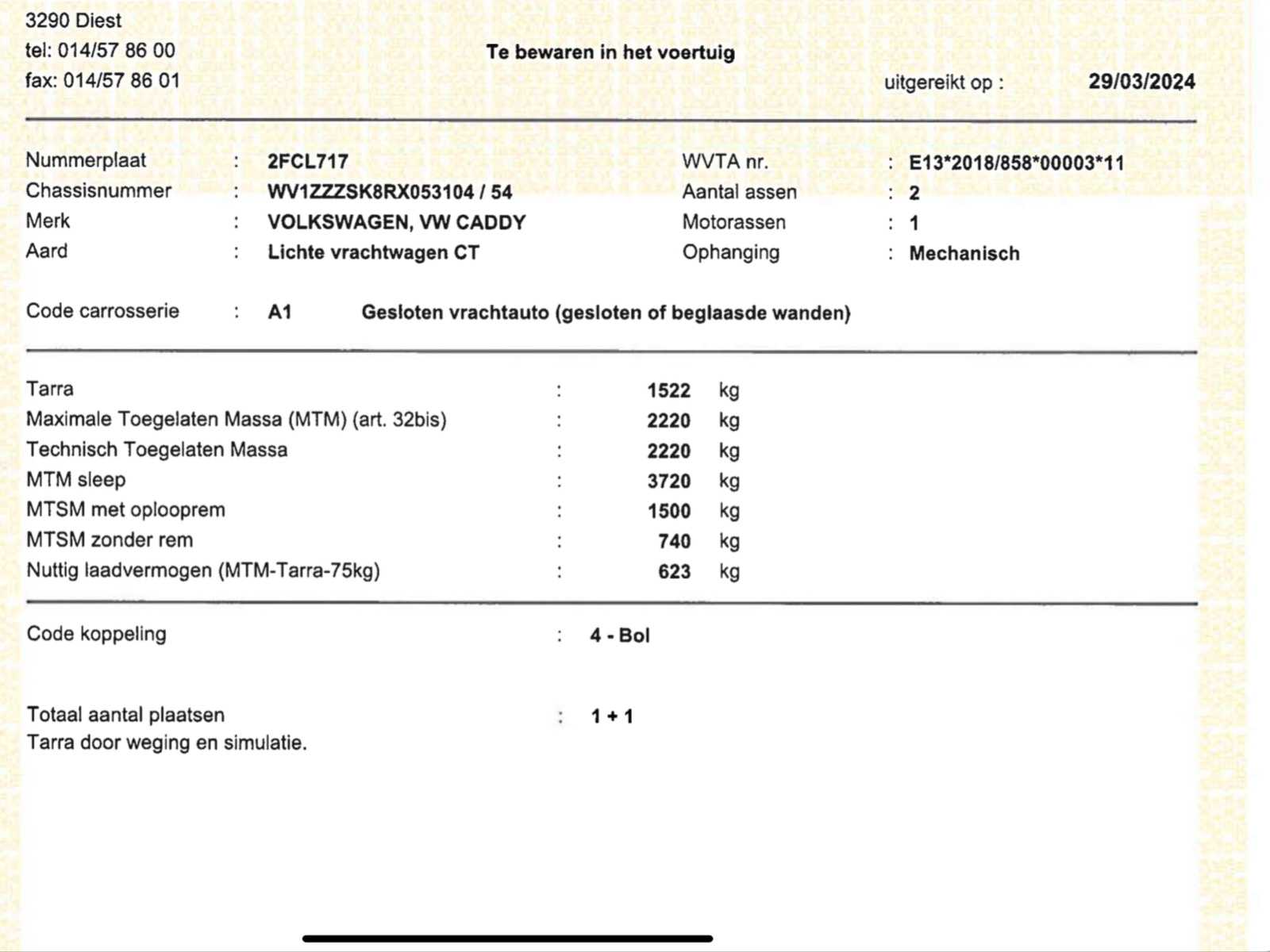 2024 VW Caddy light truck – 54000km – air-conditioned