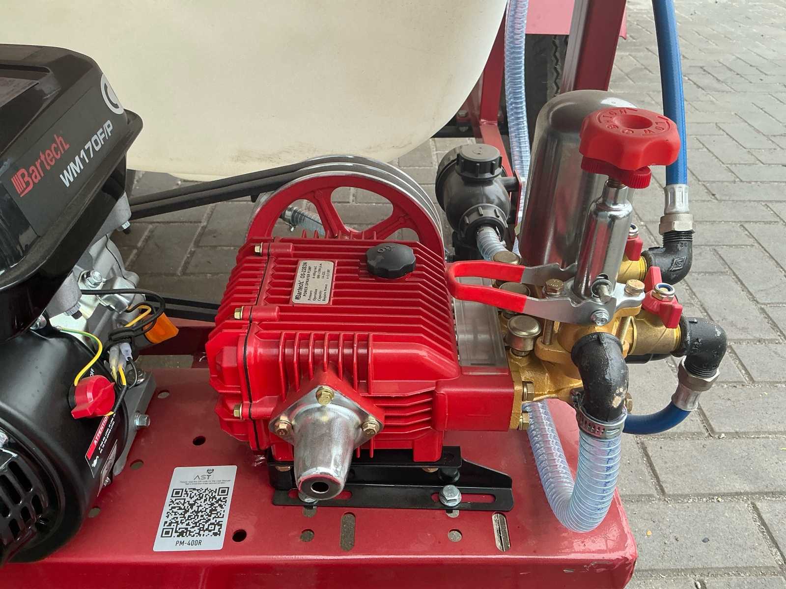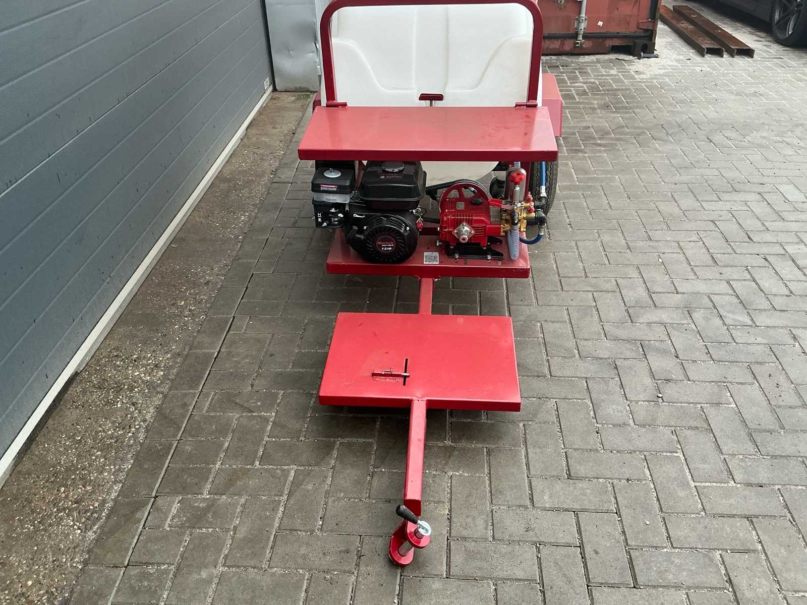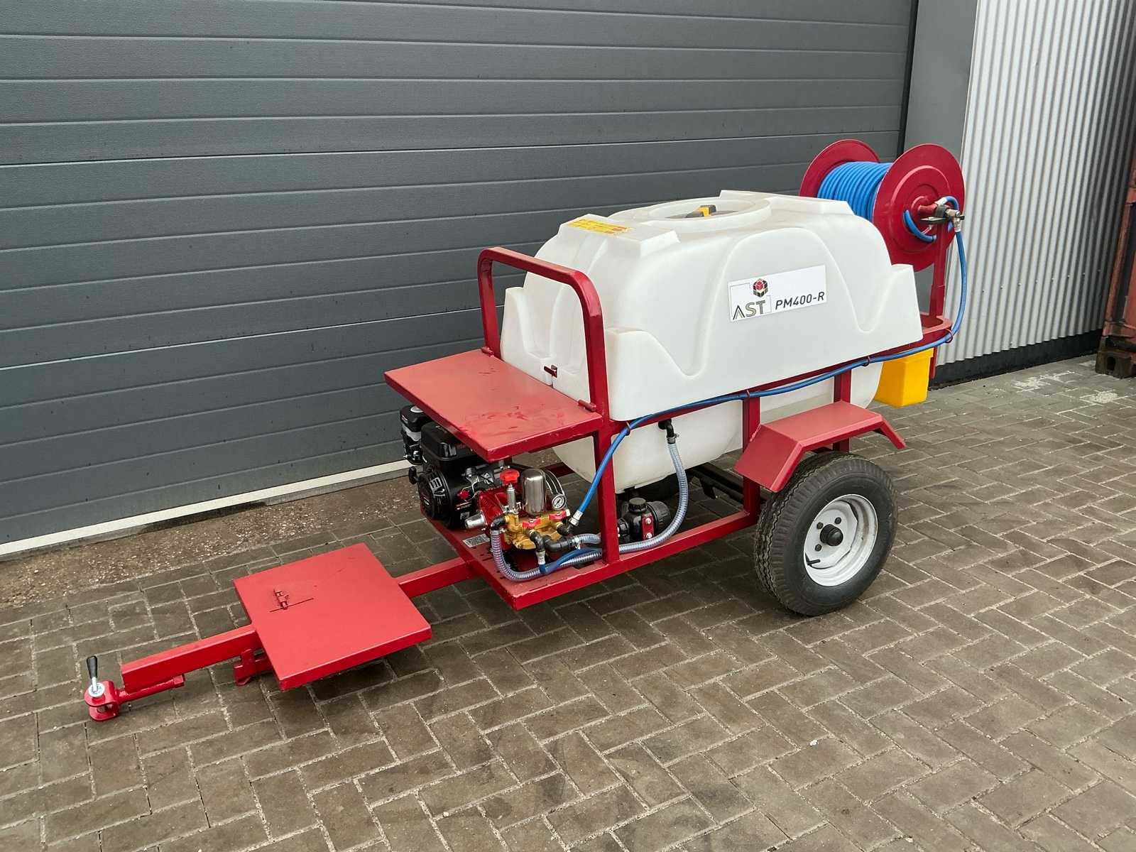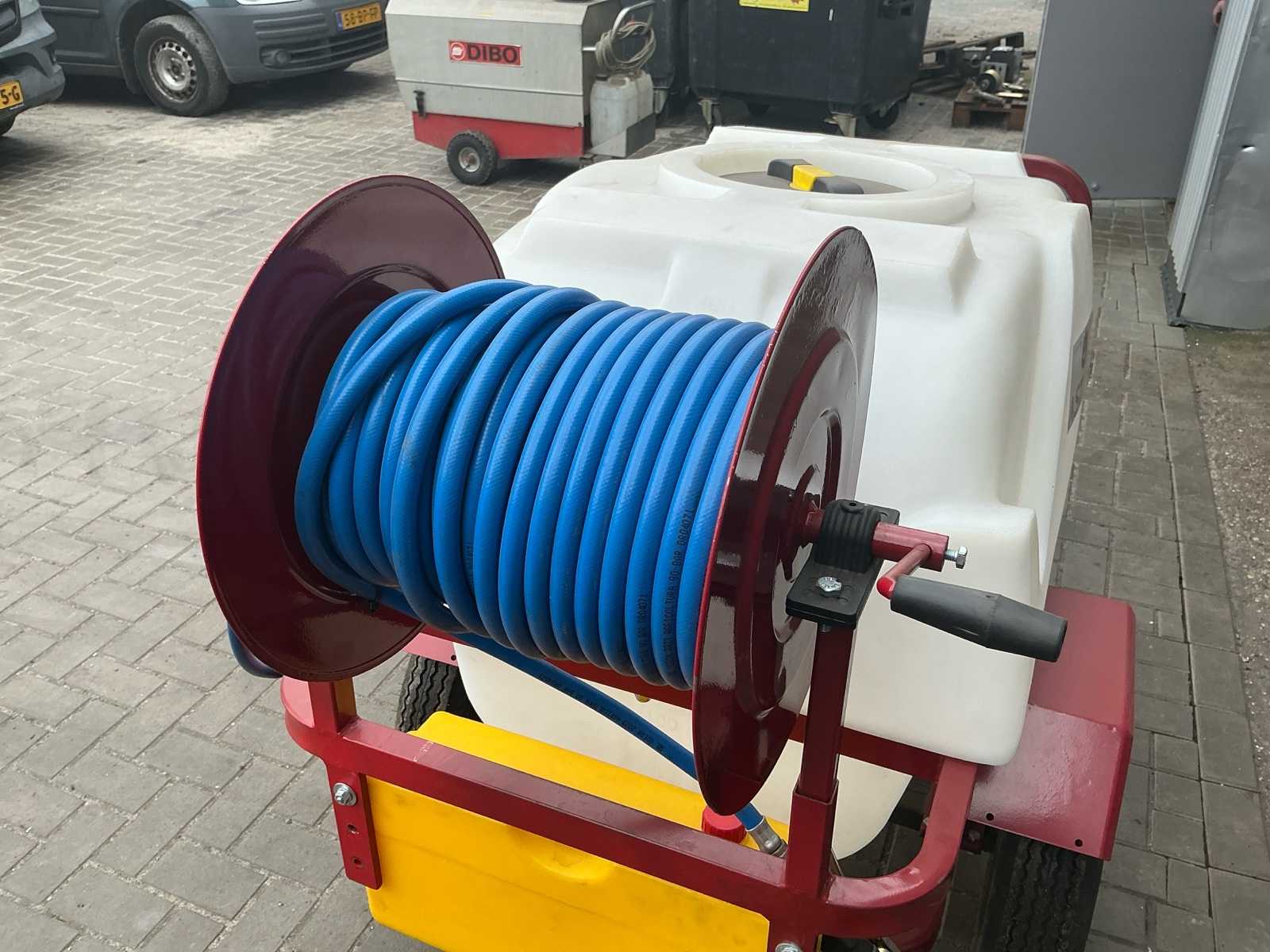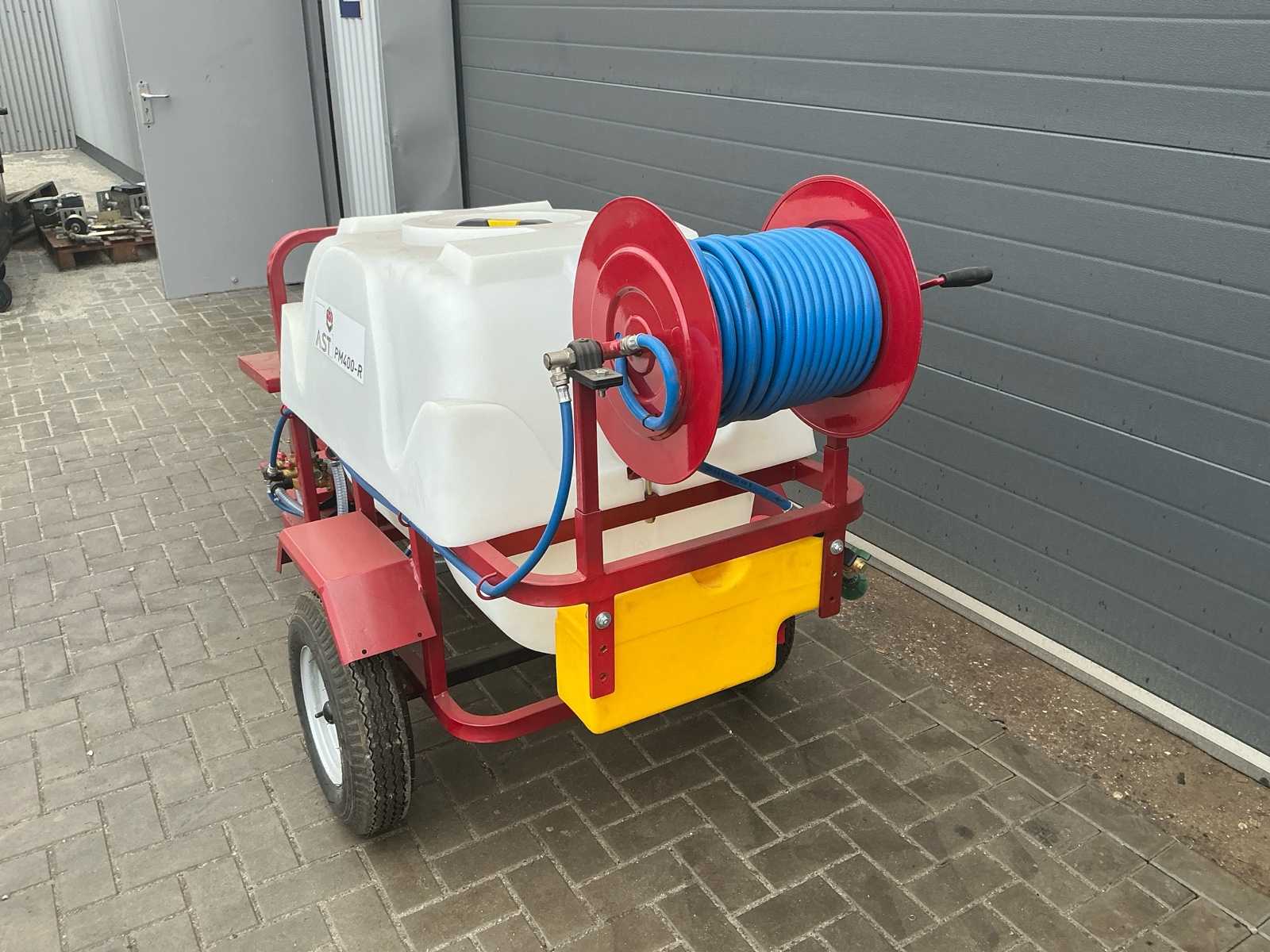 | Description | Equipped with: 7 hp petrol engine, cord start, HD pump Os-22B3N, pressure 0-40 kg/cm², suction volume 13.5-20 l/min, speed 800-1200 rpm, pneumatic tires 4.50-10, hose reel, spray hose, clean water tank with tap, tank capacity 400Ltr, drawbar with swivel coupling, pin 20mm, |