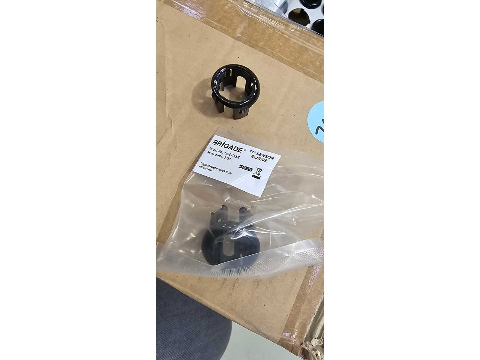 For sale is a total of approx. 3,200 PDC sensor mounting frame components from the manufacturer Brigade Electronics Group PLC. The bezels are used for mounting and aligning parking sensors (Parking Distance Control, PDC) in commercial vehicles, buses and passenger